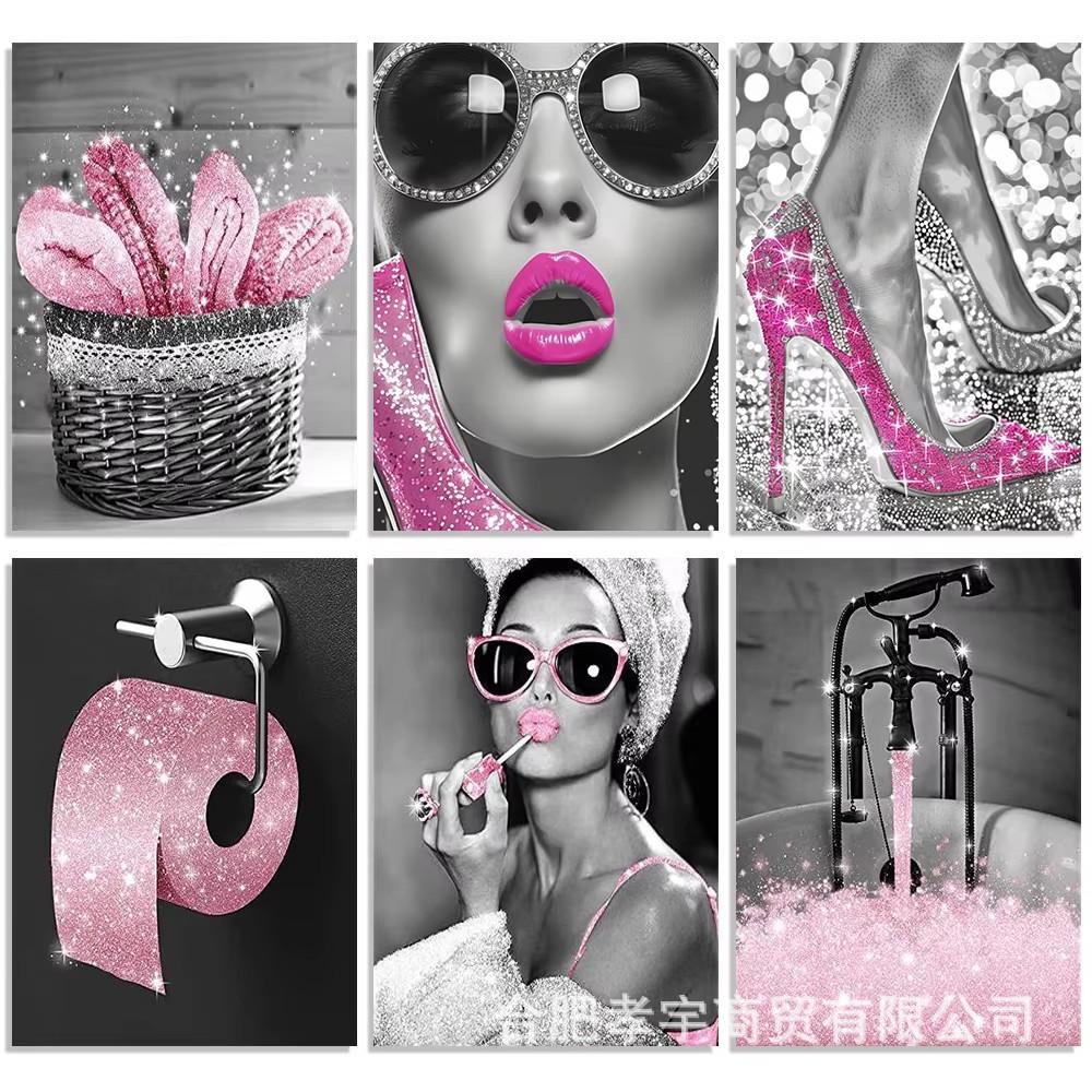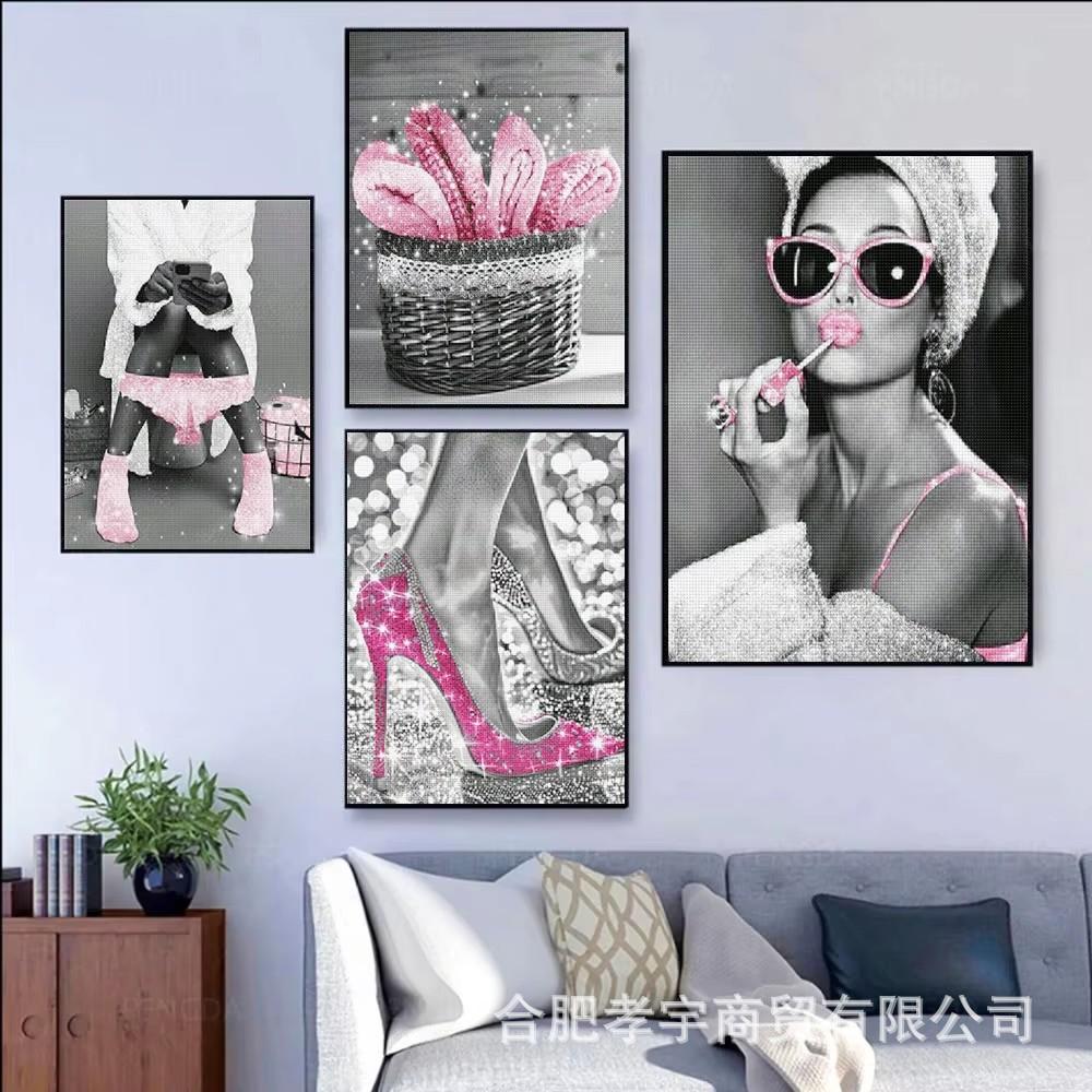 Pintura de Diamantes 5Ddiy Punto de Cruz Estilo Americano Nuevo Personalizada Niña Rosa Brillante Pintura al Óleo Llena de Diamantes Regalo Hecho a Mano