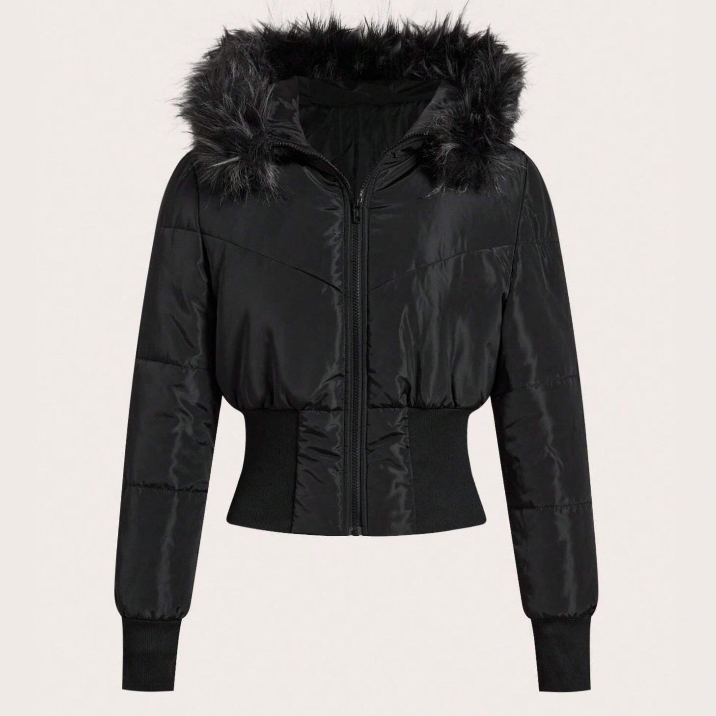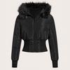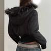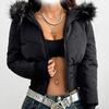 2025 Europeo y Americano transfronterizo otoño e invierno nuevo abrigo de algodón con cuello de piel corto ajustado sudadera color sólido adelgazante chaqueta con cremallera al por mayor