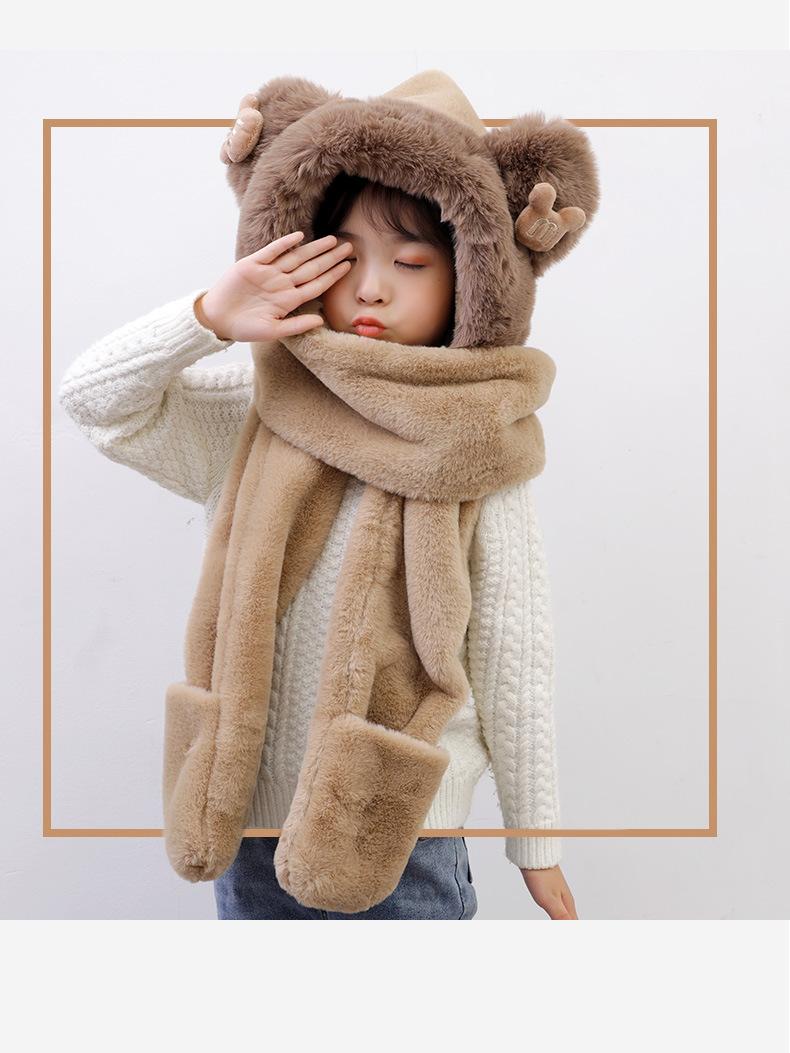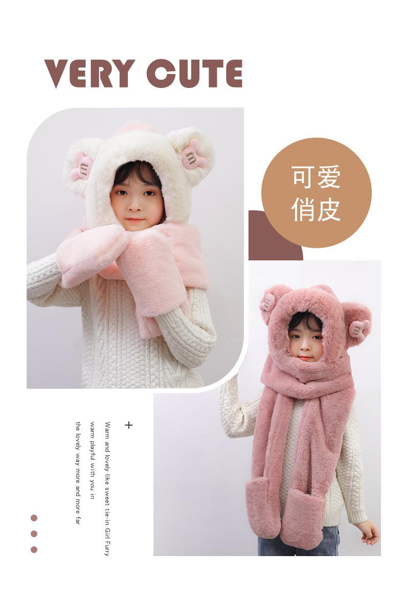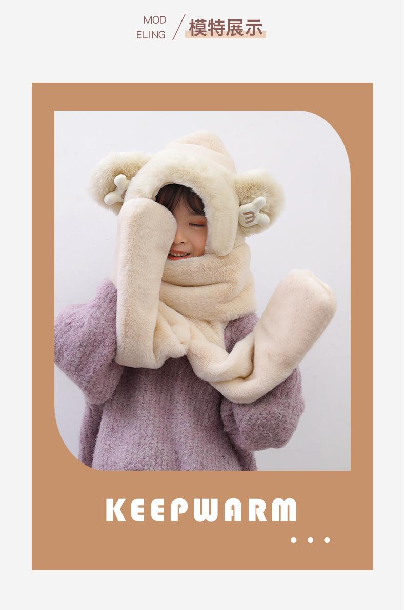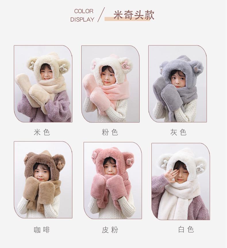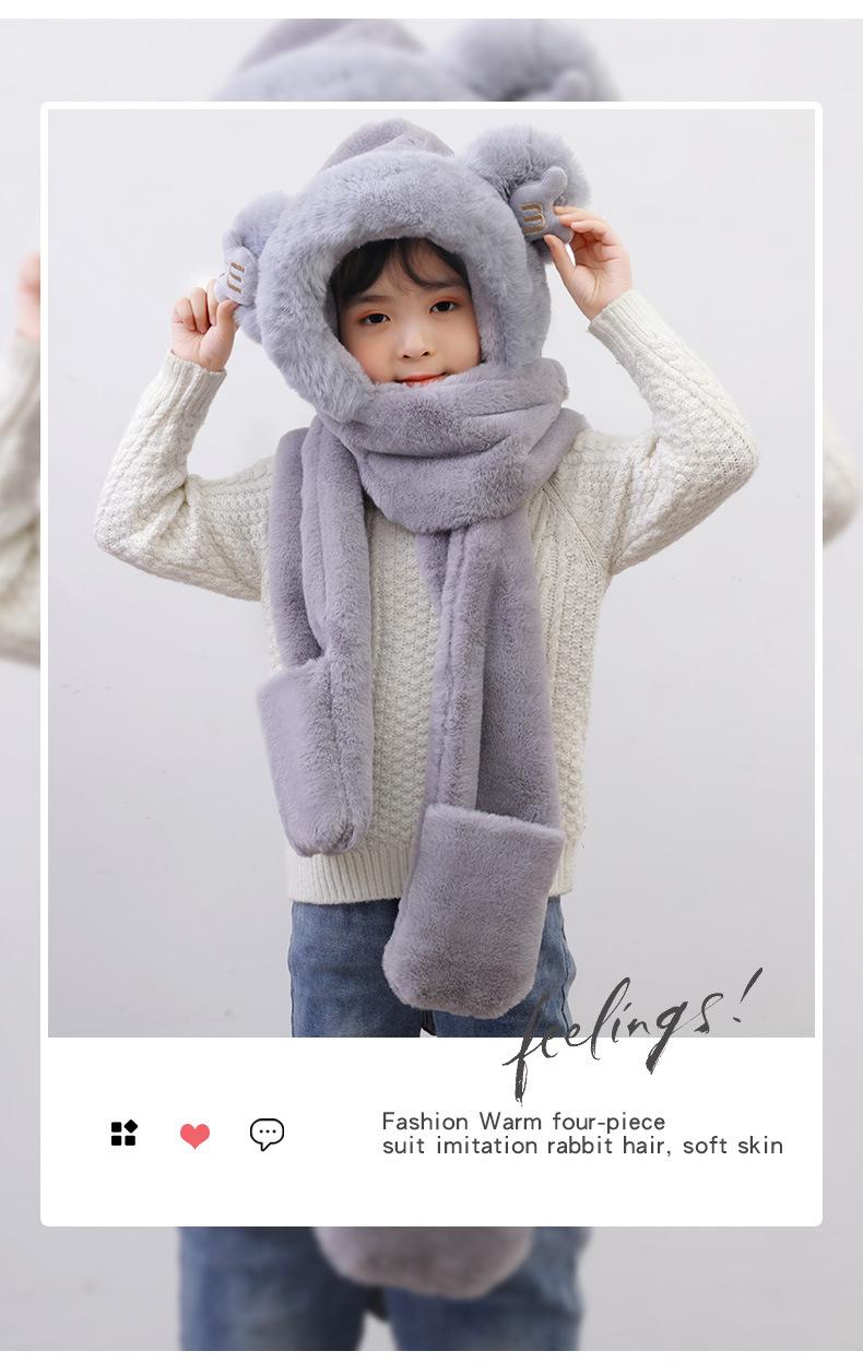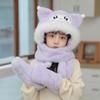Set de Tres Piezas de Bufanda y Gorro de Dibujos Animados para Niños, Bufanda Cálida con Capucha, Guantes Lindos para Niños, Bufanda de Una Pieza