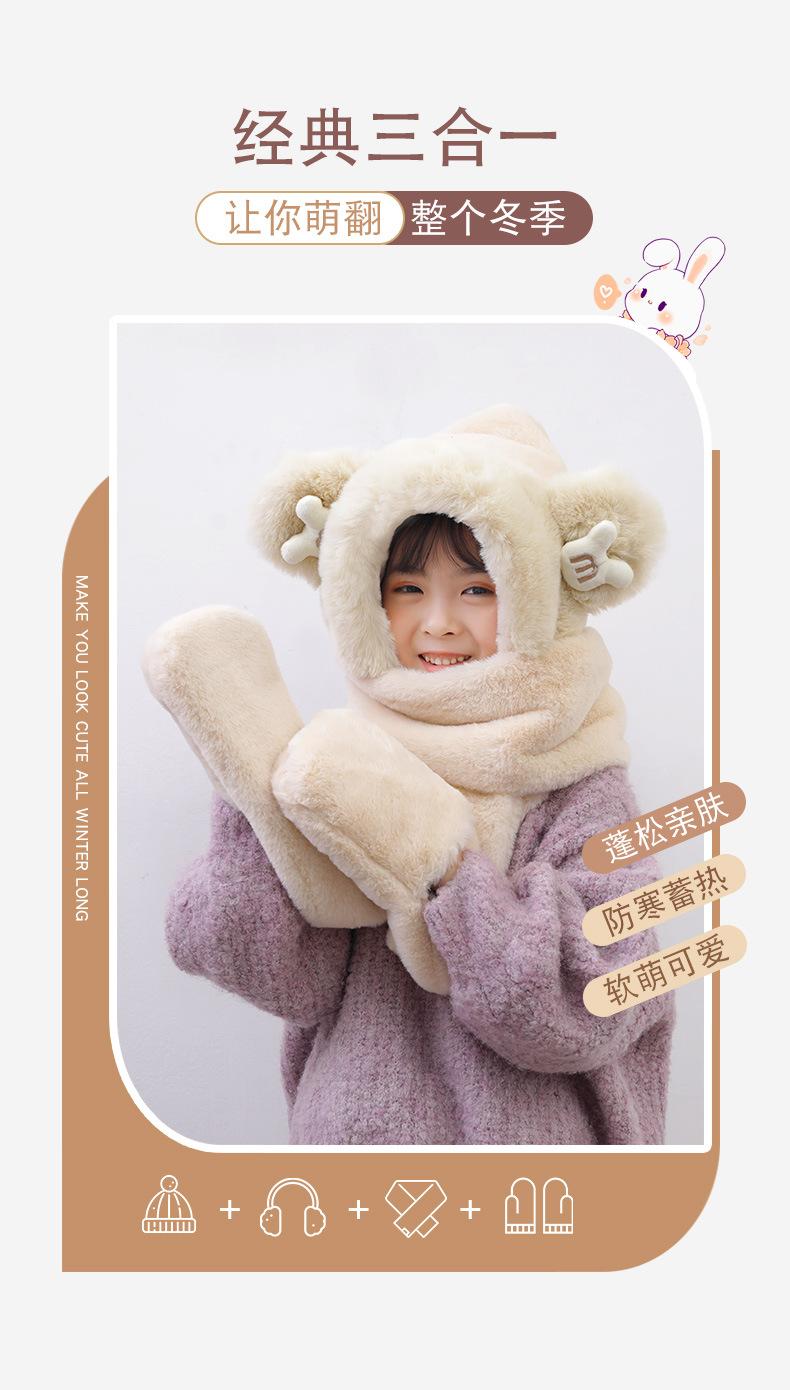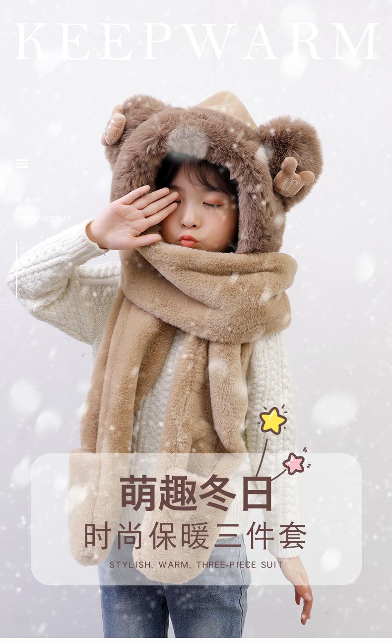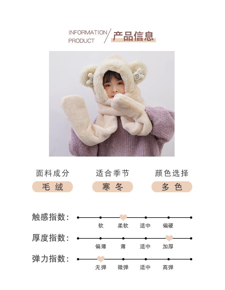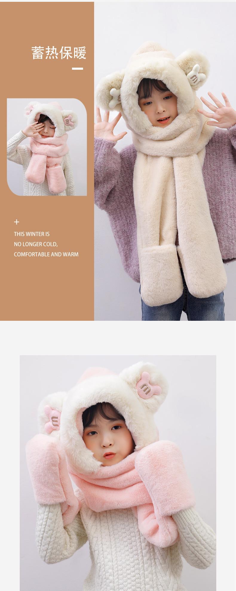 Set de Tres Piezas de Bufanda y Gorro de Dibujos Animados para Niños, Bufanda Cálida con Capucha, Guantes Lindos para Niños, Bufanda de Una Pieza