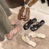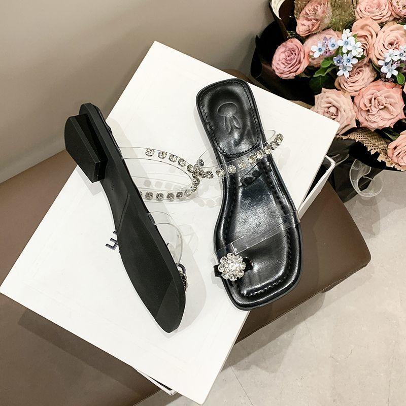 Nicho sandalias de dedo con pedrería de tacón bajo para mujer verano 2025 verano nueva moda estilo vacacional de playa sandalias mujer