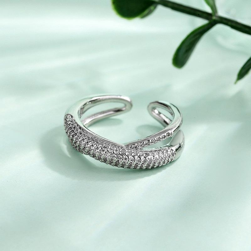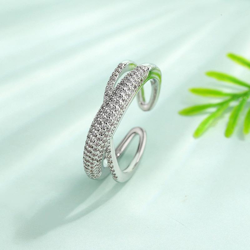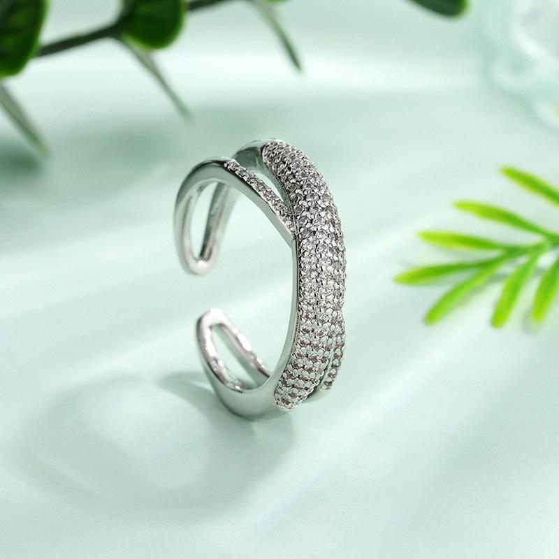 Anillo Cruzado Europeo y Americano con Diamantes Completos para Mujer, Diseño Nicho de Lujo Ligero, Anillo de Zircón, Anillo Abierto Moderno y Versátil