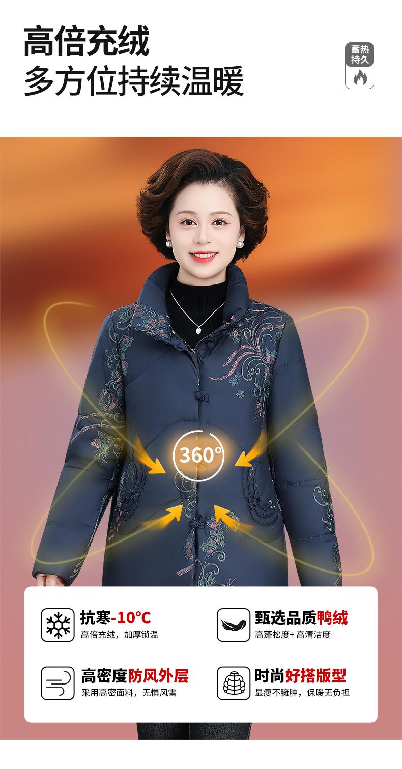Chamarra de plumón de invierno para madre estilo occidental 2024 nueva moda para señoras de mediana edad y mayores abrigo de otoño e invierno largo talla grande