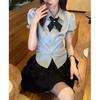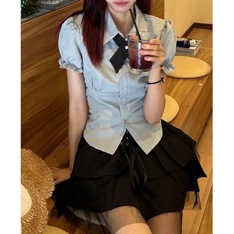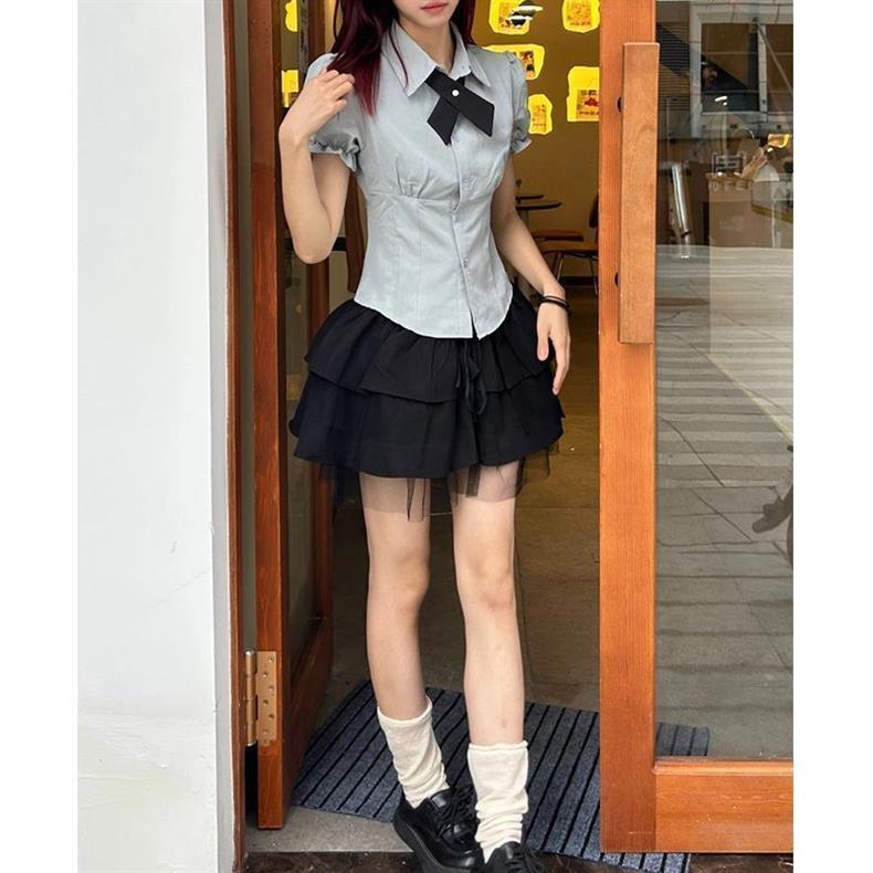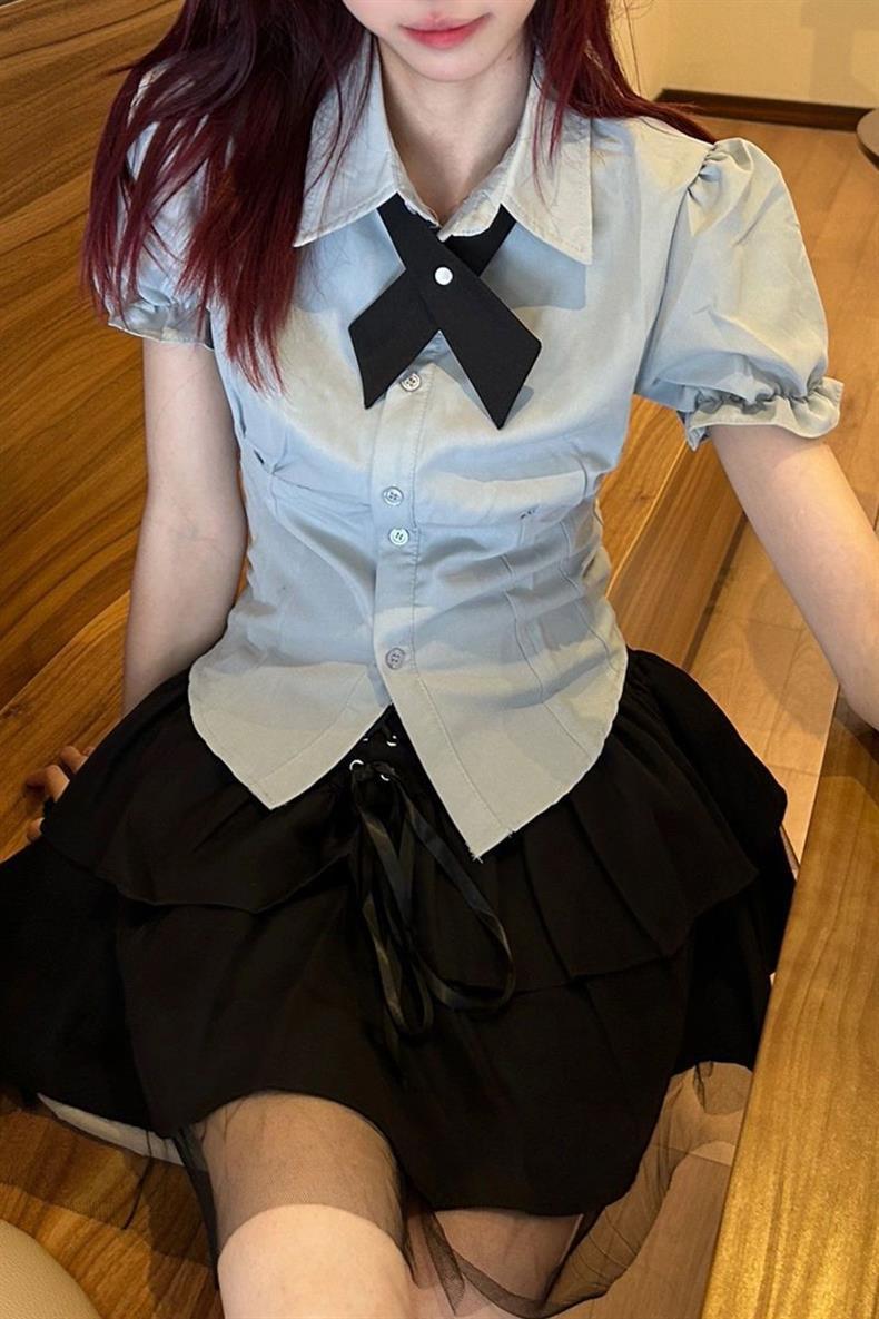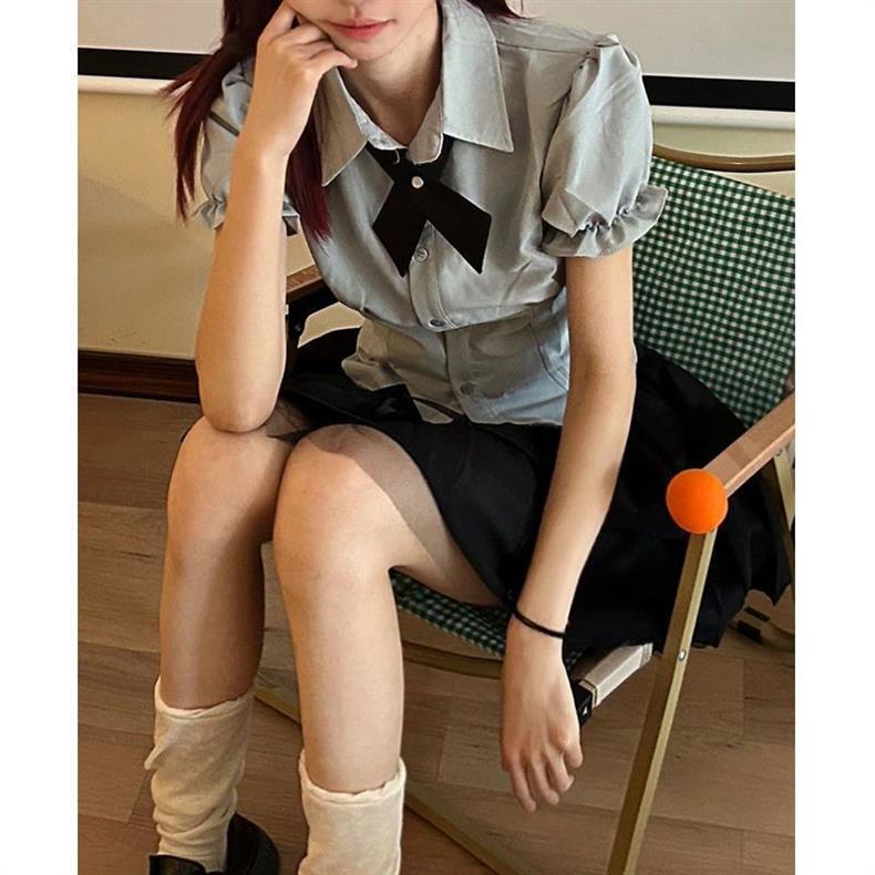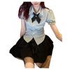 Moda Nuevo Uniforme JK para Mujer Cintura Corta Elegante Chic Ajustado Adelgazante Camisa Traje de Dos Piezas Vestido de Verano para Mujer