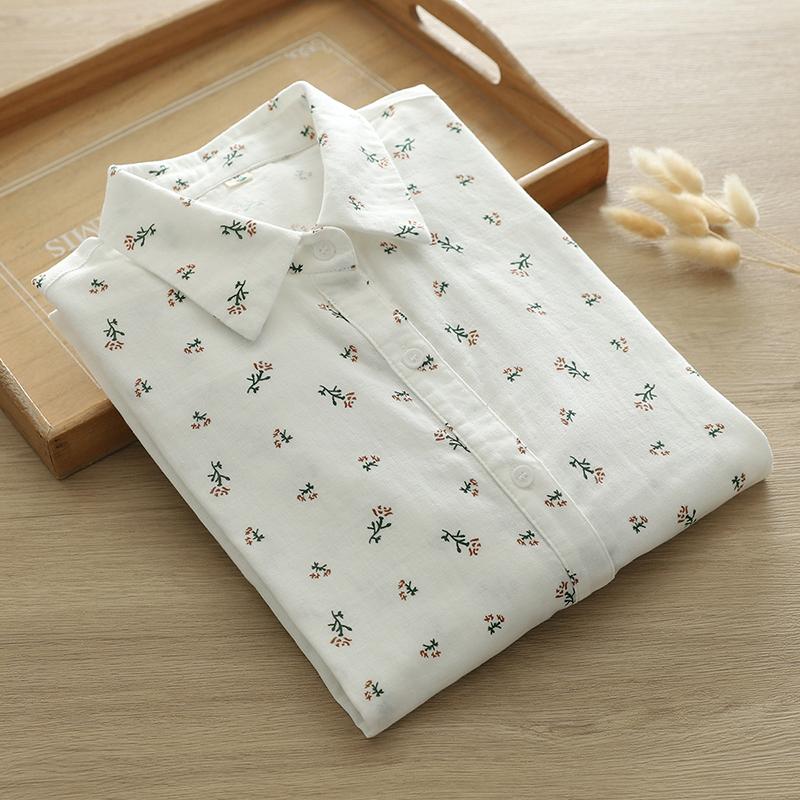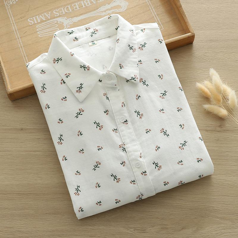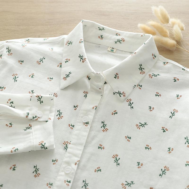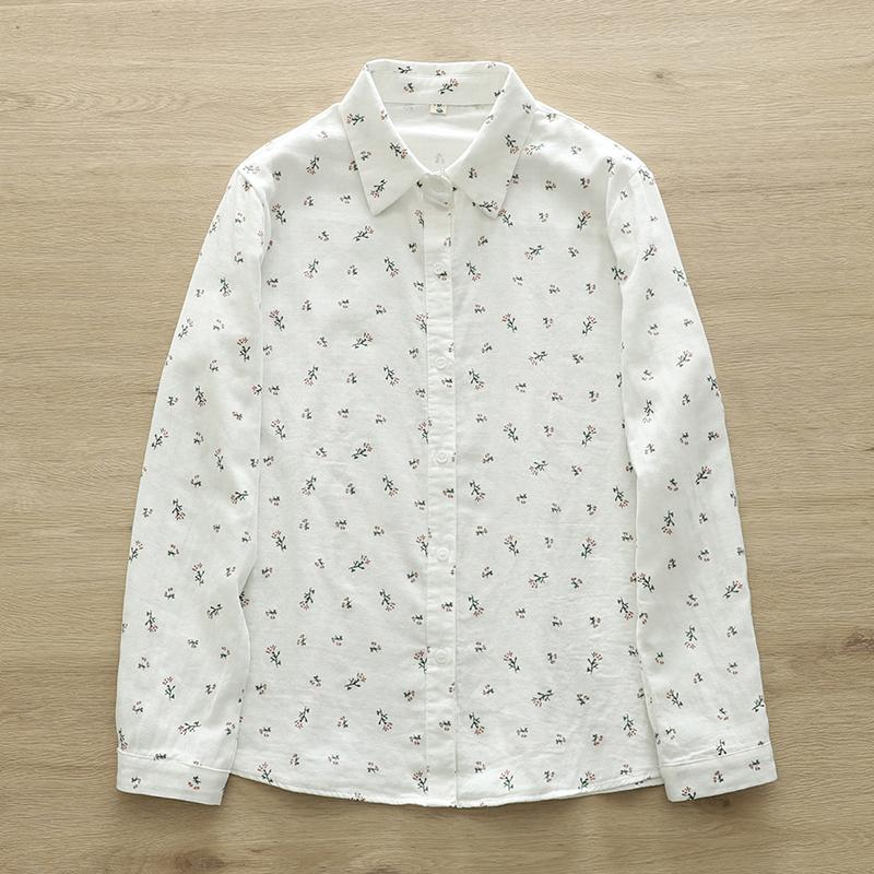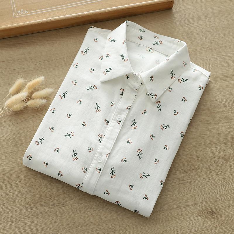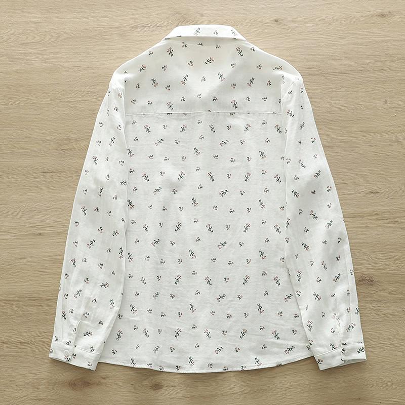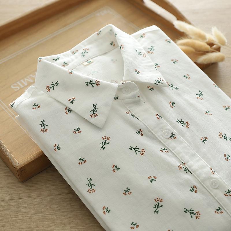 Camisa de manga larga de hilo de doble capa floral de estilo artístico para mujer, top fresco elegante para primavera que combina con todo