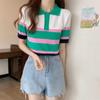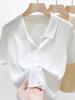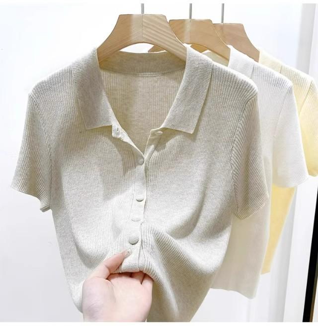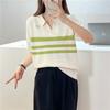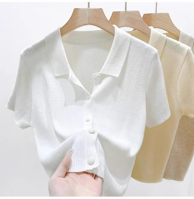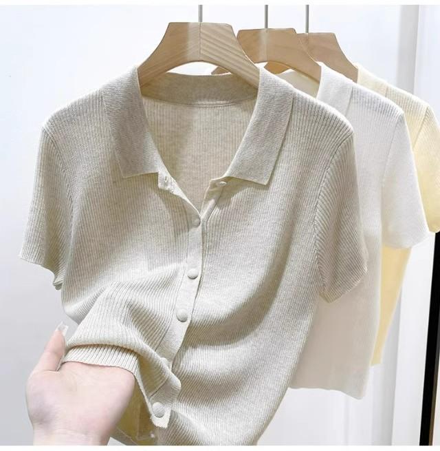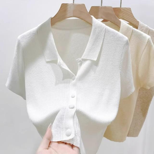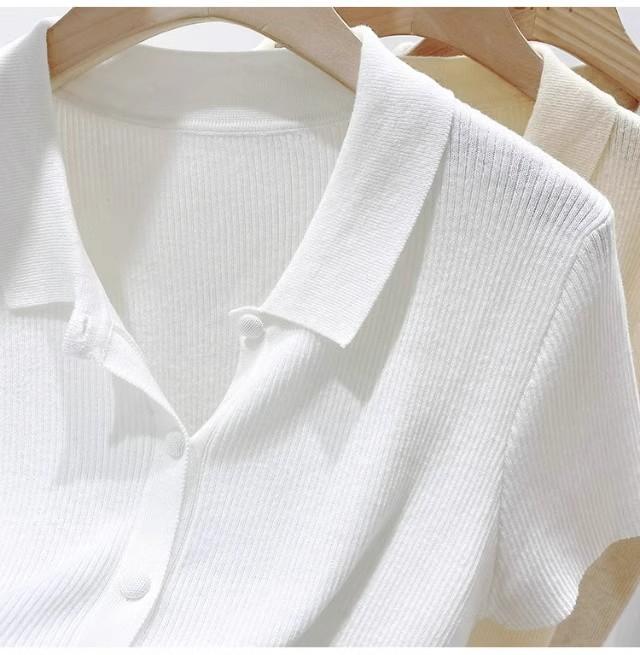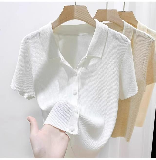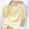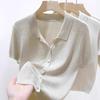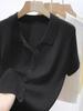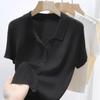 Verano 2025 Nuevo Cárdigan de Punto Holgado con Cuello Polo para Mujer Diseño de Solapa Camiseta de Manga Corta Top Delgado