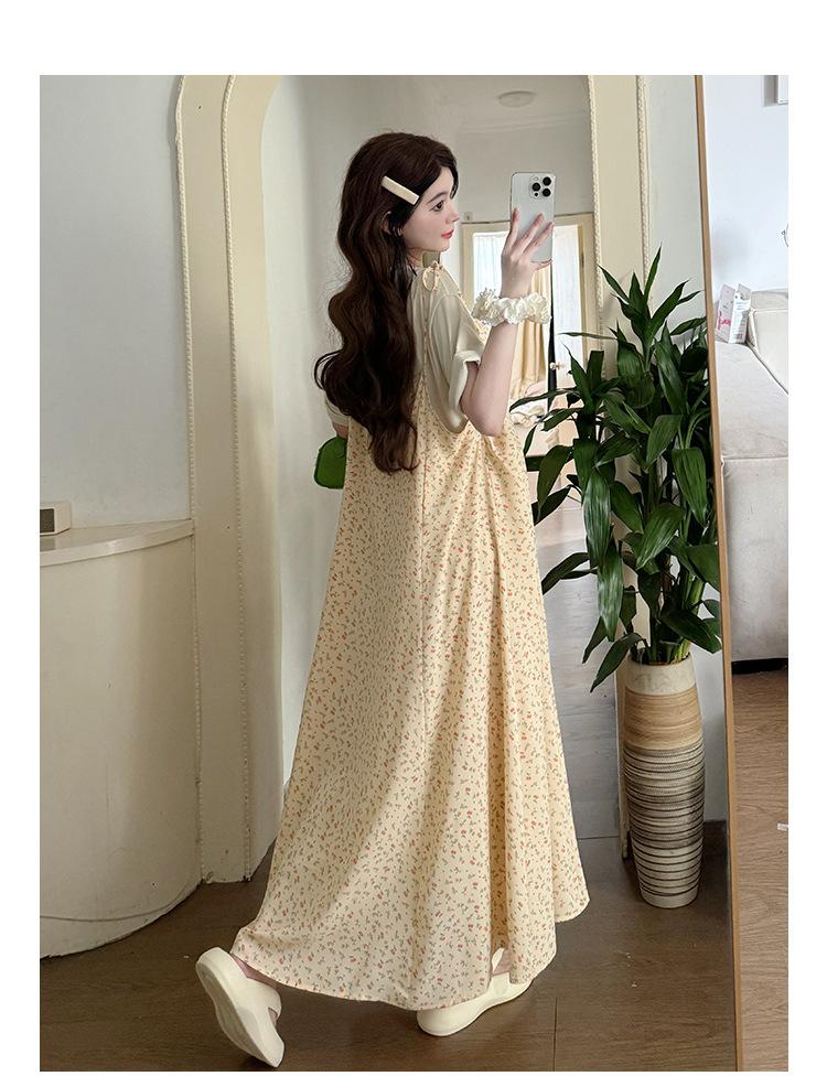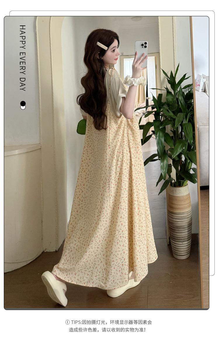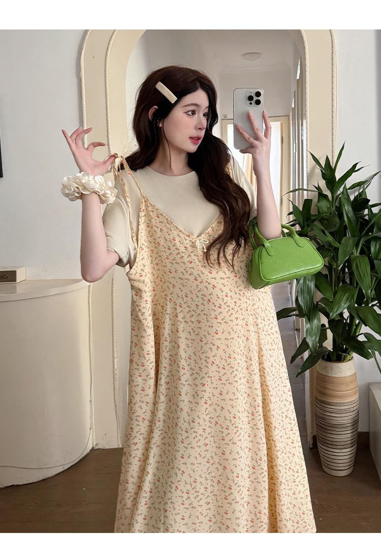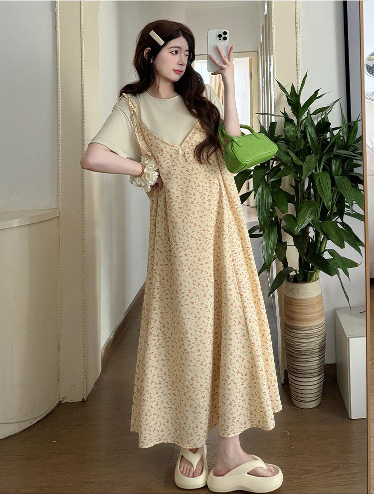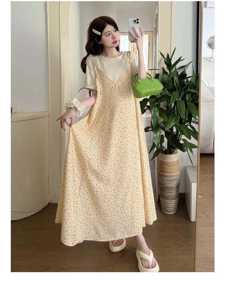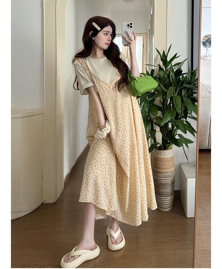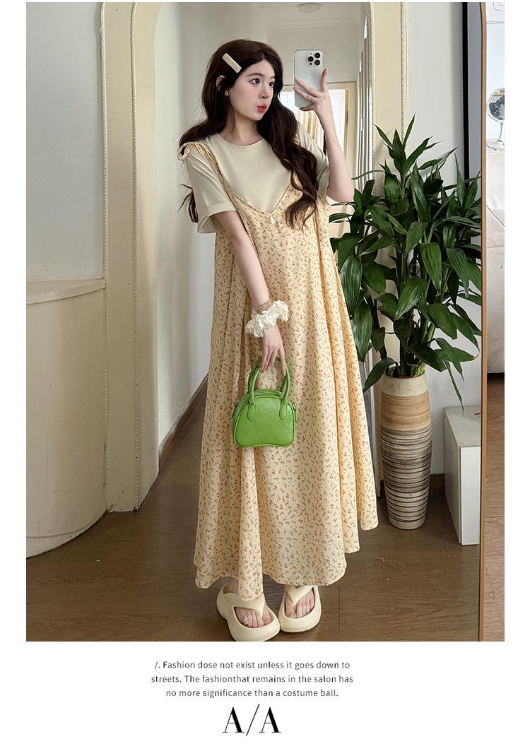 Ropa de Maternidad 2025 Verano Nuevo Dulce y a la Moda Falda de Tirantes Floral + Camiseta Holgada Vestido de Maternidad de Dos Piezas
