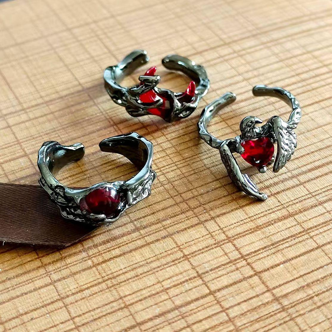 Moda Cuervo Oscuro Estilo Retro Frío ins Diseño Nicho Lujo Ligero de Alta Gama No se Desvanece Anillo Abierto Mujer