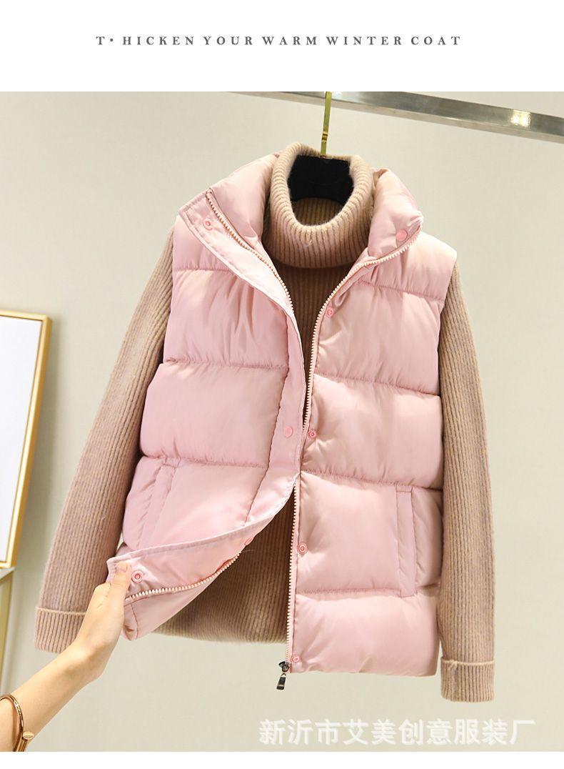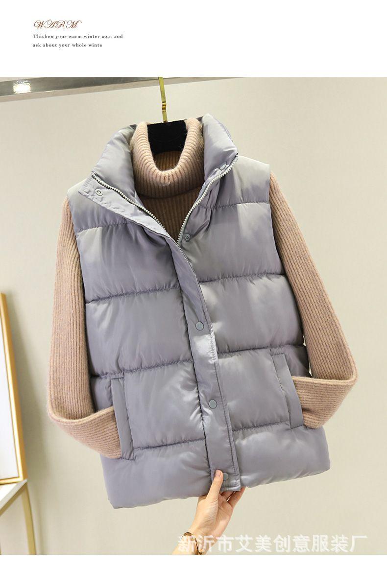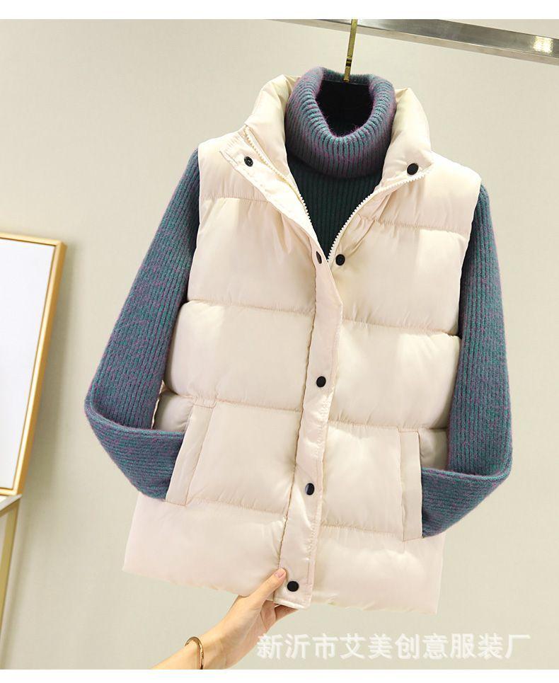 Chaleco de Algodón Plumón para Estudiantes, Chaleco Acolchado Corto Holgado, Chaqueta Casual Versátil con Cuello Alto, Moda en Stock