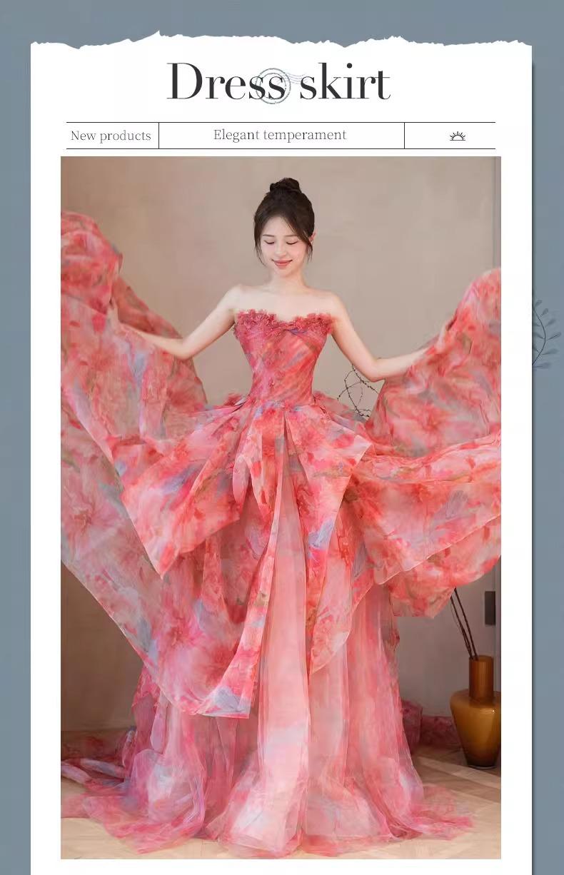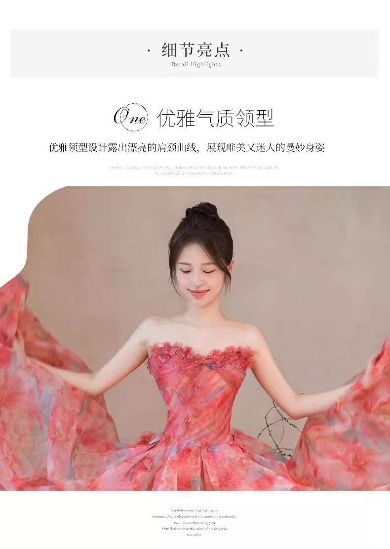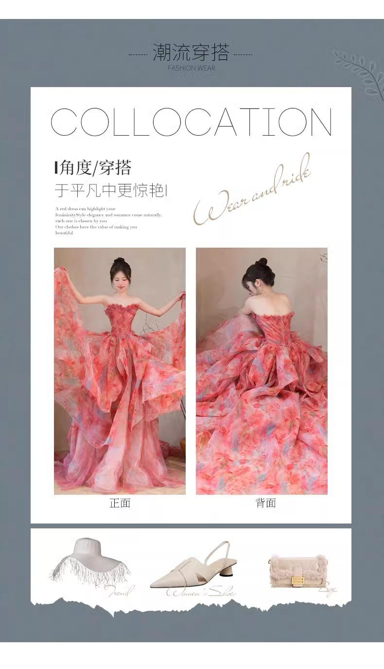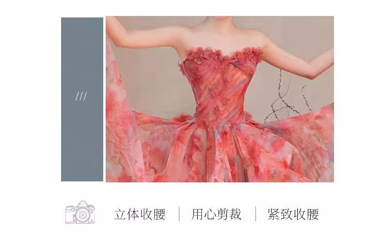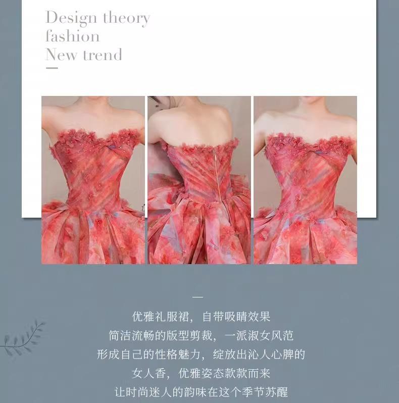 Vestido de Noche Strapless Francés Lujo Ligero Vestido de Novia Ropa de Boda Vestido de Brindis de Alta Gama Banquete de Cumpleaños Vestido de Princesa Rosa