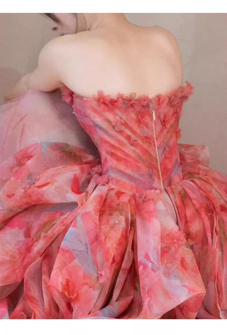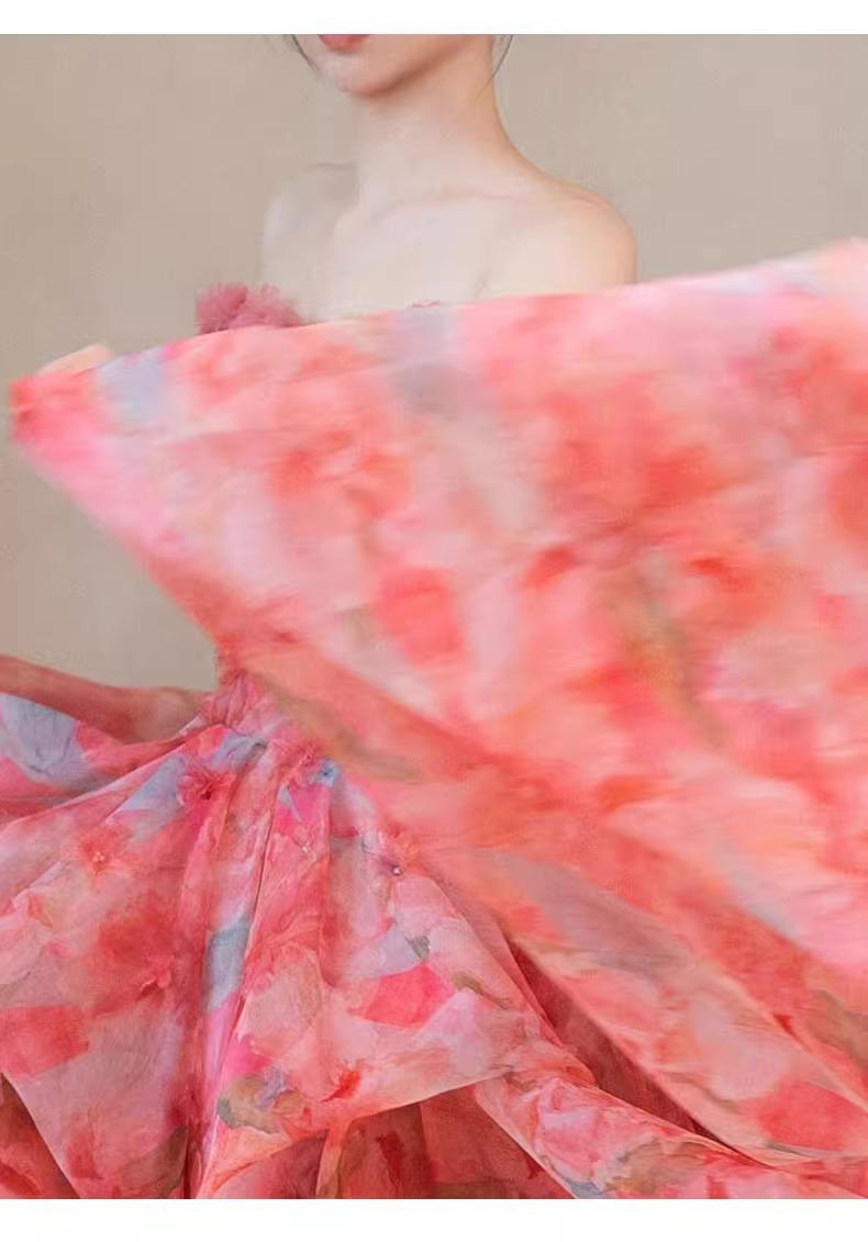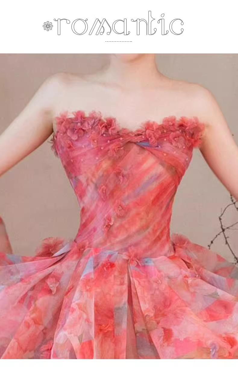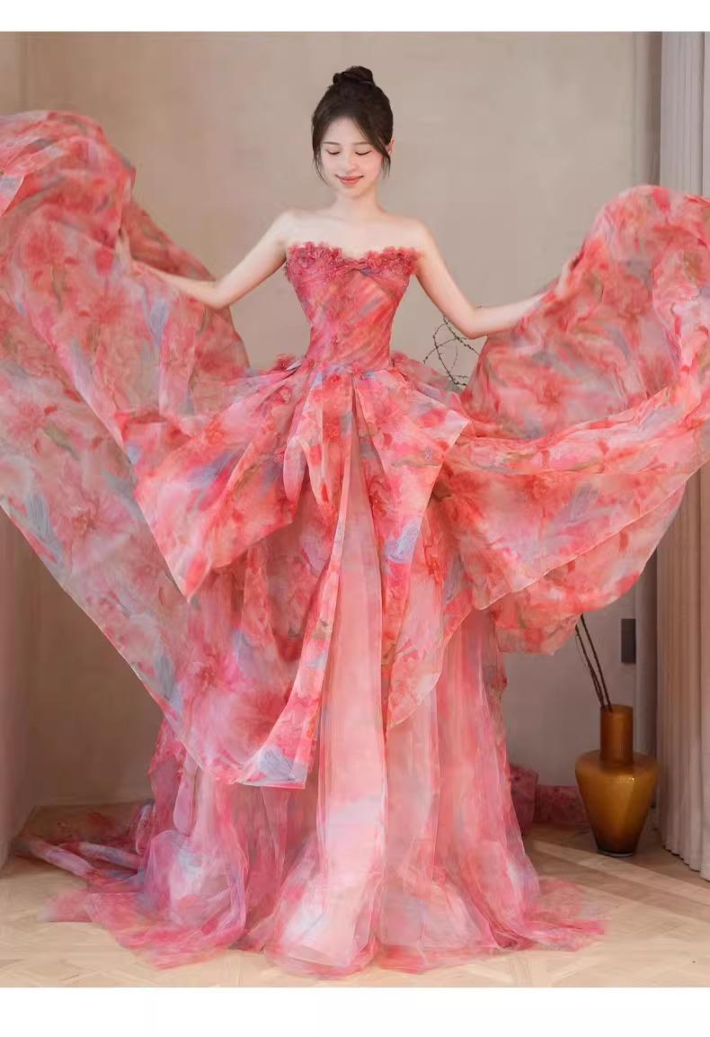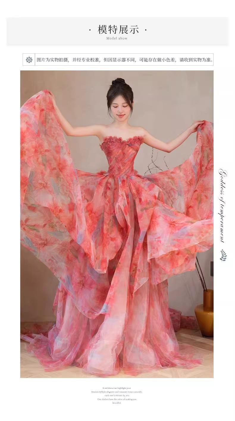 Vestido de Noche Strapless Francés Lujo Ligero Vestido de Novia Ropa de Boda Vestido de Brindis de Alta Gama Banquete de Cumpleaños Vestido de Princesa Rosa