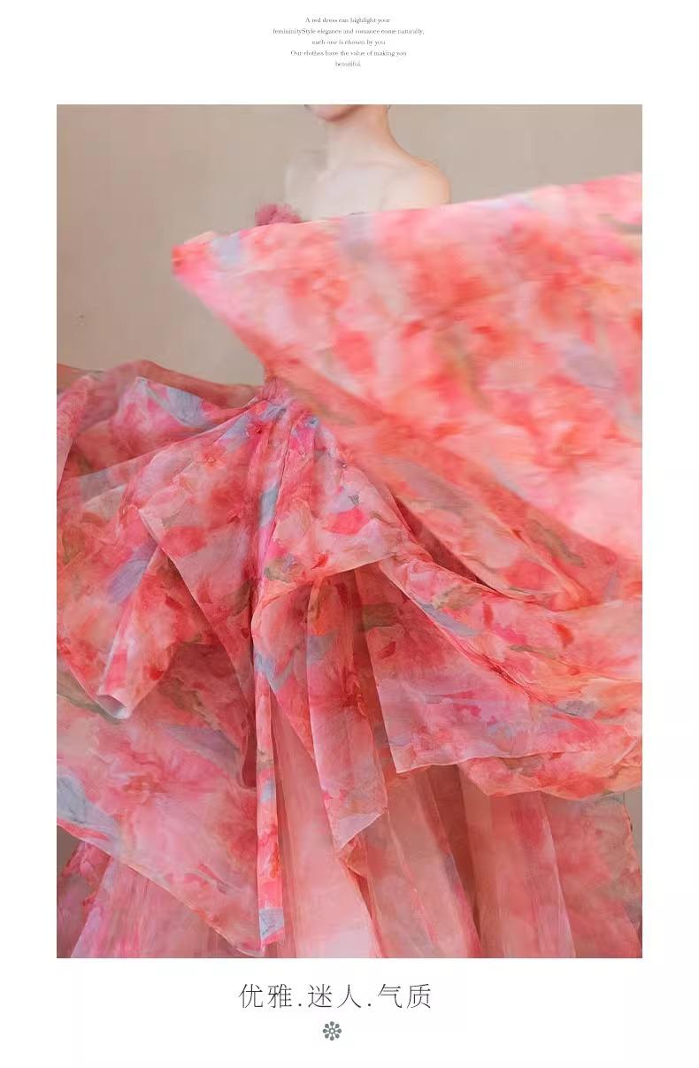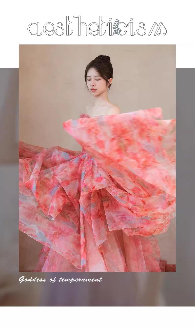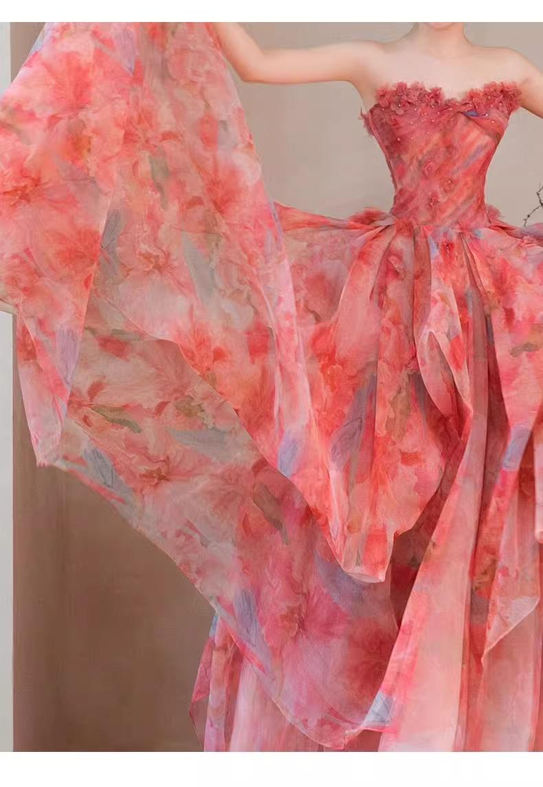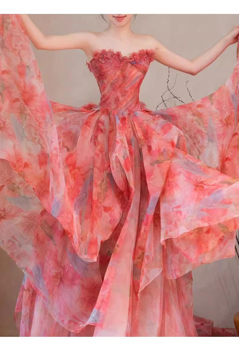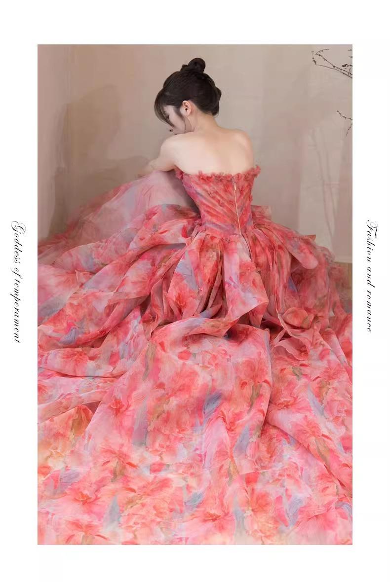Vestido de Noche Strapless Francés Lujo Ligero Vestido de Novia Ropa de Boda Vestido de Brindis de Alta Gama Banquete de Cumpleaños Vestido de Princesa Rosa