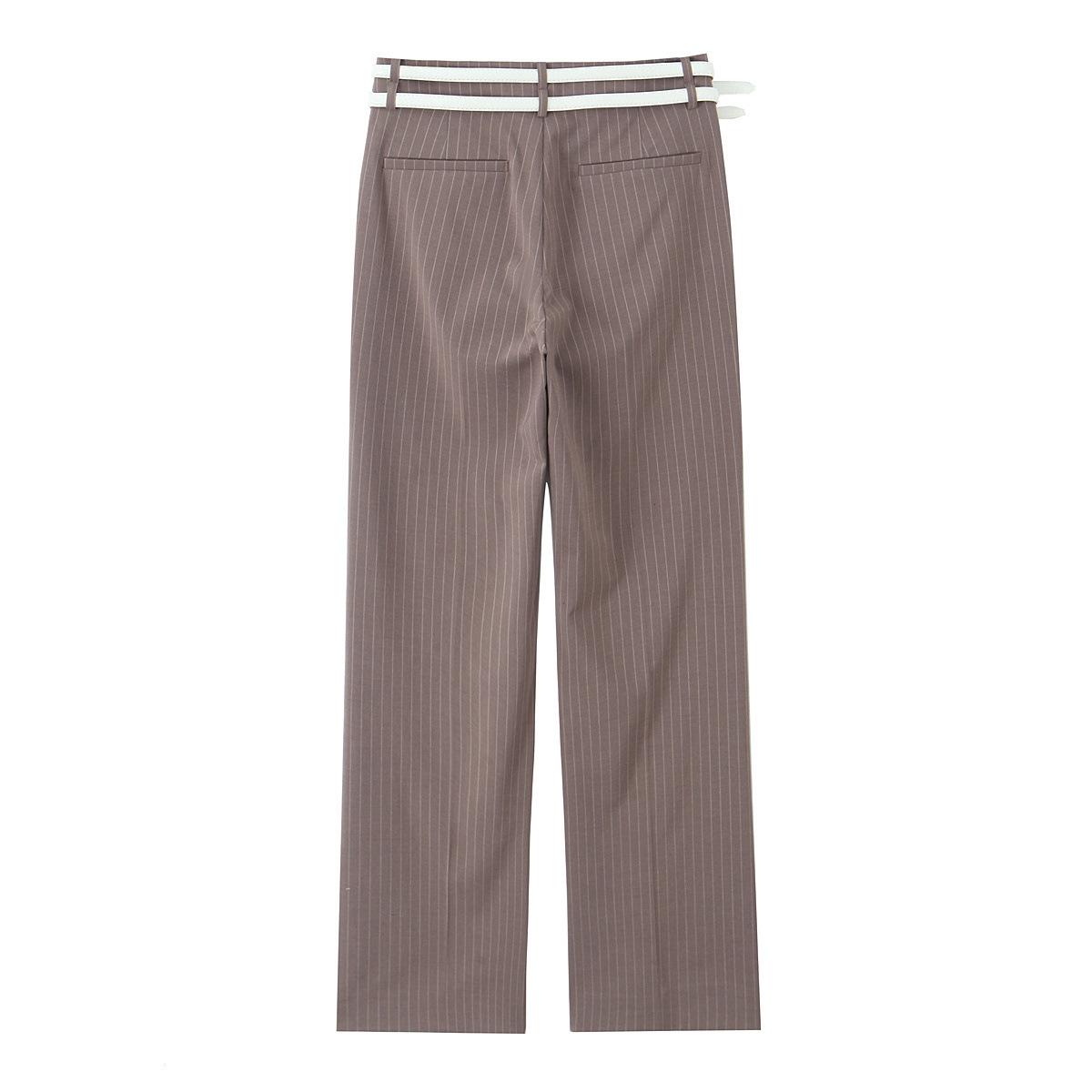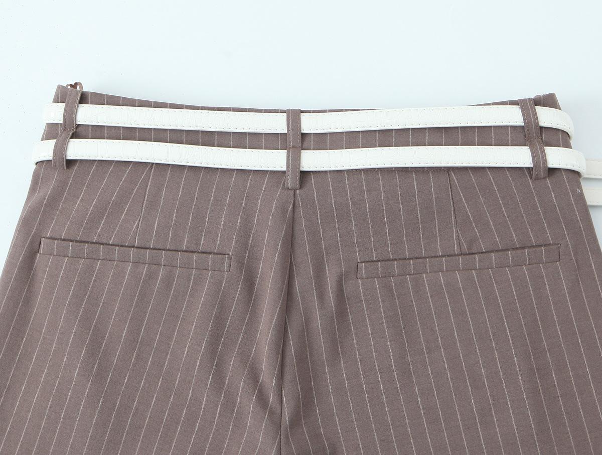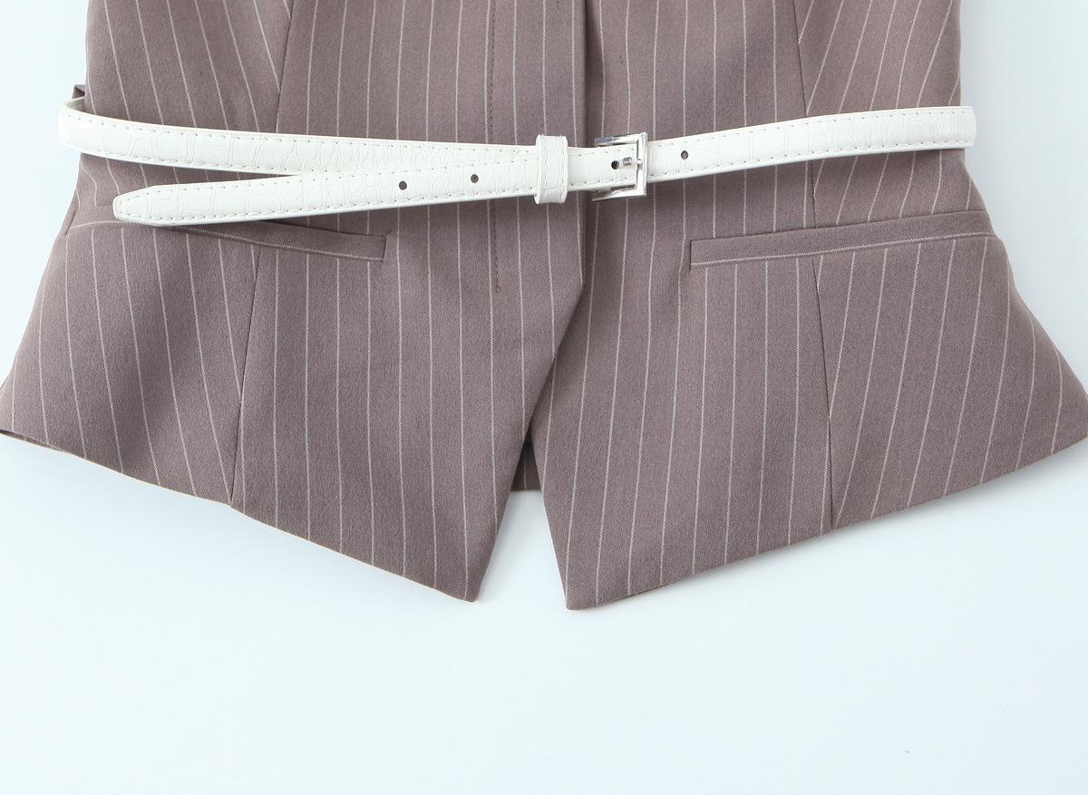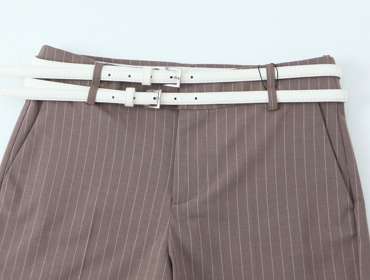 Traje Chaleco Top Rayado Pantalones Doble Cinturón Moda Transfronteriza para Mujer 2025 Nuevo Europeo y Americano con Cinturón