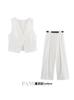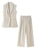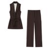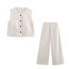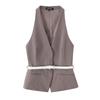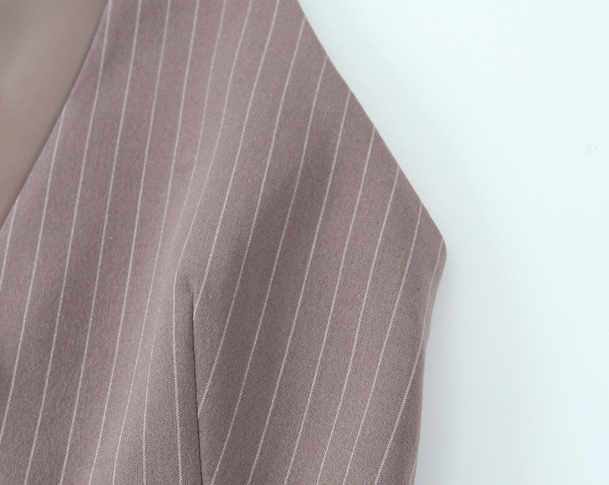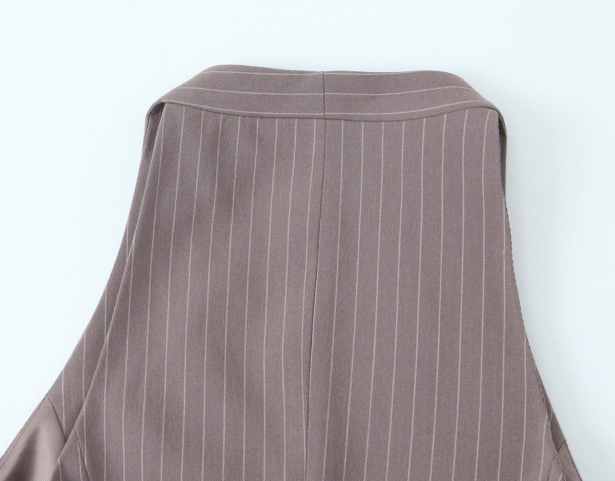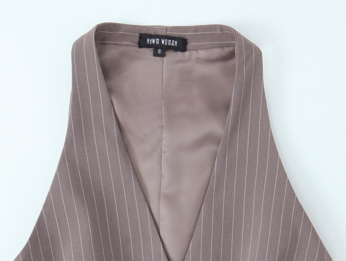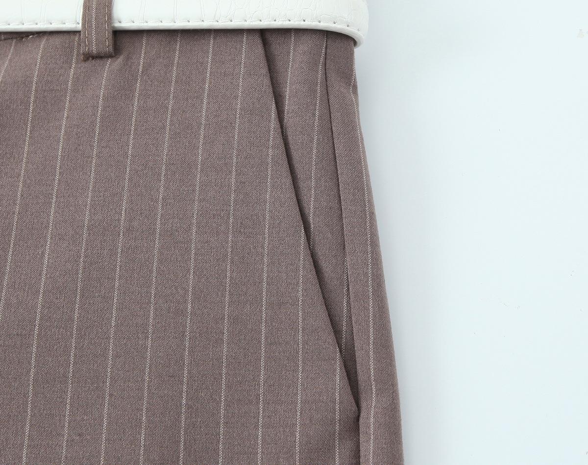 Traje Chaleco Top Rayado Pantalones Doble Cinturón Moda Transfronteriza para Mujer 2025 Nuevo Europeo y Americano con Cinturón