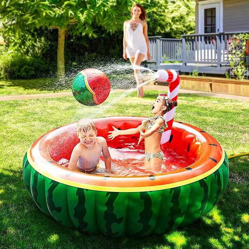Almohadilla de Agua Inflable Personalizada Nueva PVC Infantil Redonda Sandía Piscina Deportes al Aire Libre Juguete para Jugar con Agua Plegable