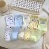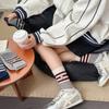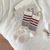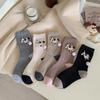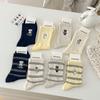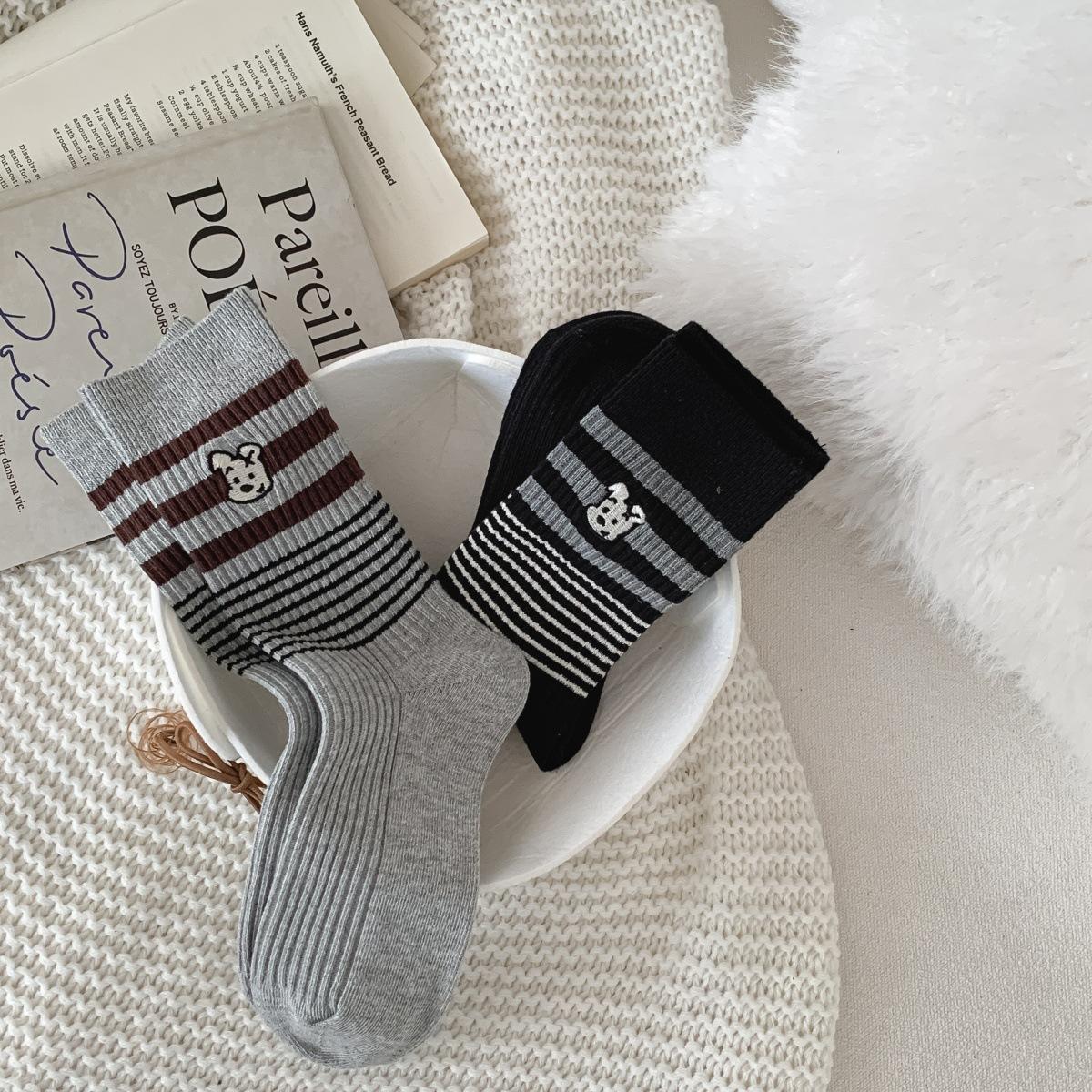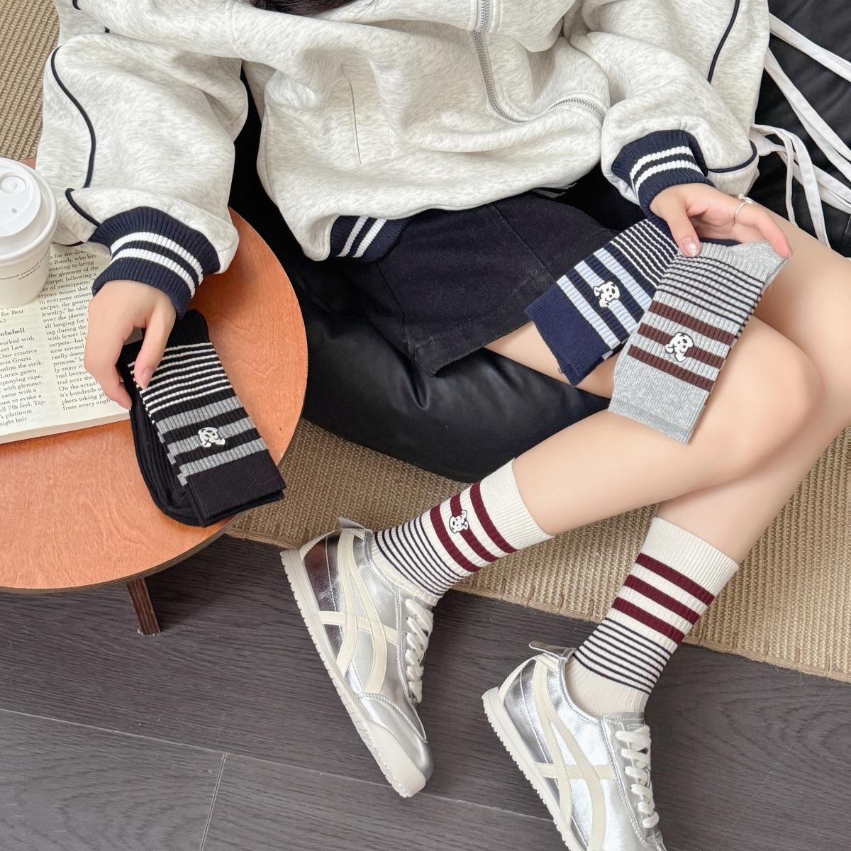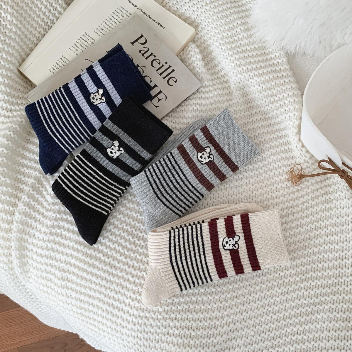 Calcetines de Algodón de Media Caña con Bloques de Color a Rayas y Bordado de Perro de Doble Aguja Estilo Xiaohongshu Mismo Estilo Calcetines Estilo Coreano de Dibujos Animados para Mujer Estilo Universitario