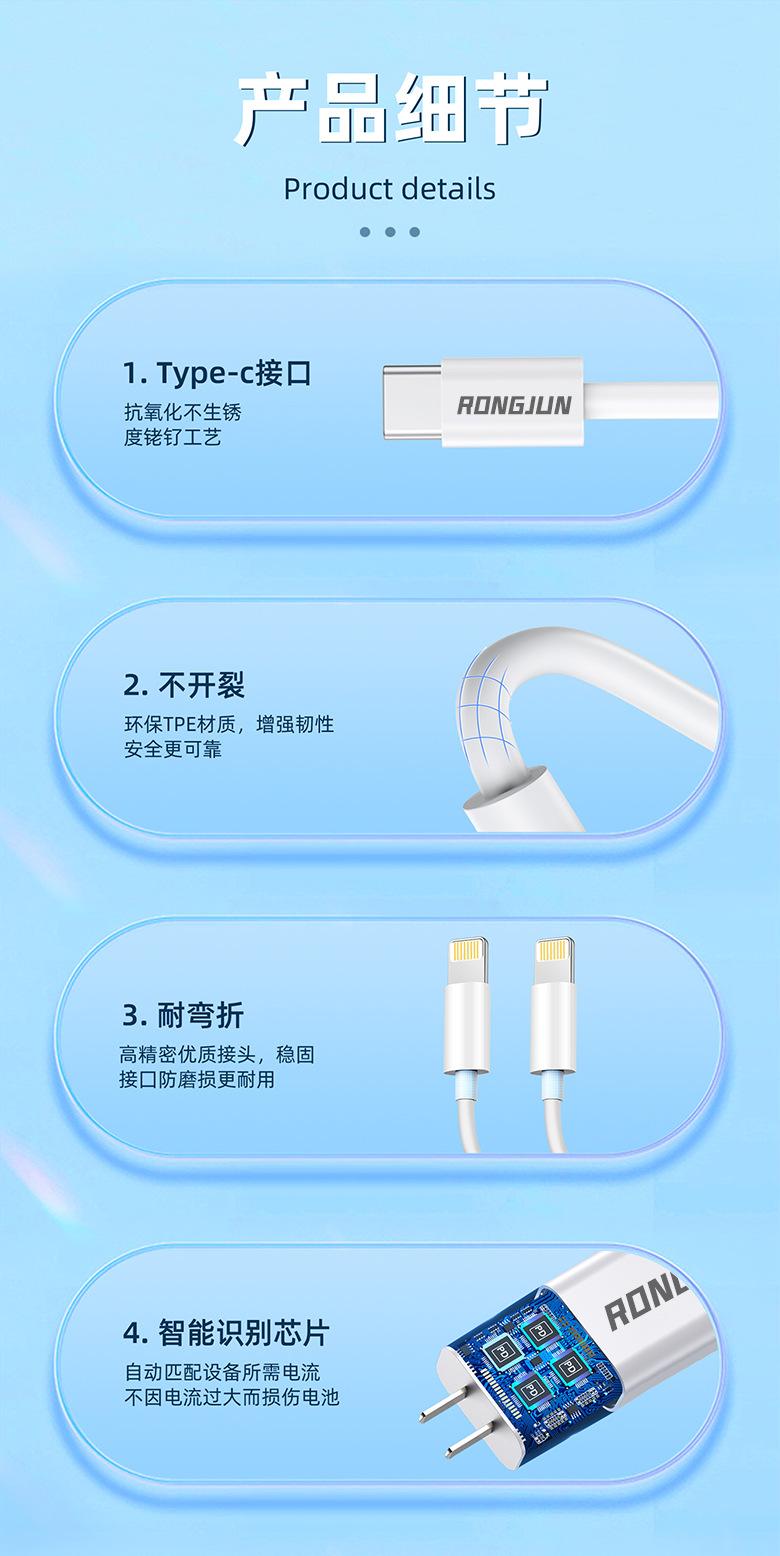 Cable de datos de carga rápida PD en stock para teléfono Apple Android cable de datos typec carga rápida 3A cable de carga alargado