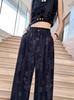 Pantalones de Pierna Ancha de Seda de Hielo Jacquard de Estilo Chino Nuevo para Mujer, Verano Delgados Sueltos Adelgazantes Caída Rectos Casuales Pantalones de Traje