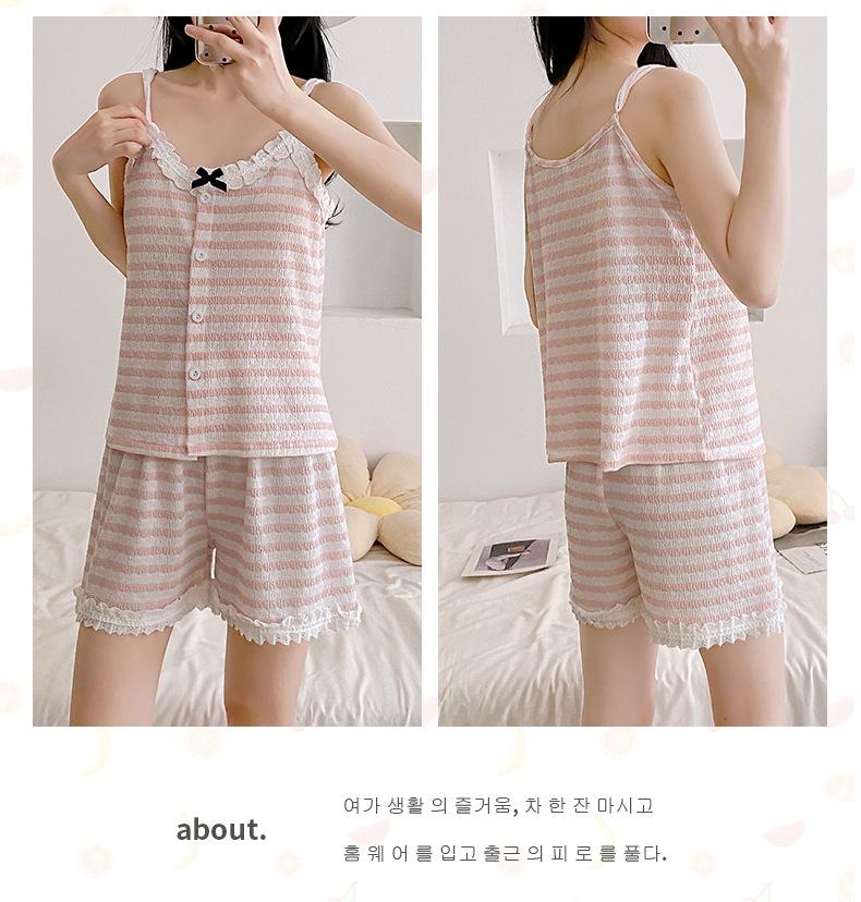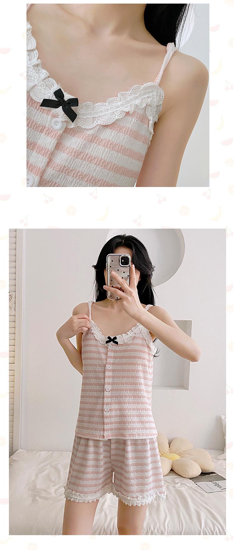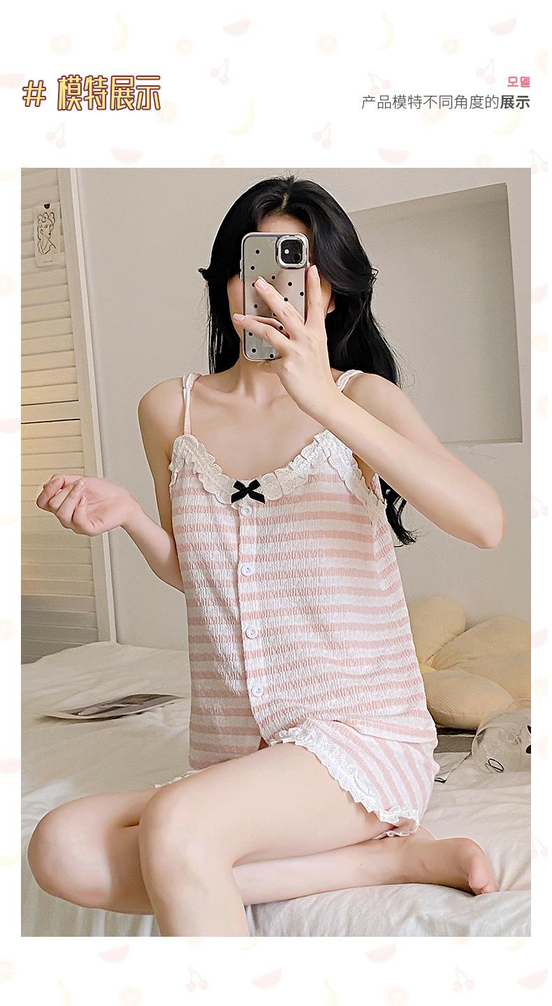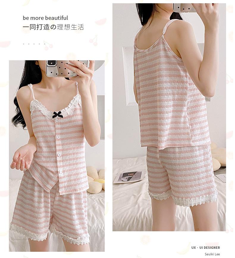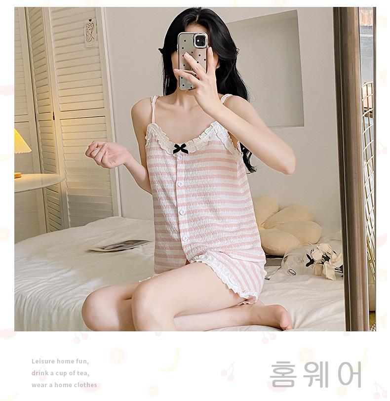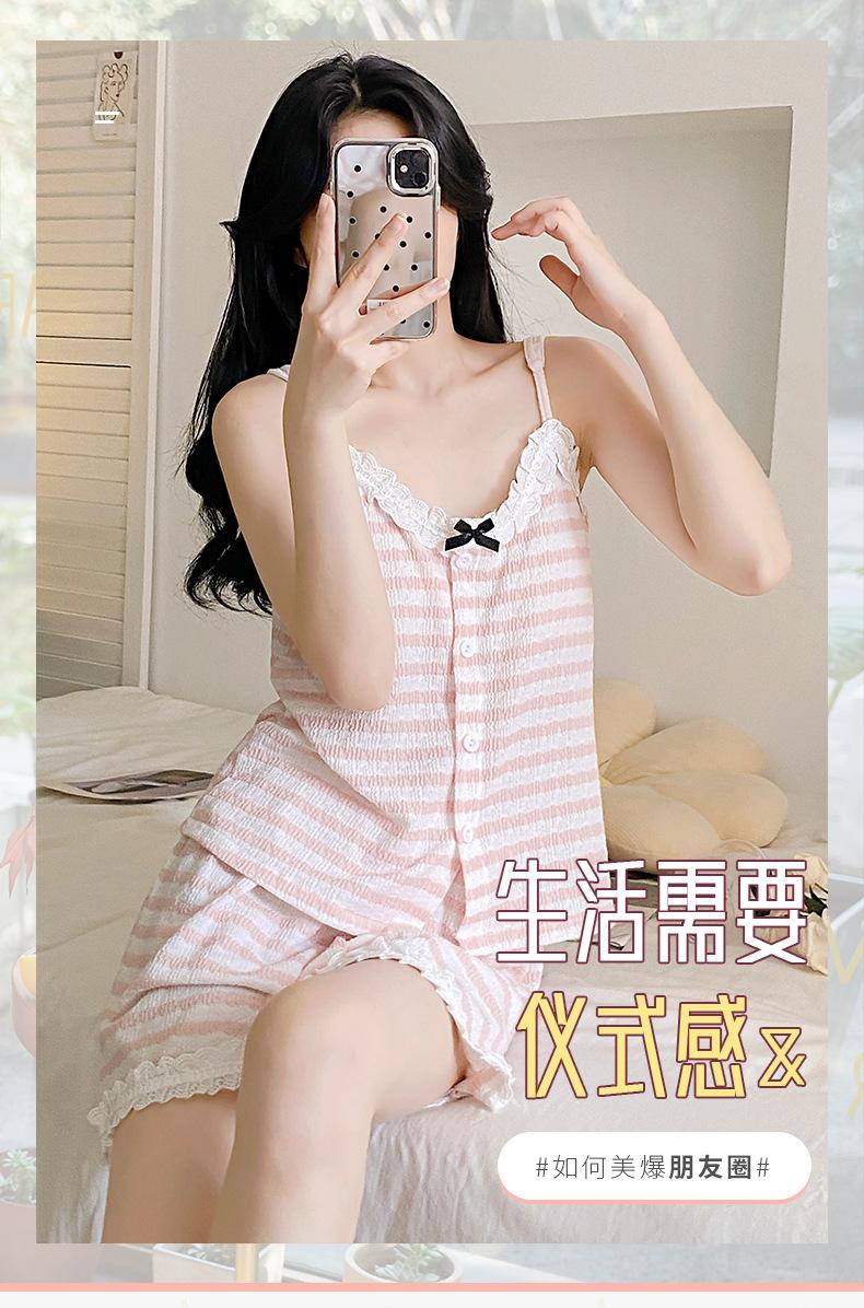 Pijama de Tirantes Rayada para Mujer, Verano Todo en Uno Chaleco con Almohadillas para el Busto Que se Puede Usar Fuera, Ropa de Casa de Talla Grande para Chicas Dulces