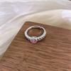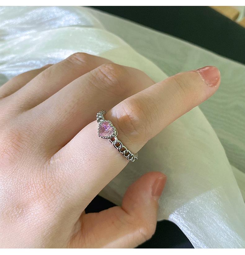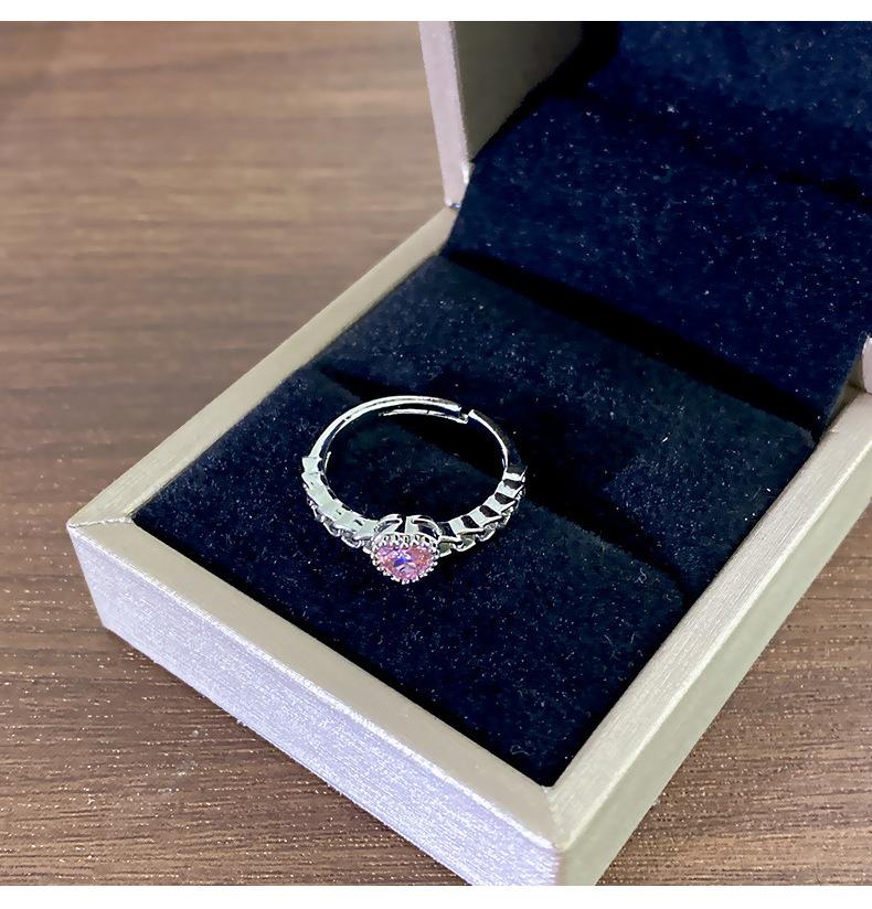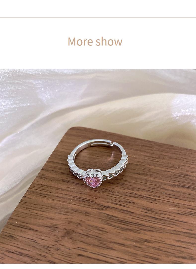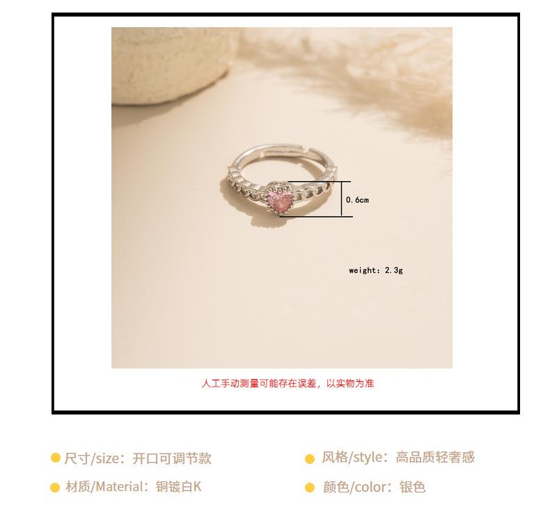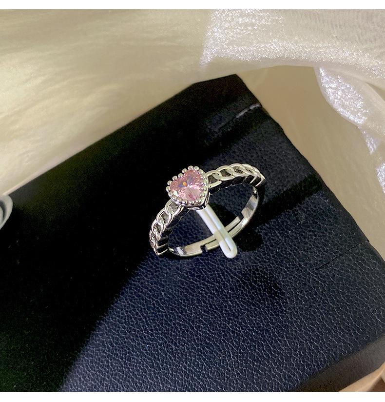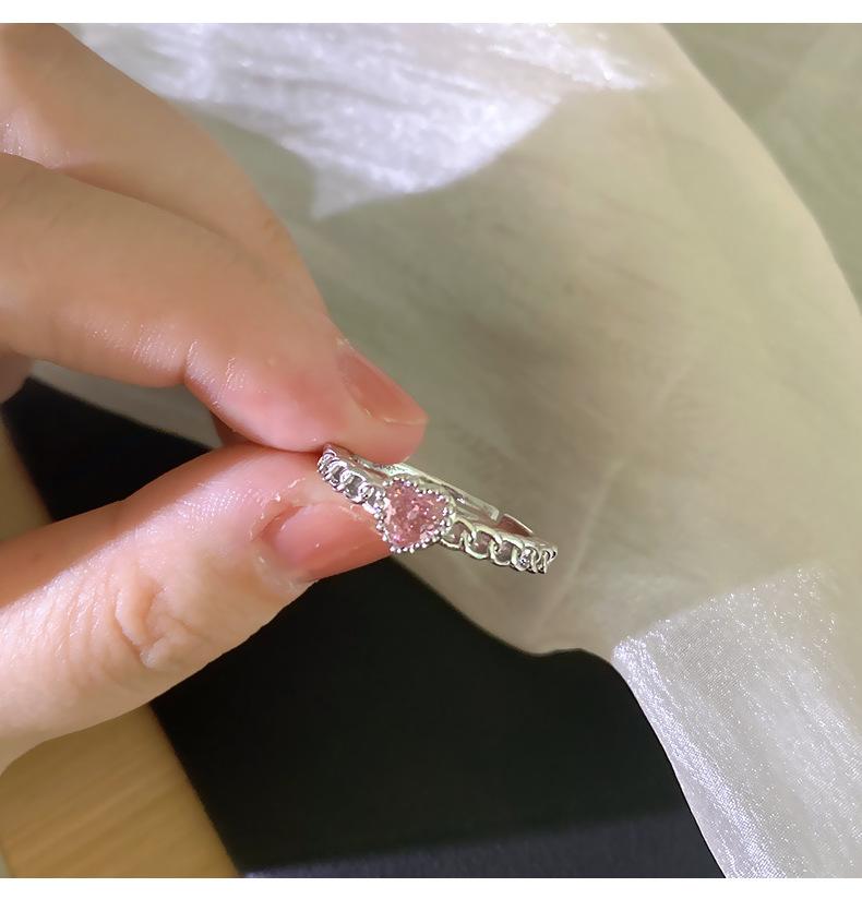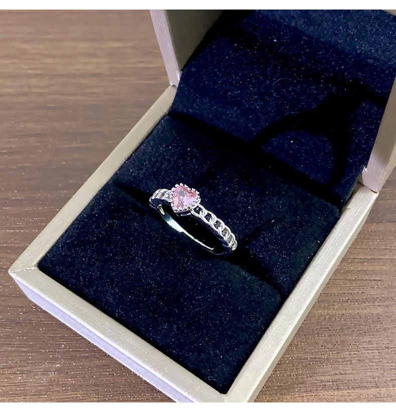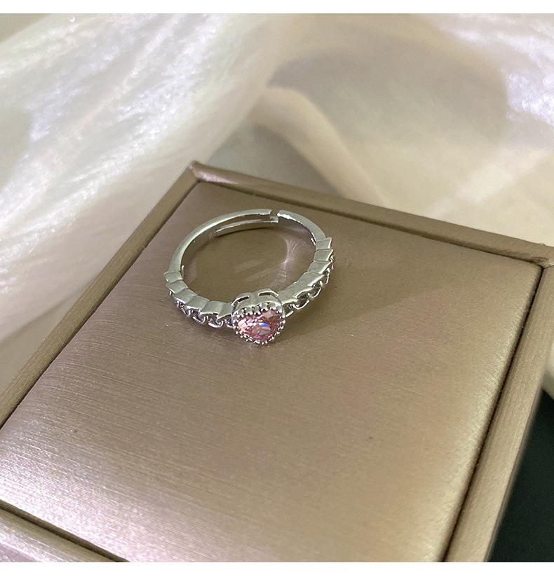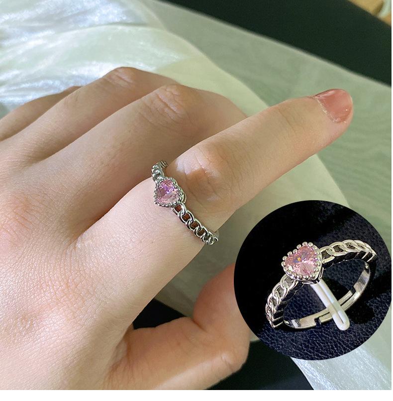 Anillo Simple de Corazón Rosa de Zircón Estilo Coreano Calidad de Alta Gama Sensación de Lujo Ligero Anillo Abierto Ajustable Joyería de Mano al por Mayor