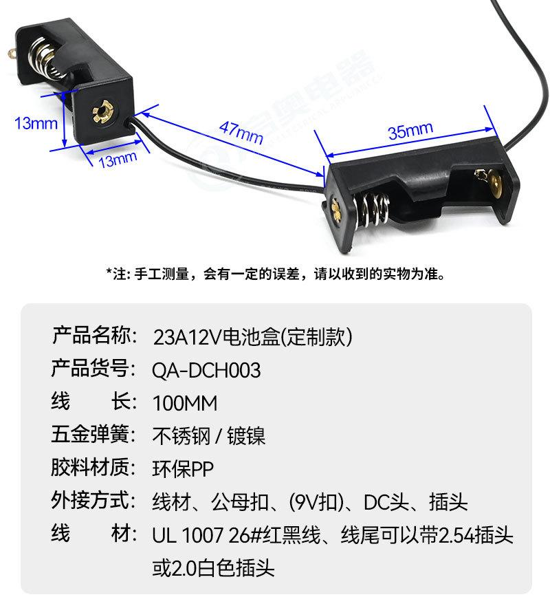 Caja de batería 23A 12V con cable puede contener 2 baterías