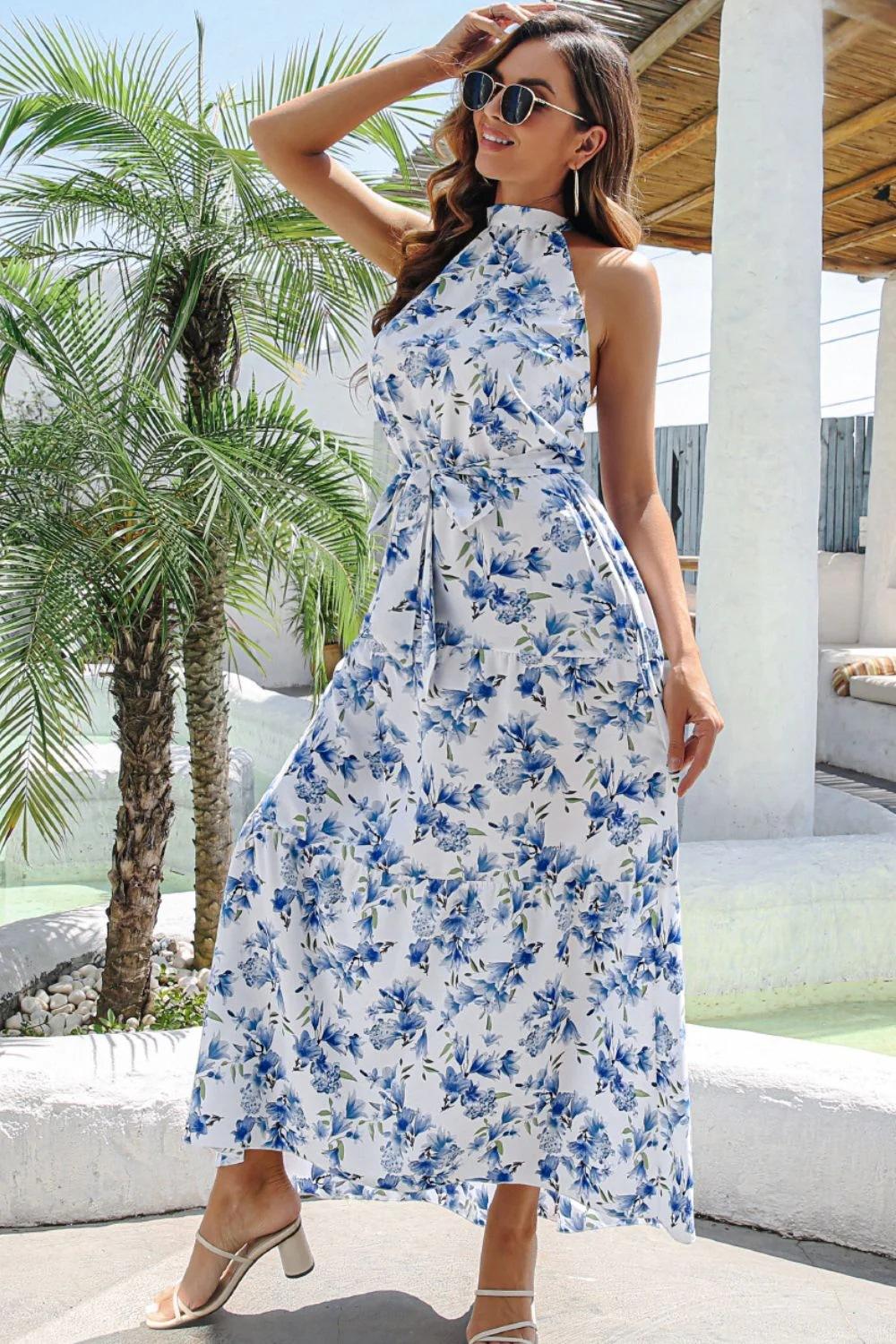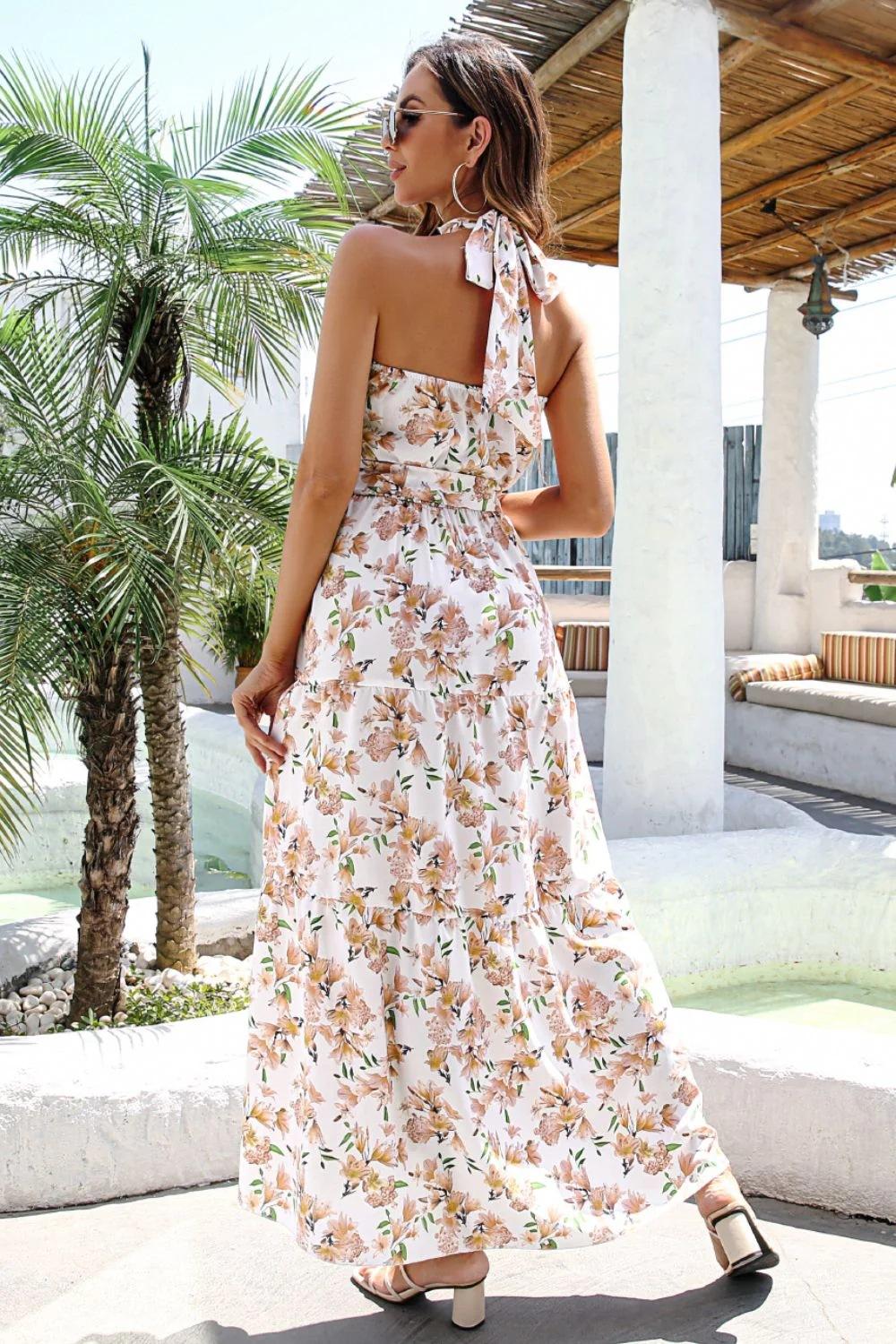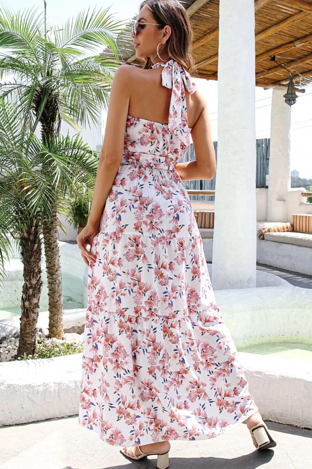 Vestido Halter Amazon 2025 sin Espalda Floral con Dobladillo Irregular e Impresión Tridimensional para Mujer