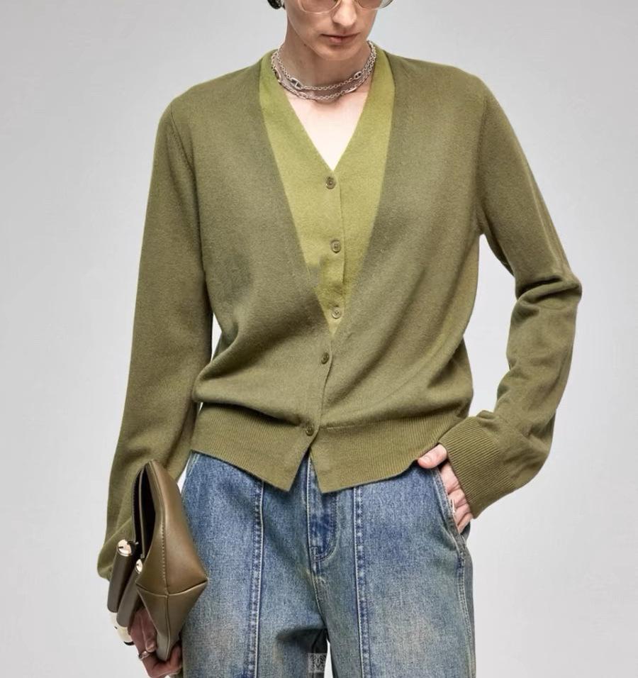 CleanFit viento falso dos_fijo hilado suave lana de cachemira doblado suéter cárdigan