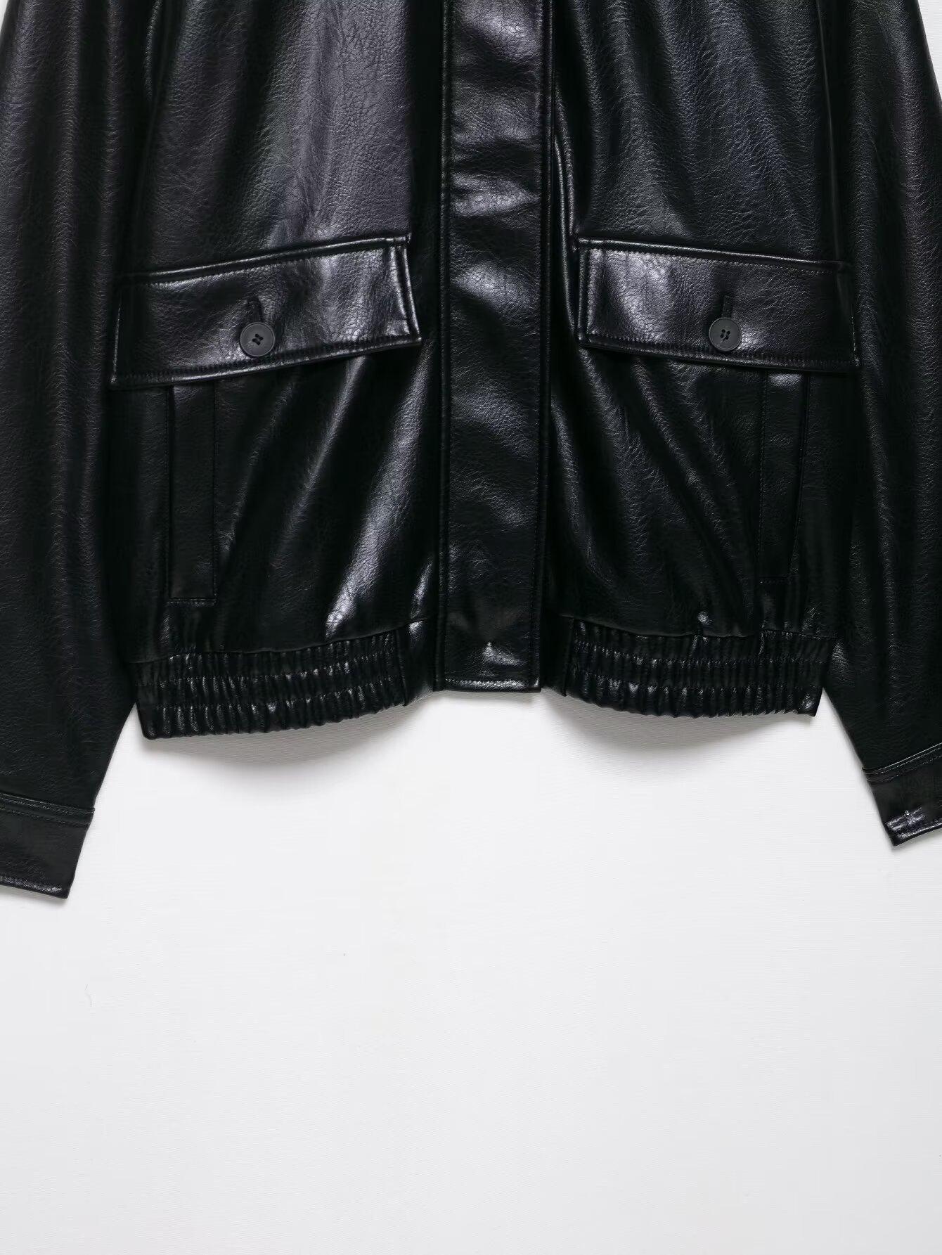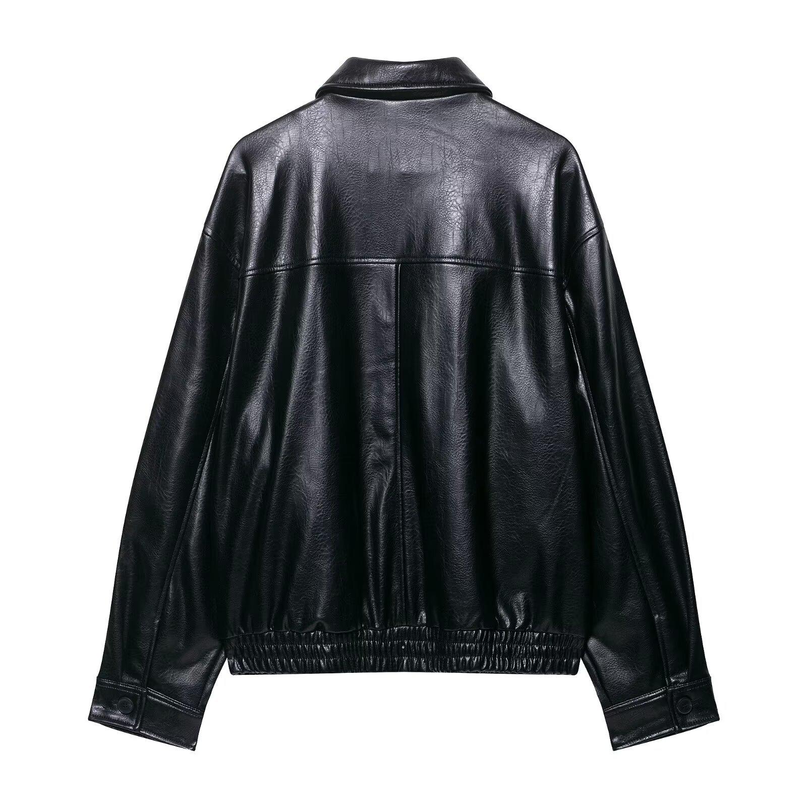 2025 Otoño Nuevo Europeo y Americano Transfronterizo Moda para Mujer Chaqueta Bomber de Imitación de Cuero w085 375029