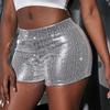 818 # Nuevos Pantalones Cortos Casuales de Cintura Alta Europeos y Americanos Hot Pants para Mujer Alta Elasticidad Lentejuelas Cuentas Ropa para Actuación de Bar Talla Extra
