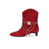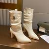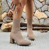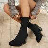 Moda Europea y Americana Punta Afilada Tejido de Punto Botas para Mujer Otoño e Invierno Nuevo Transfronterizo Talla Grande Tacón Grueso Tacón Alto Moda Botines para Mujer