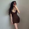 Sexy Deseo Puro Vestido Halter con Escote en V Profundo y Encaje Vestido Ceñido al Cuerpo con Abertura y Pliegues que Abraza la Cintura para Chica Hot
