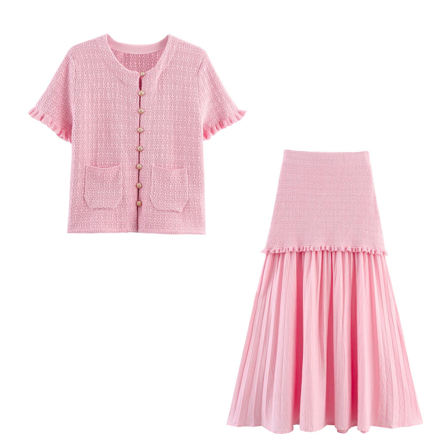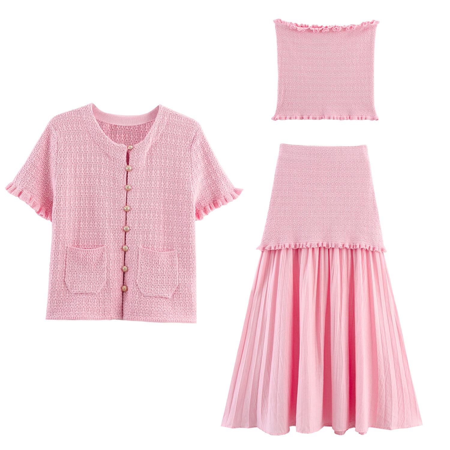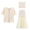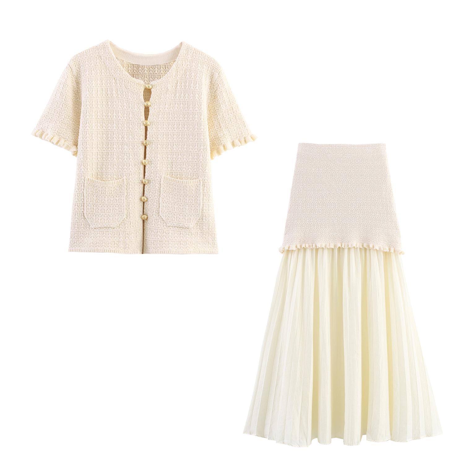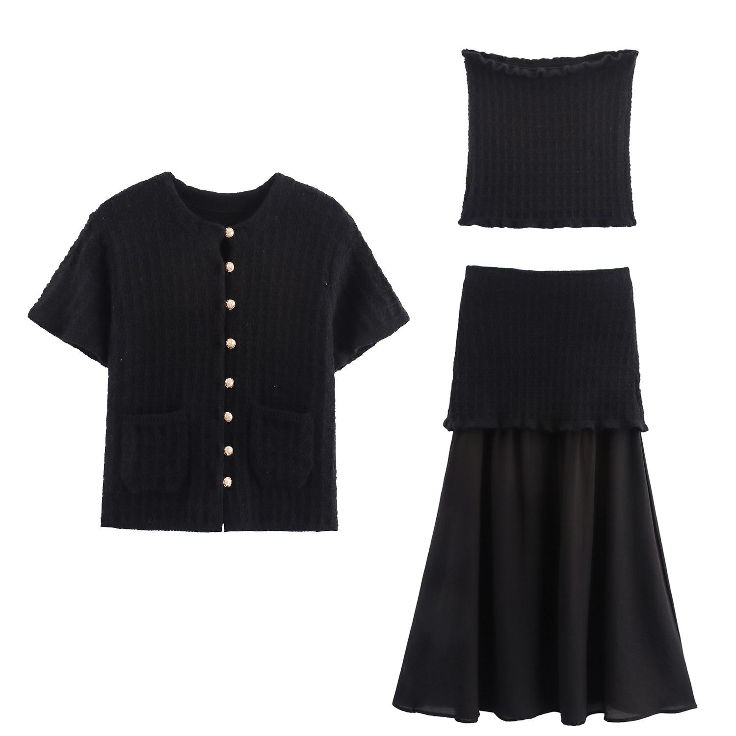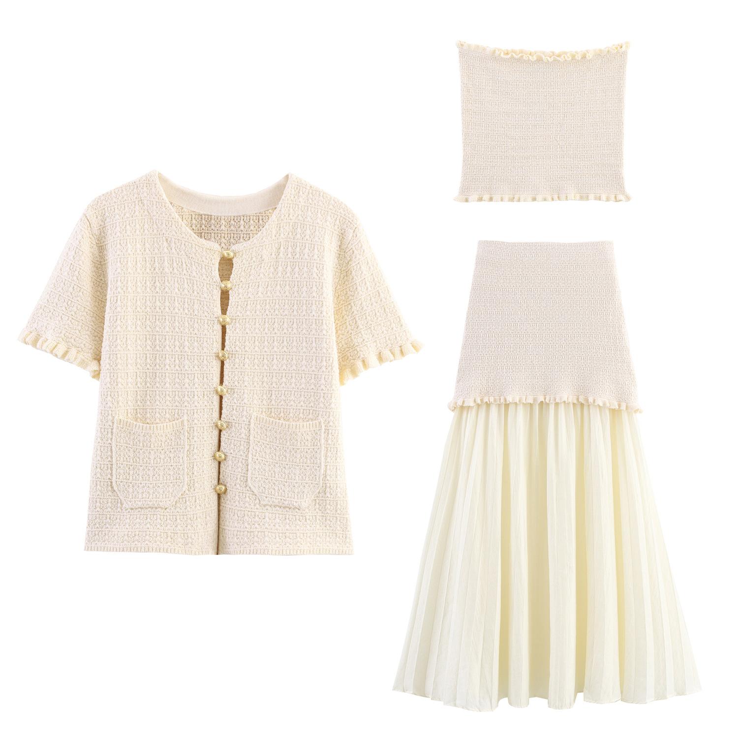 Ropa de mujer europea y americana transfronteriza al por mayor otoño 2025 nuevo cárdigan de punto decorativo en capas + top de pecho + punto empalmado