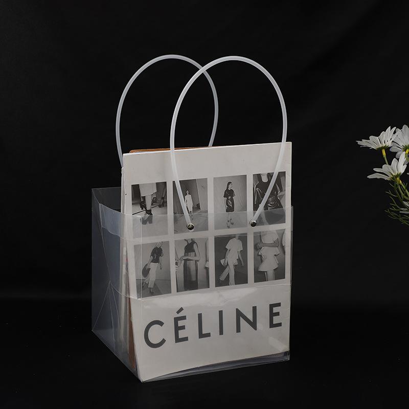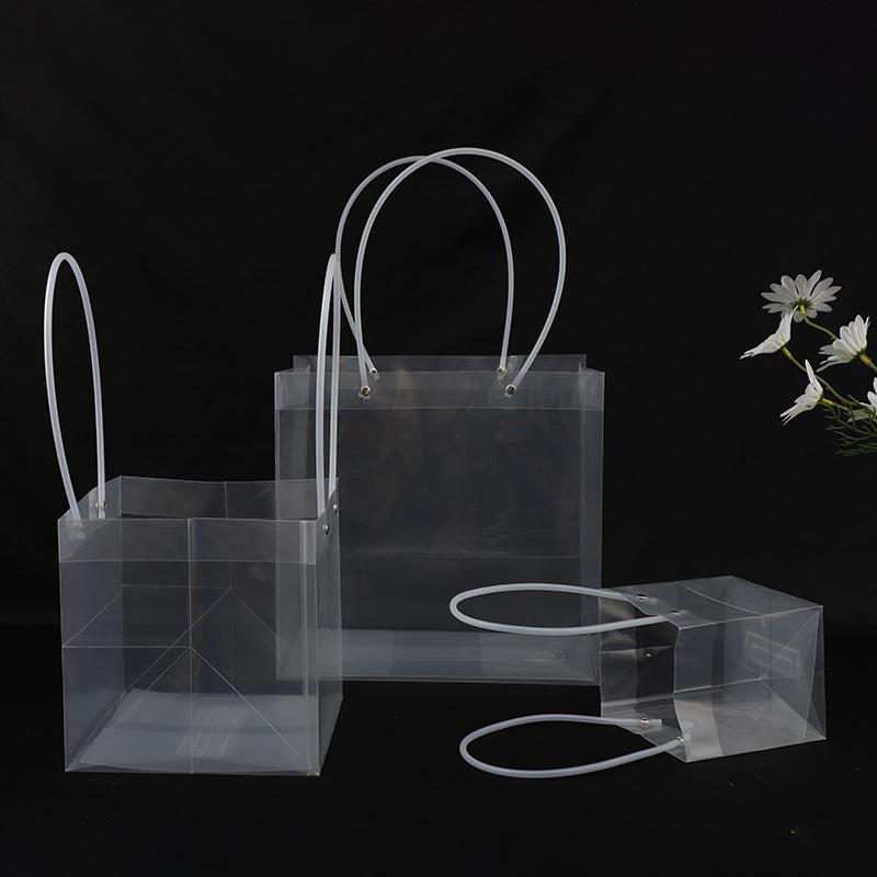 Bolsa tote navideña de PVC en stock bolsa de recuerdo cuadrada transparente de alta gama boda PP bolsa de regalo plástico