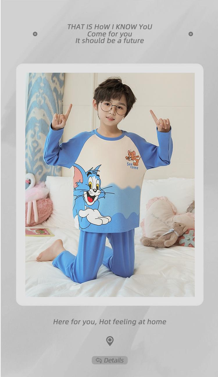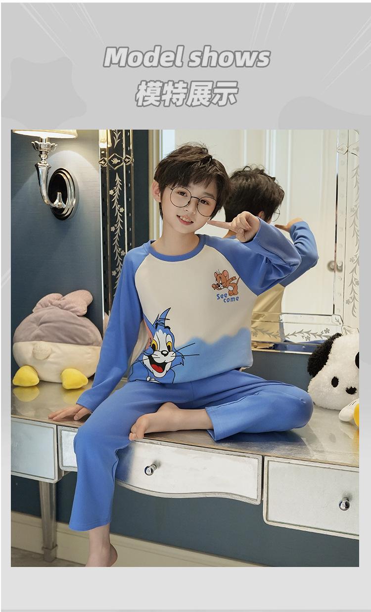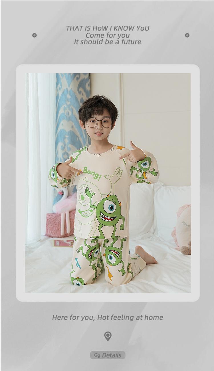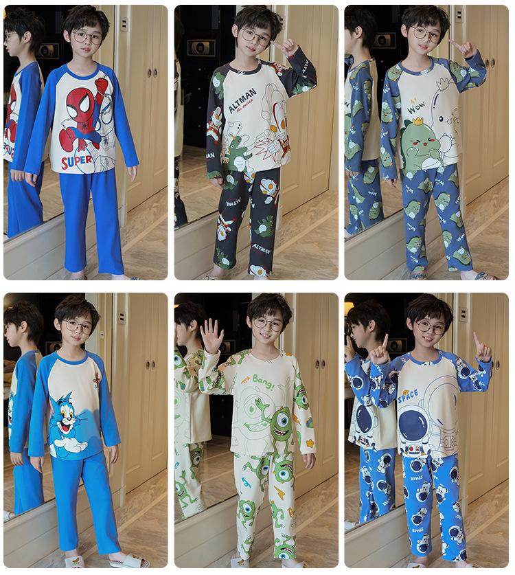 Pijamas de manga larga para niños primavera y otoño niños y niñas caricatura coreana algodón peinado niños medianos y grandes verano ropa de casa venta al por mayor moda