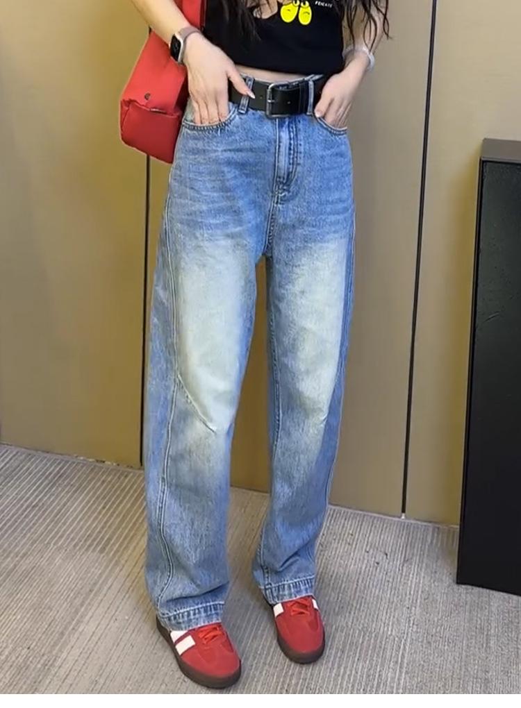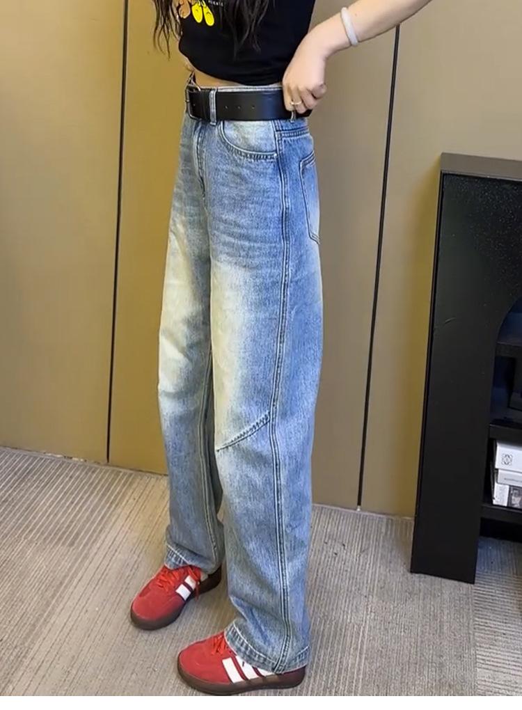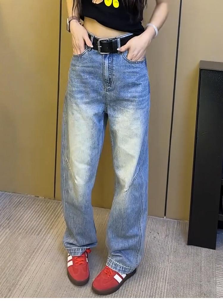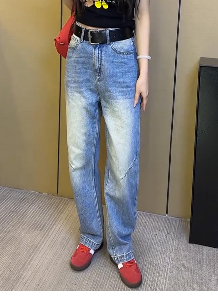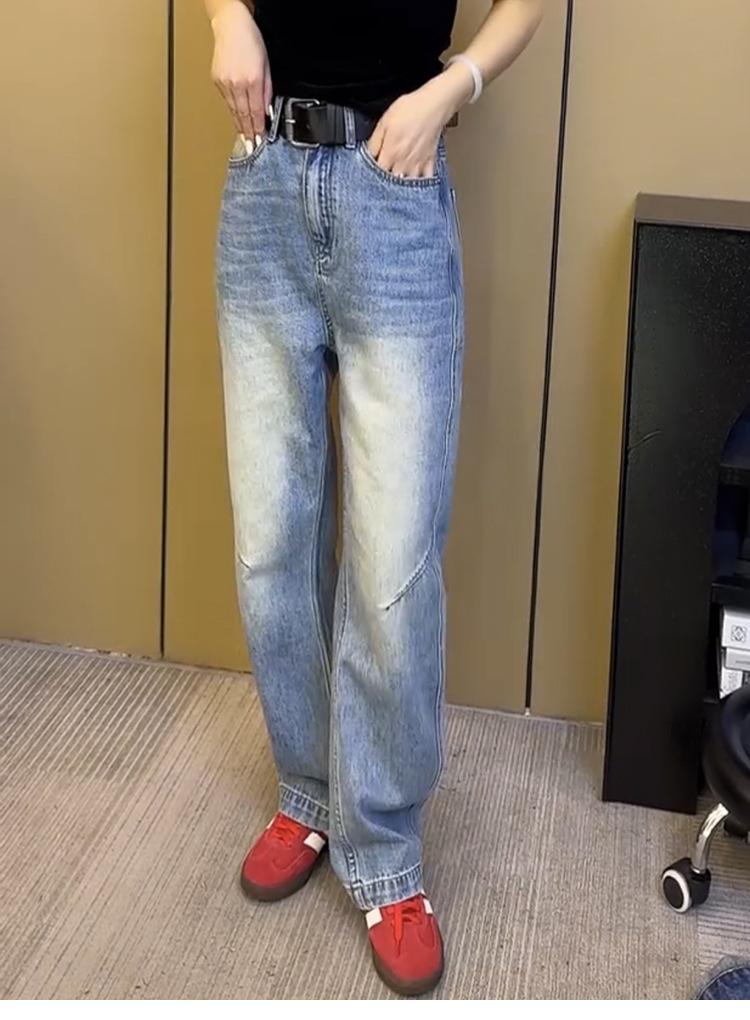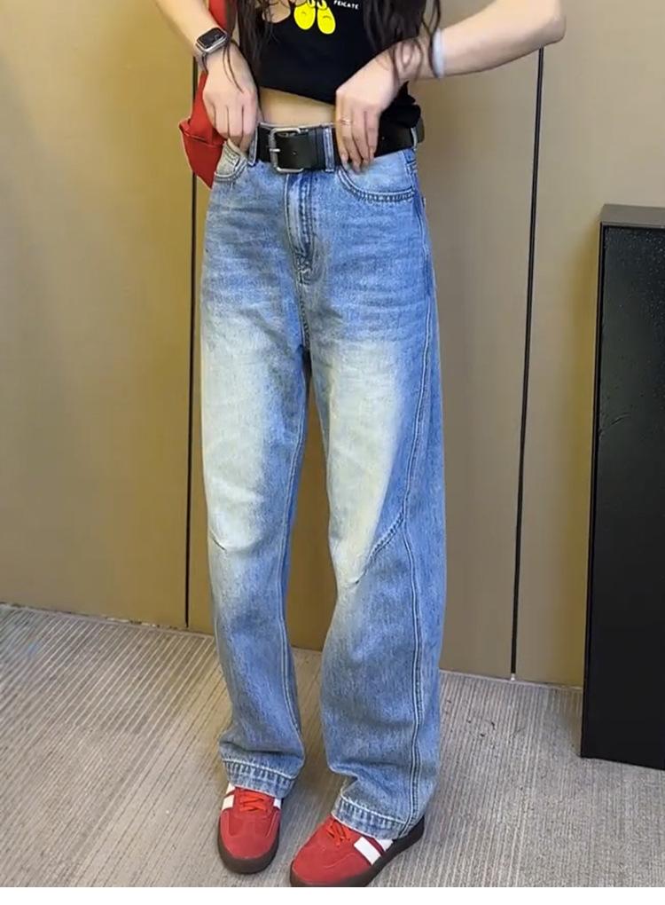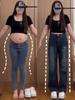 Jeans de talla grande corte slim pierna recta mujer verano 2025 nuevos pantalones de pierna curvada gordita mm adelgazantes sueltos pantalones de pierna ancha