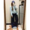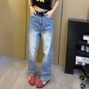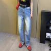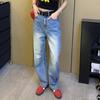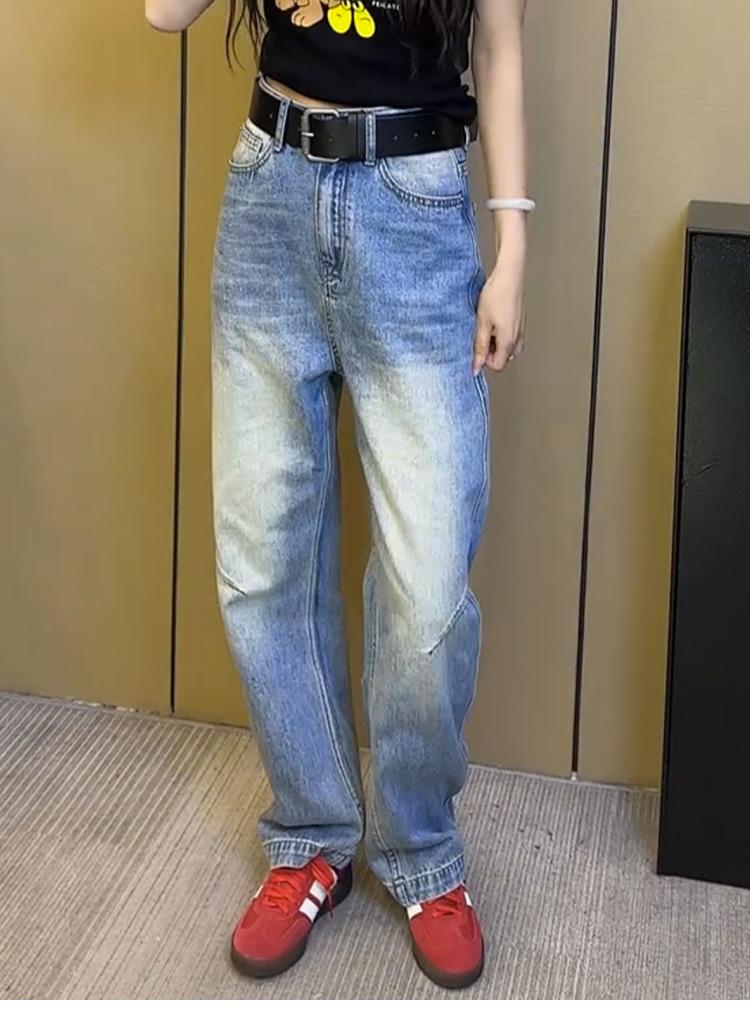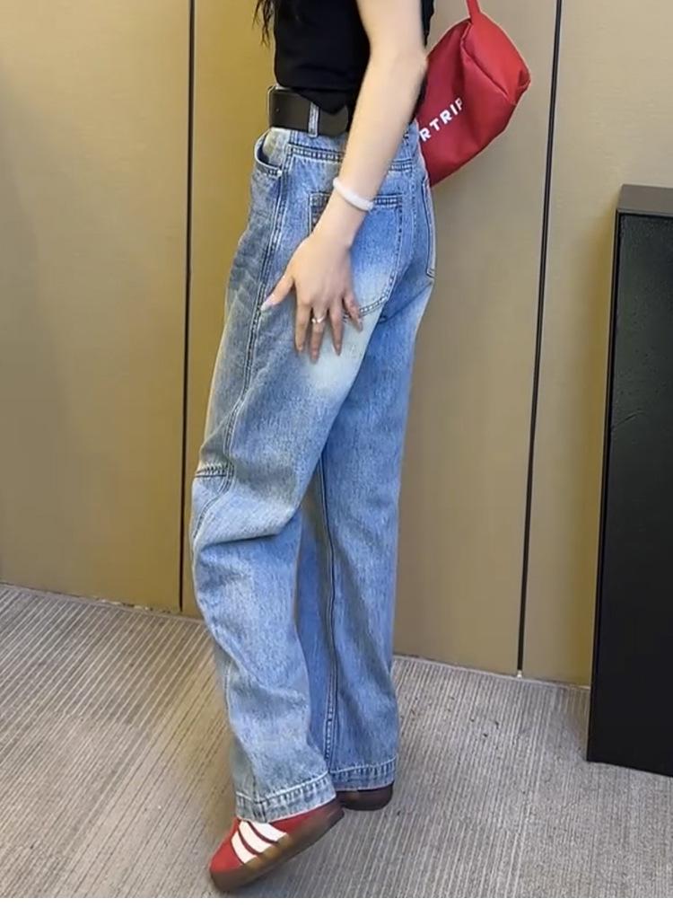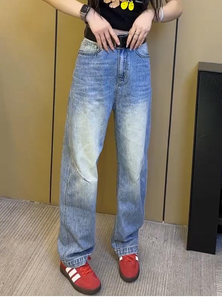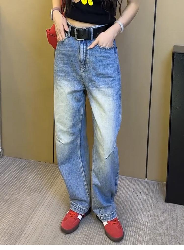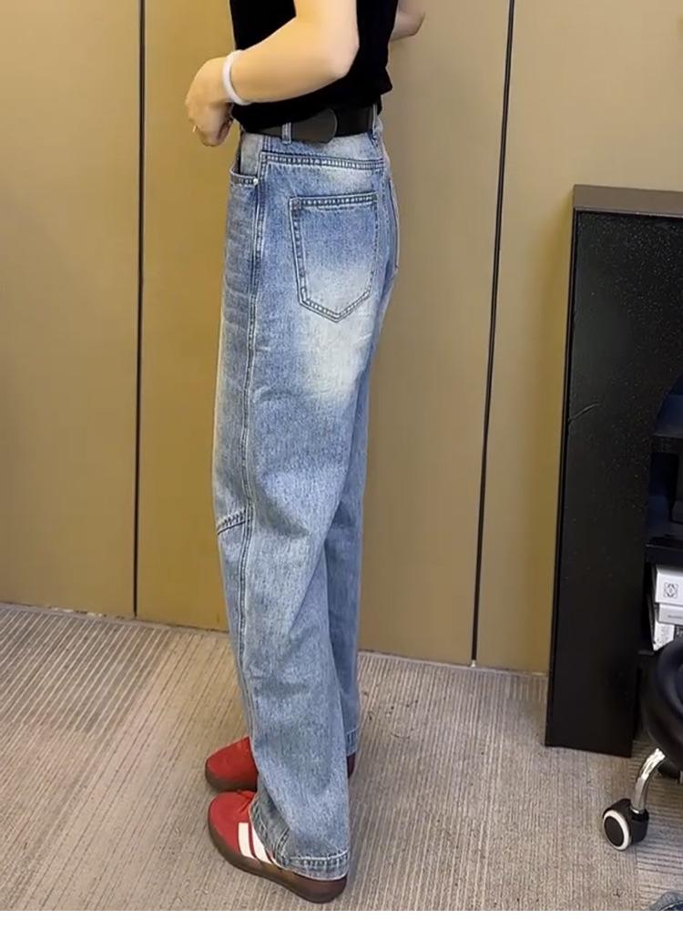 Jeans de talla grande corte slim pierna recta mujer verano 2025 nuevos pantalones de pierna curvada gordita mm adelgazantes sueltos pantalones de pierna ancha