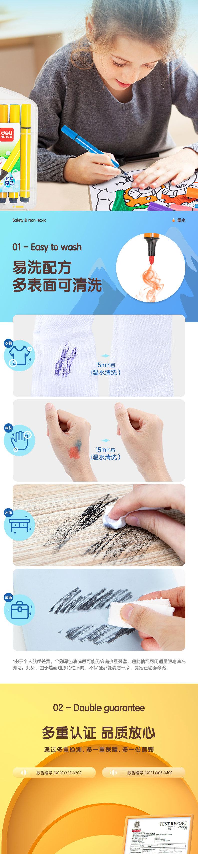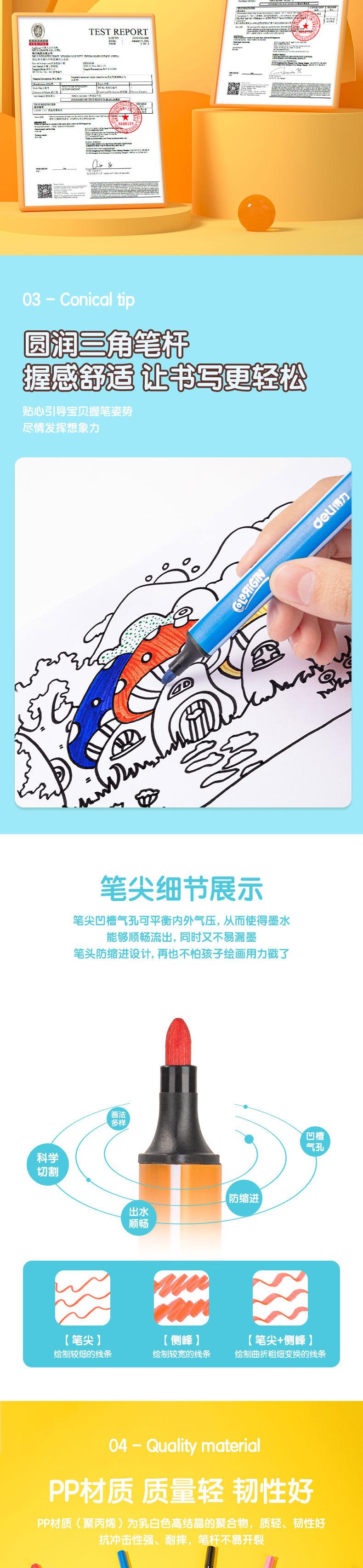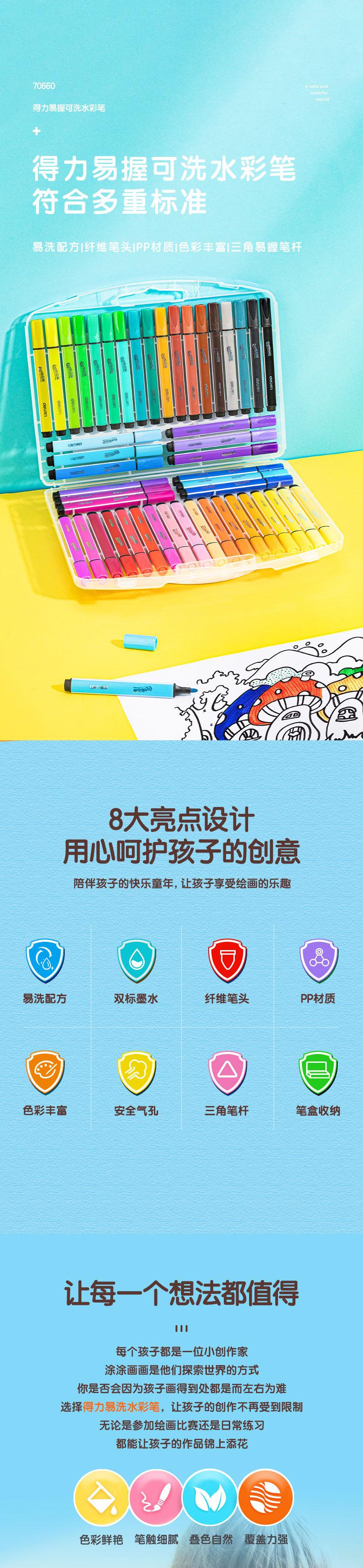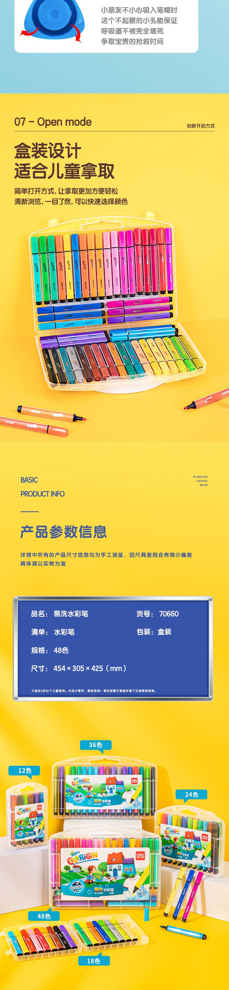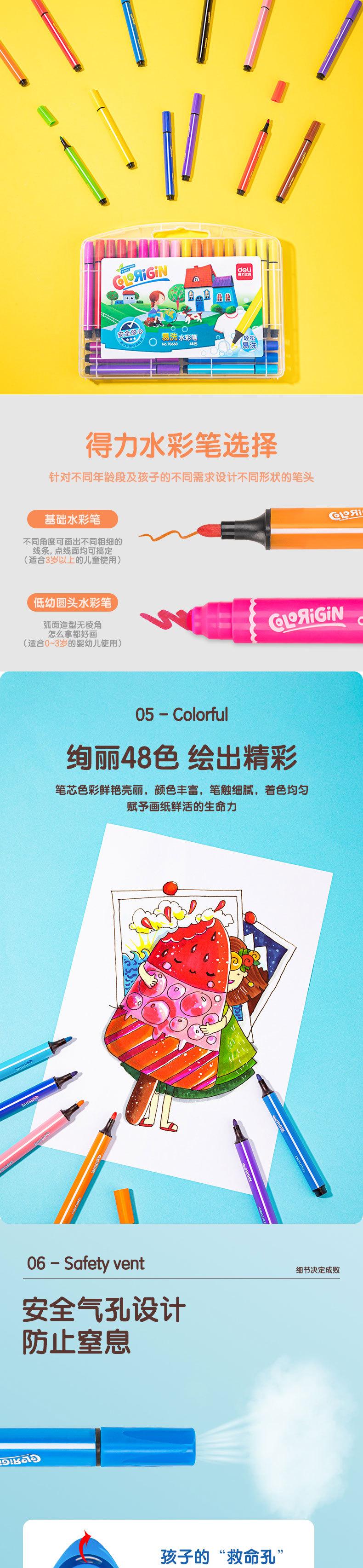 Deli 70660-48 Colores Plumas de Acuarela Fácilmente Lavables Barril Triangular Grueso Plumas de Acuarela Lavables Plumas para Dibujar Plumas para Garabatear