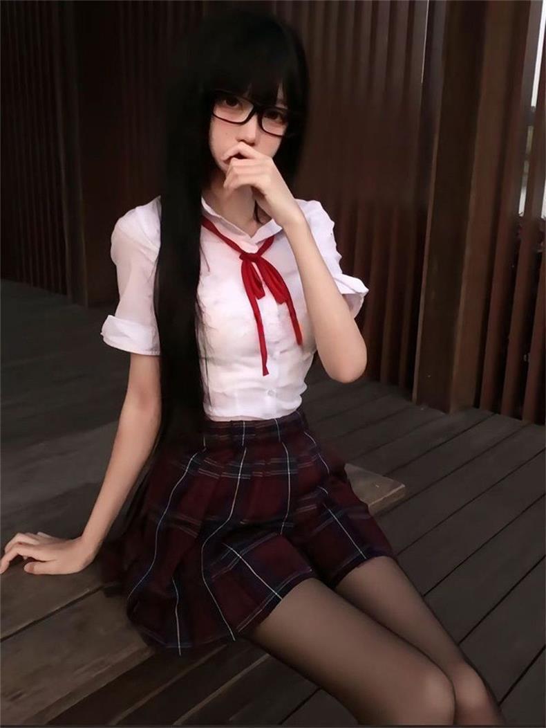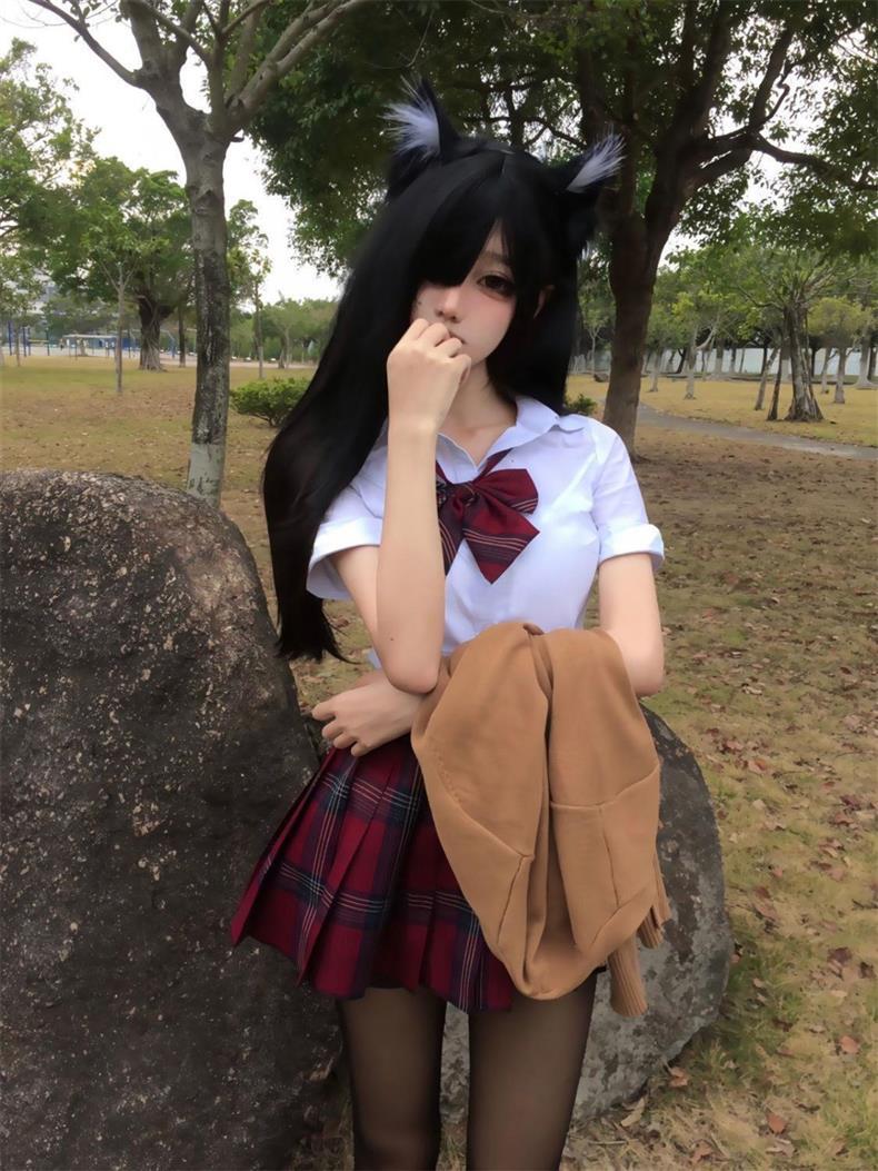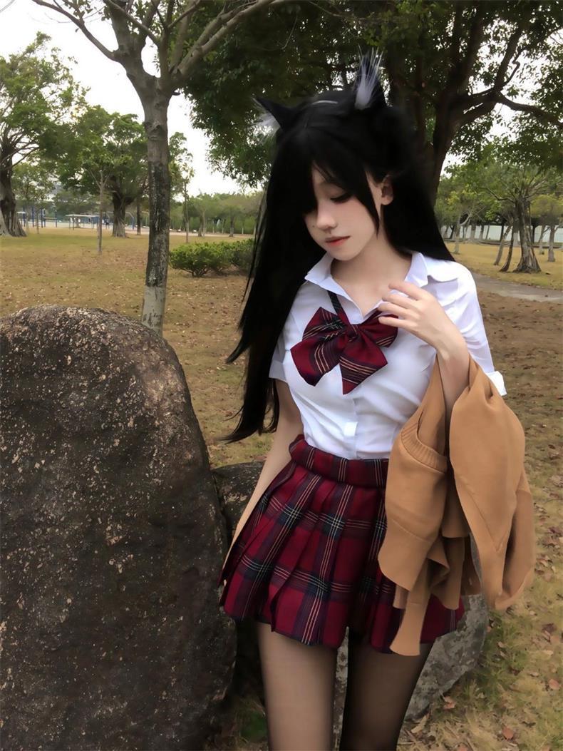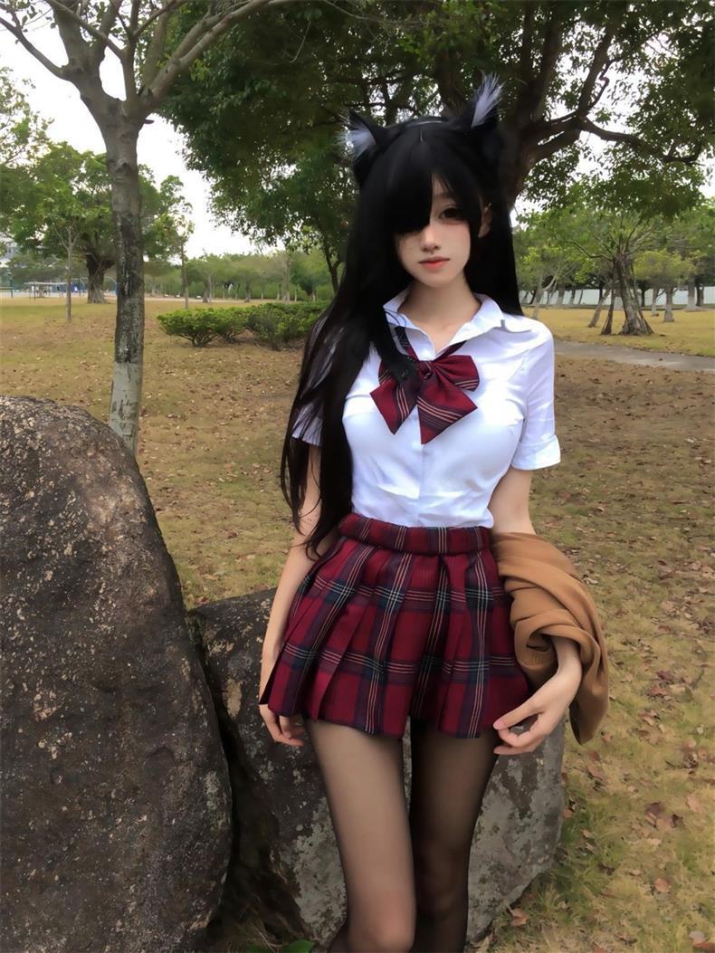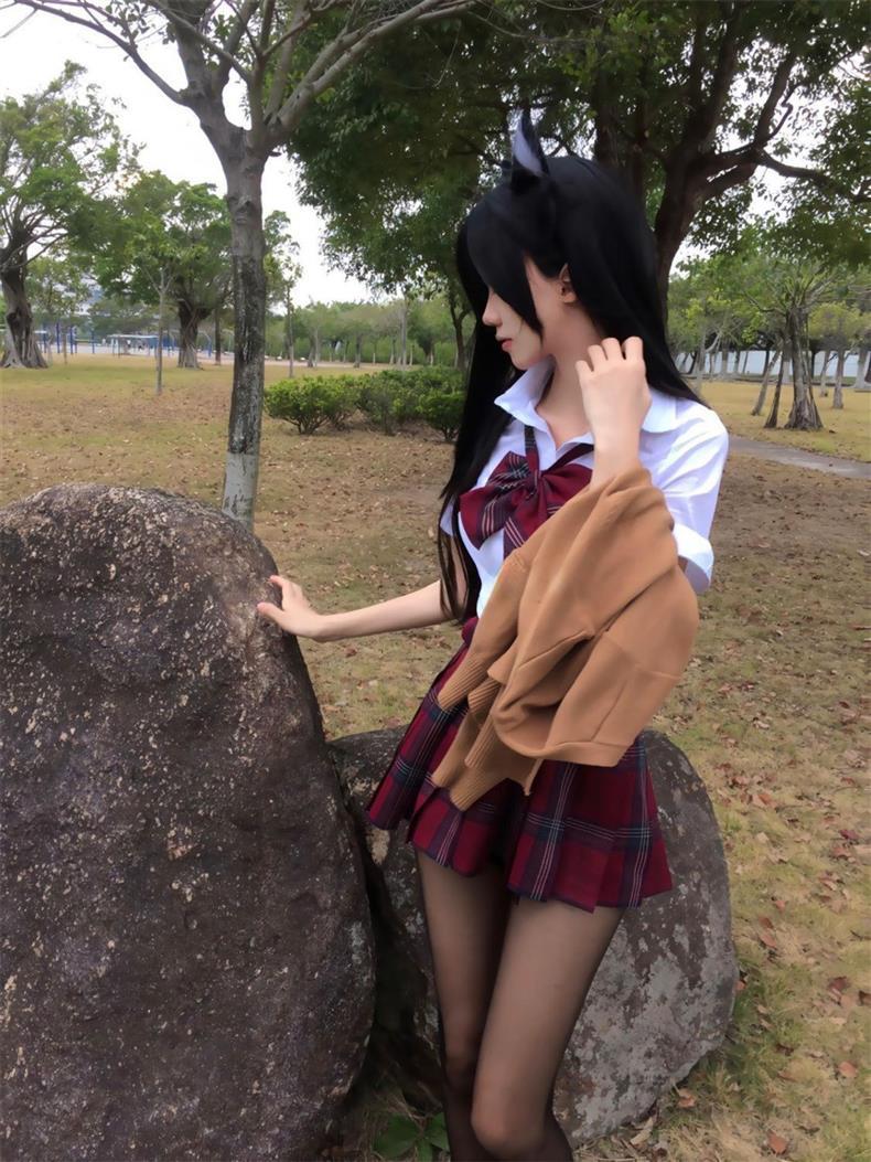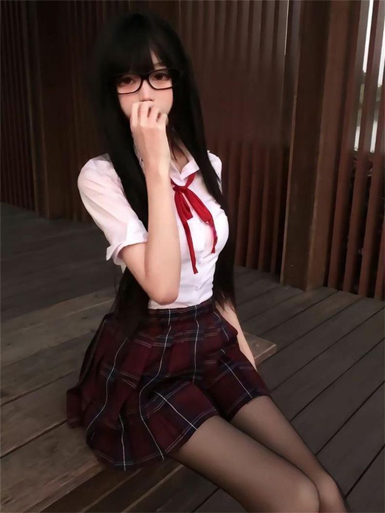 [suit] v-waist short sleeves + black red plaid skirt + bow tie, Black red plaid skirt + bow tie, V-waist short...