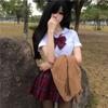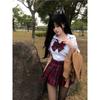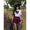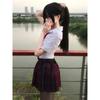 Uniforme Jk Original de Verano Nuevo de Tres Piezas Camisa de Manga Corta Deseo Puro Falda de Cuadros Negra Traje de Aspecto Adelgazante para Mujer