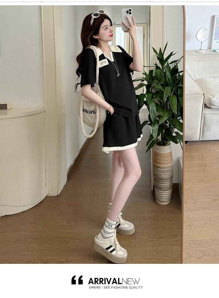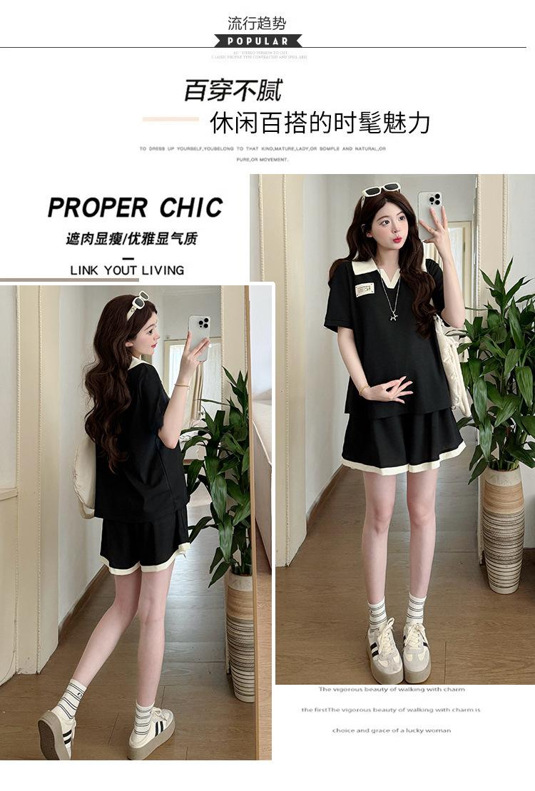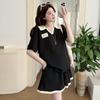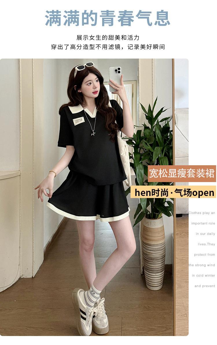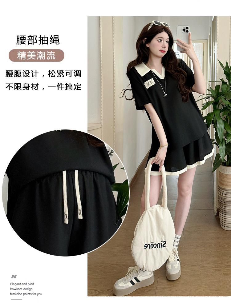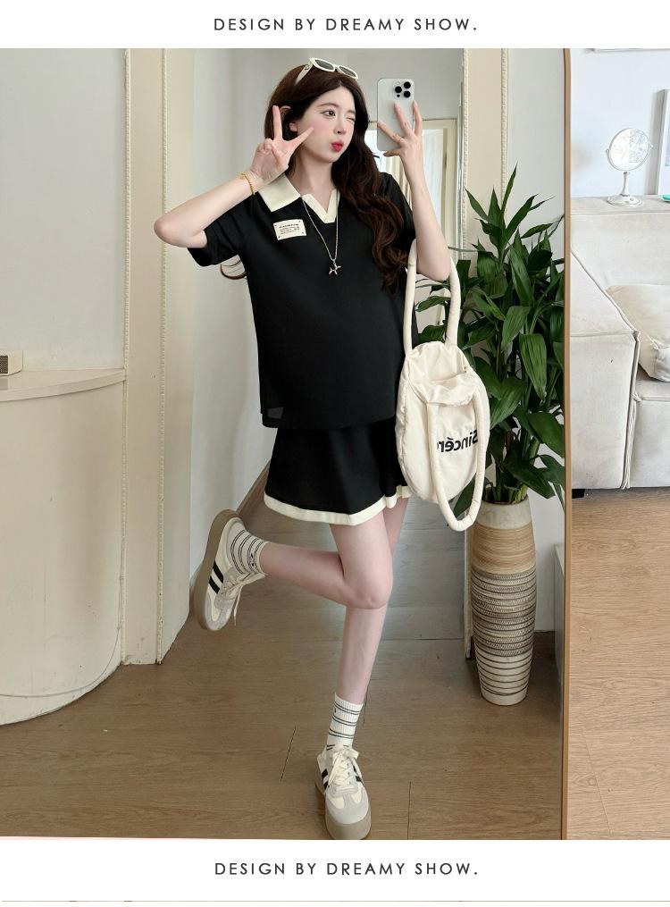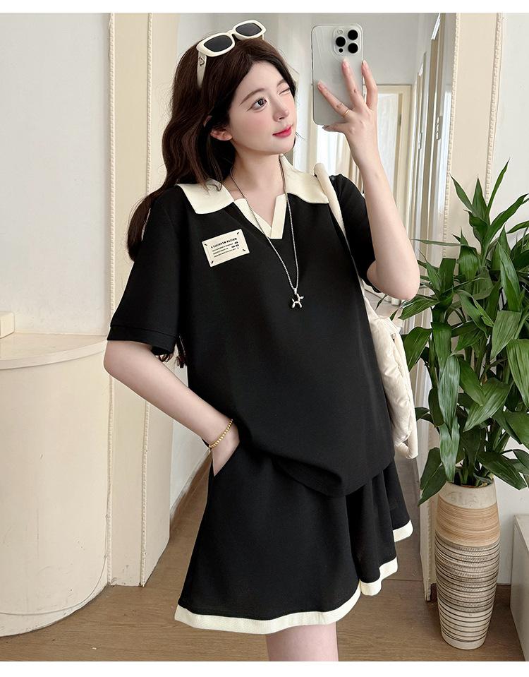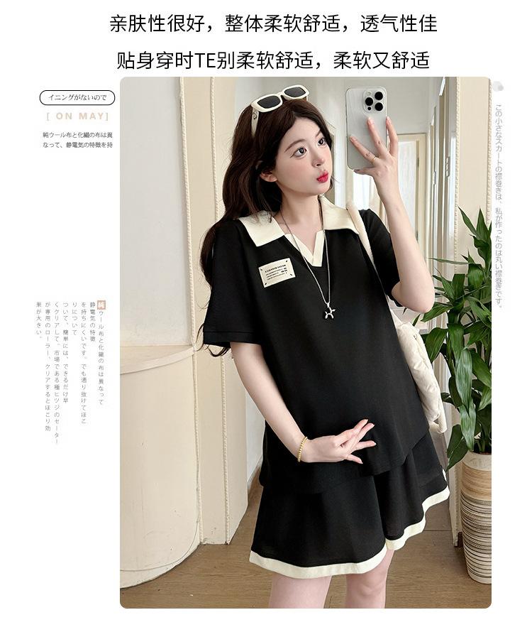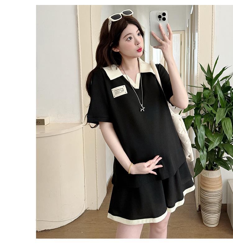Maternidad 2025 Verano Nuevo Coreano Casual Suelto POLO Cuello Top Falda Conjunto de Dos Piezas Traje para Mujeres Embarazadas