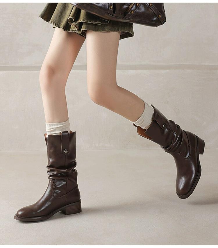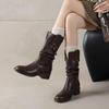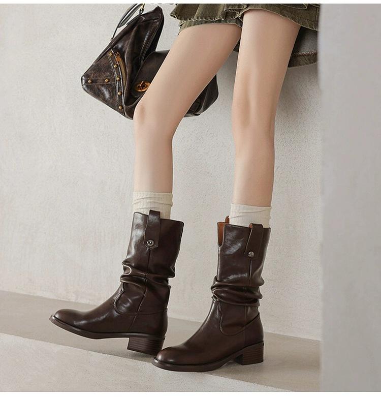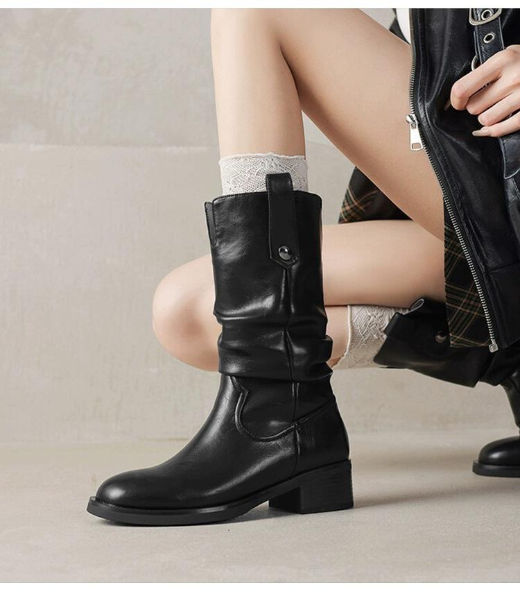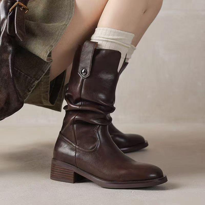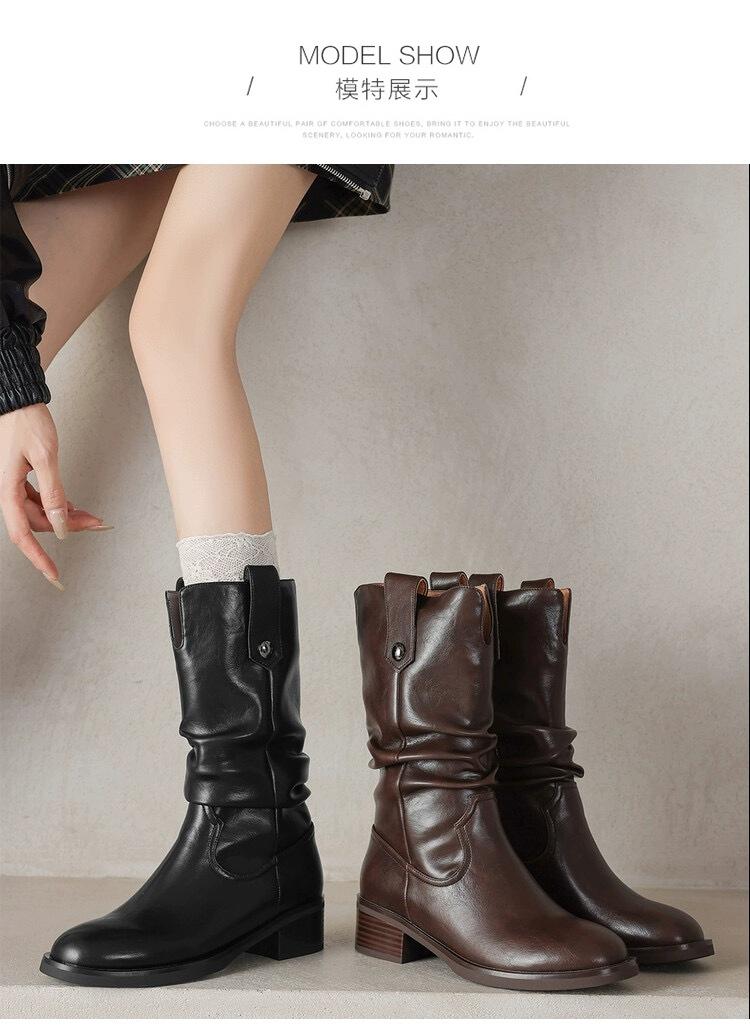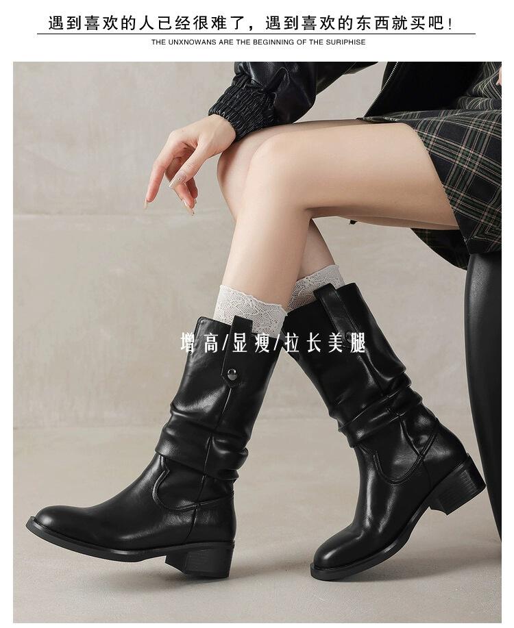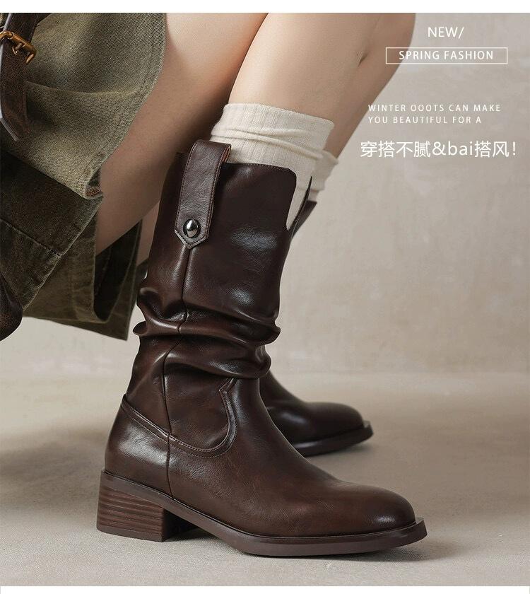 Botines de Tacón Grueso Medio para Mujer 2024 Nuevo Estilo Británico Botines Delgados de Moda Combinables Botas Vaqueras Occidentales Botas Apiladas