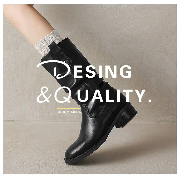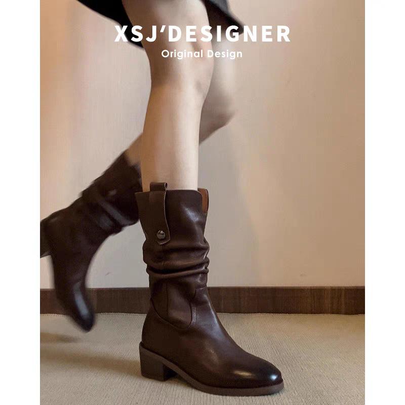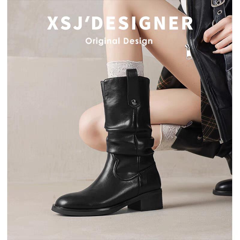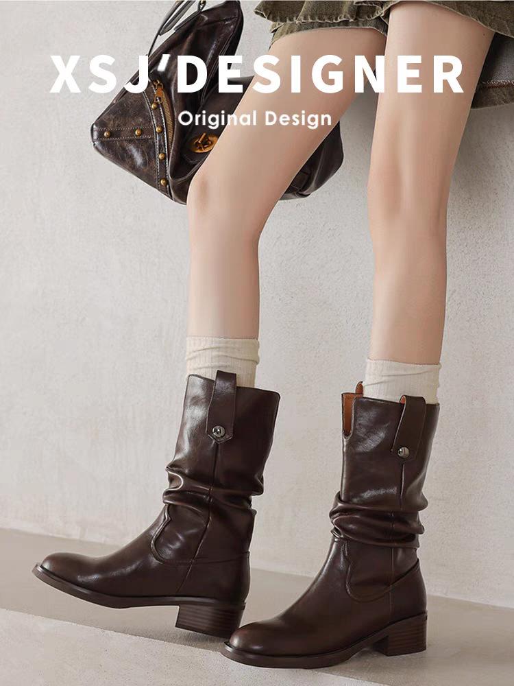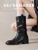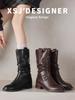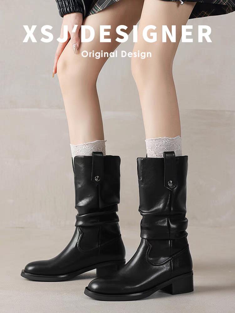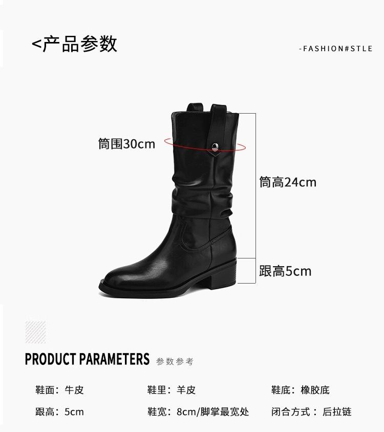 Botines de Tacón Grueso Medio para Mujer 2024 Nuevo Estilo Británico Botines Delgados de Moda Combinables Botas Vaqueras Occidentales Botas Apiladas