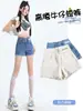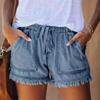 Pantalones cortos de mezclilla casuales de cintura alta y corte slim con borlas para mujer, suministro transfronterizo de exportación europea y americana, cintura elástica
