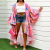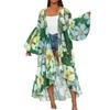 Cárdigan Largo Estampado Casual Transfronterizo de Amazon para Mujer con Manga Farol y Bajo Irregular para Primavera y Otoño