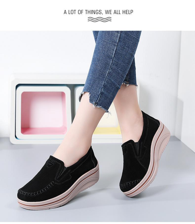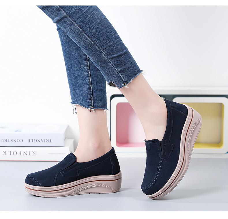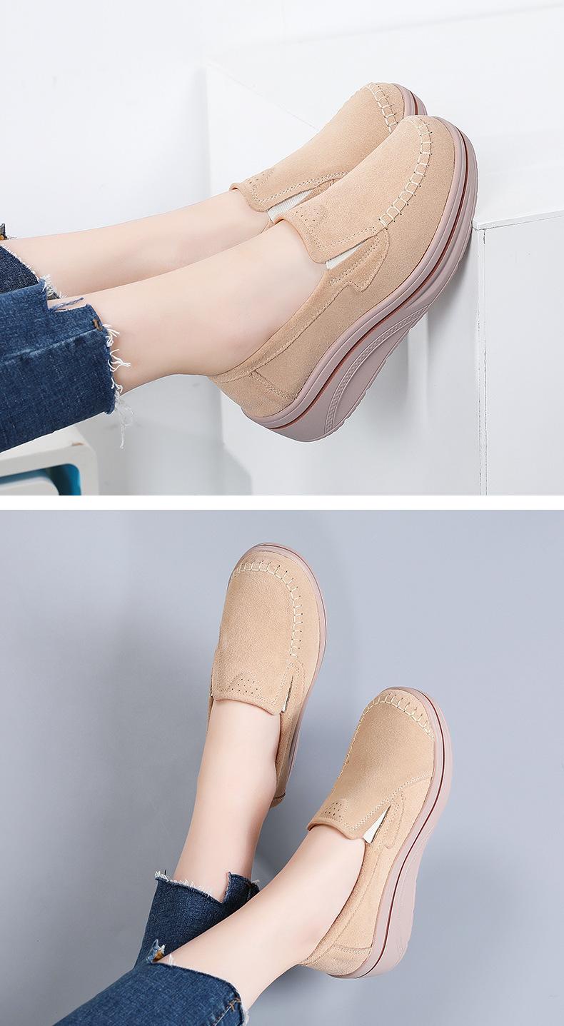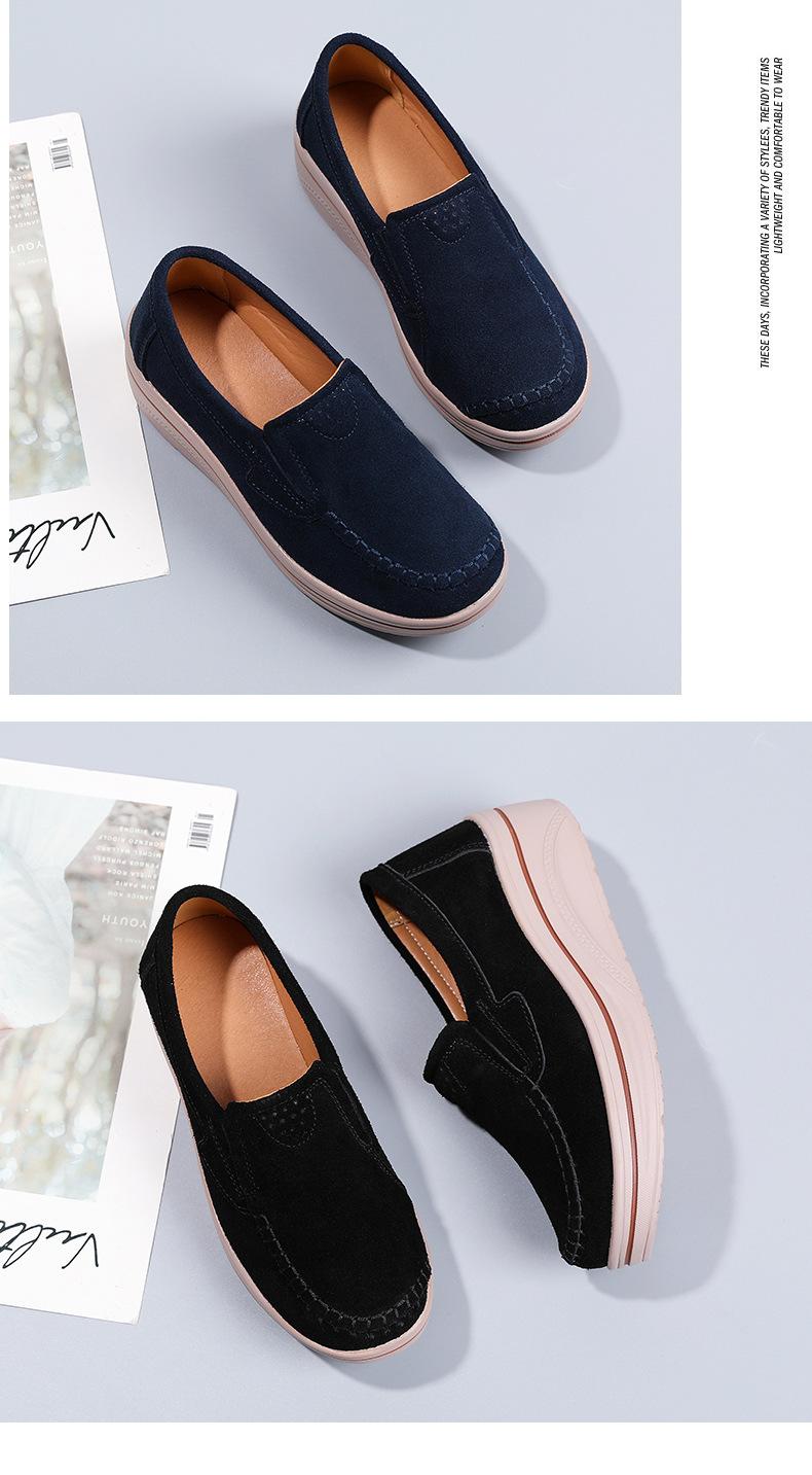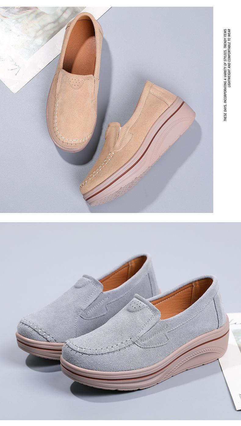 Zapatos de Plataforma para Mujer, Zapatos Mecedora Slip-On de Cuña de Suela Gruesa, Zapatos de Viaje para Mamá, Zapatos Casuales Versátiles de Piel Genuina para Aumentar la Altura