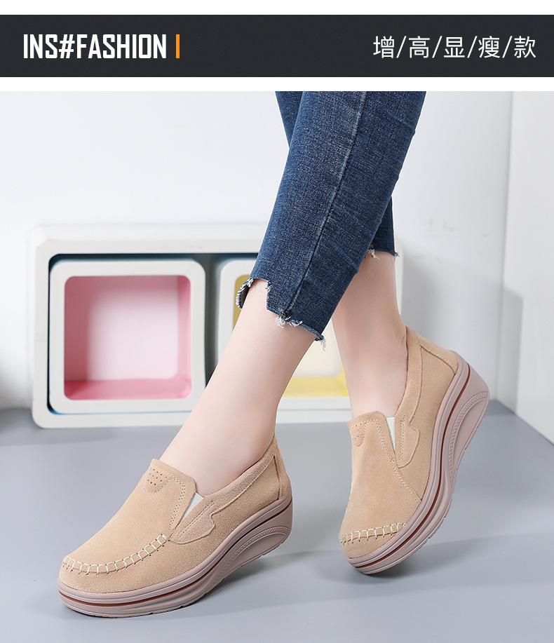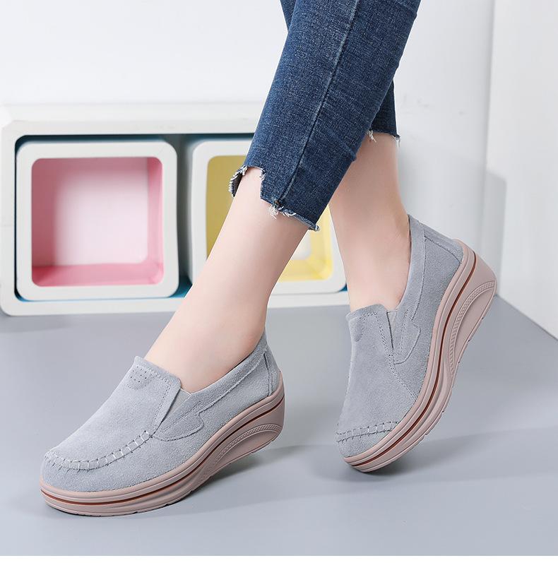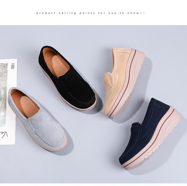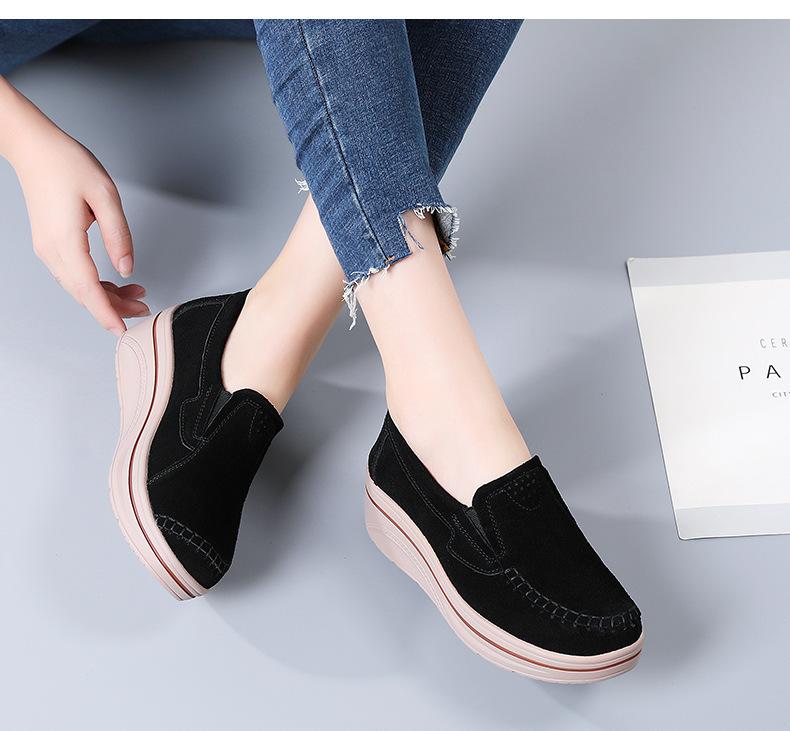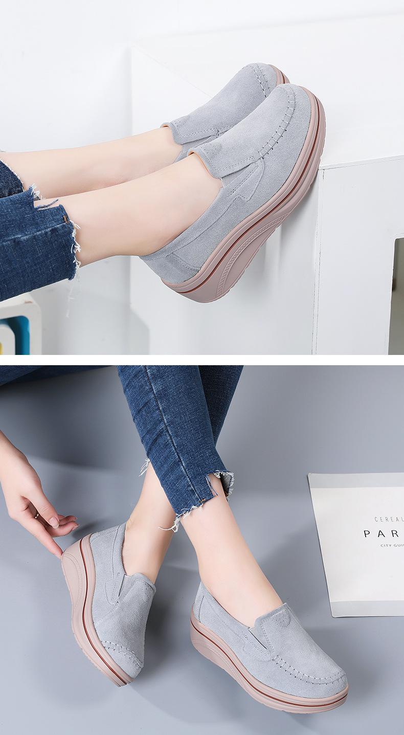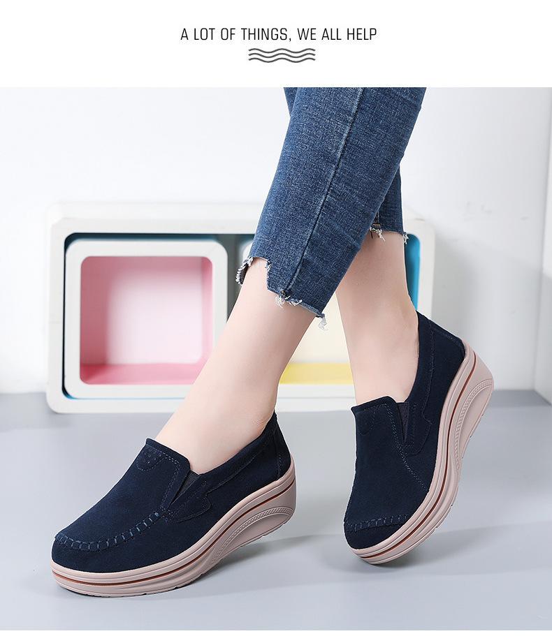Zapatos de Plataforma para Mujer, Zapatos Mecedora Slip-On de Cuña de Suela Gruesa, Zapatos de Viaje para Mamá, Zapatos Casuales Versátiles de Piel Genuina para Aumentar la Altura