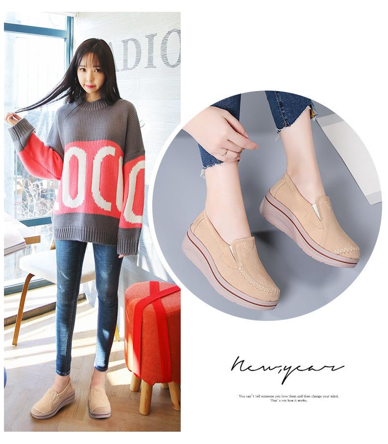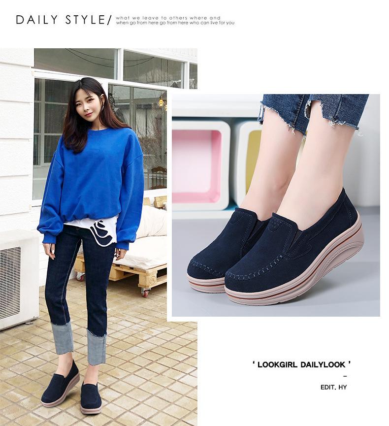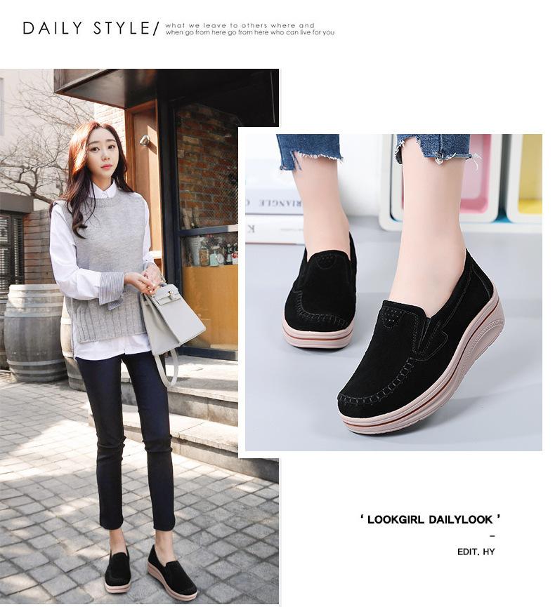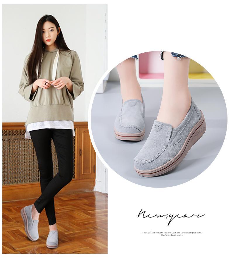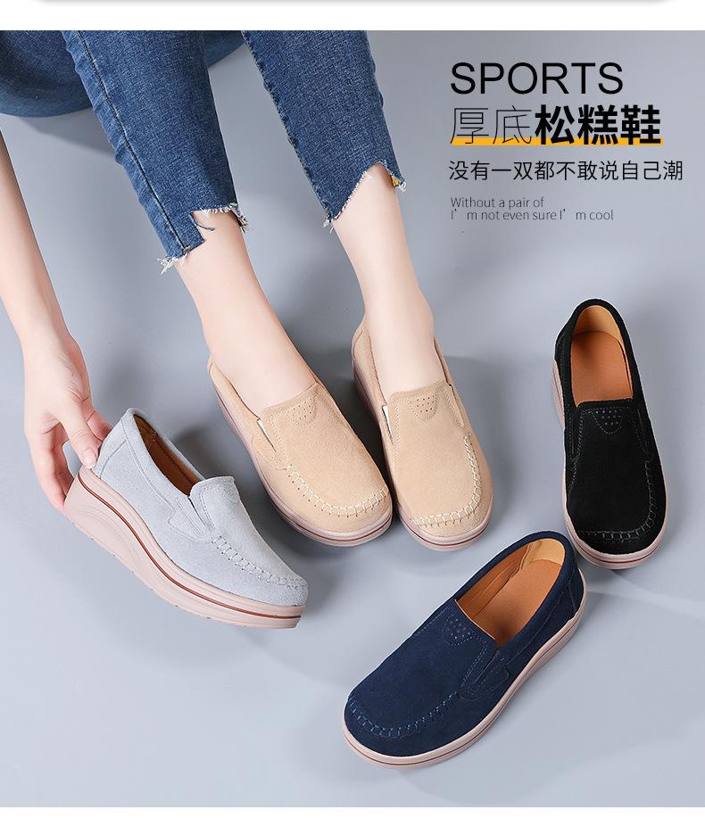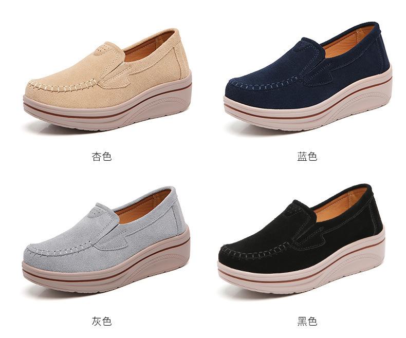 Zapatos de Plataforma para Mujer, Zapatos Mecedora Slip-On de Cuña de Suela Gruesa, Zapatos de Viaje para Mamá, Zapatos Casuales Versátiles de Piel Genuina para Aumentar la Altura