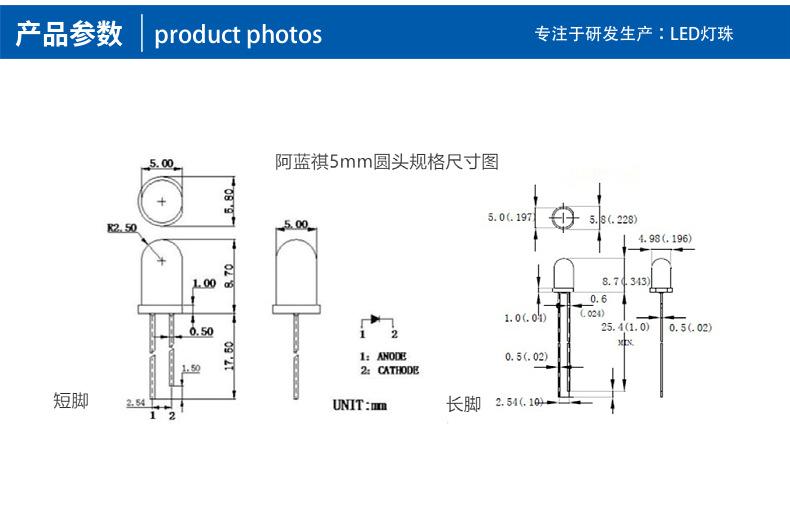 F5 round head high-brightness white light [short leg], F5 round head high brightness warm white light [short l...