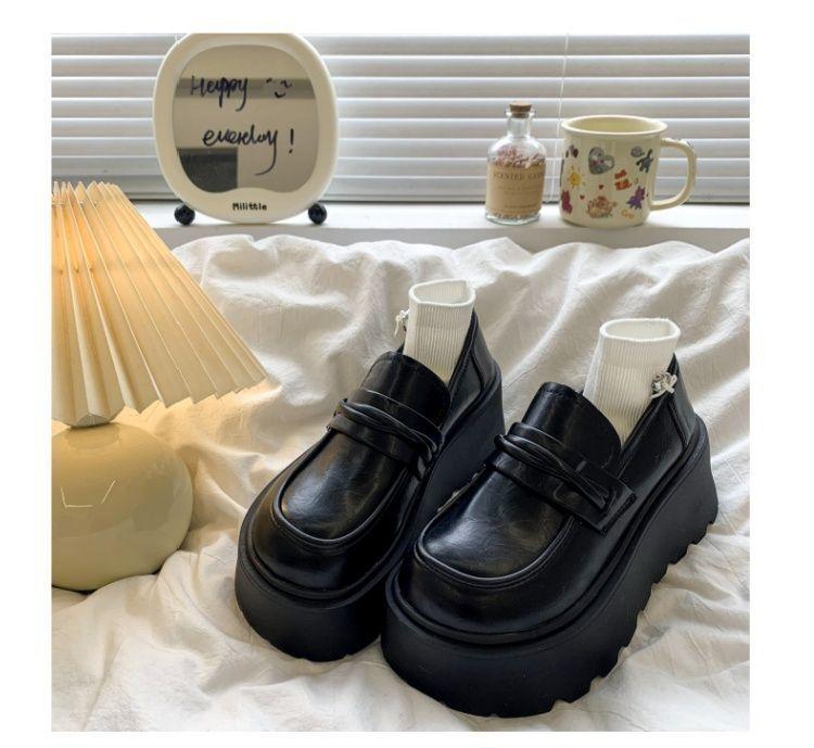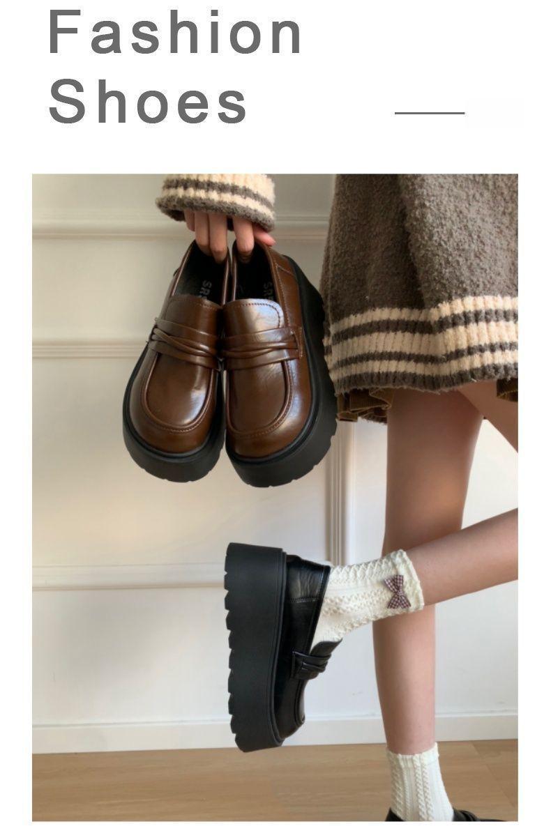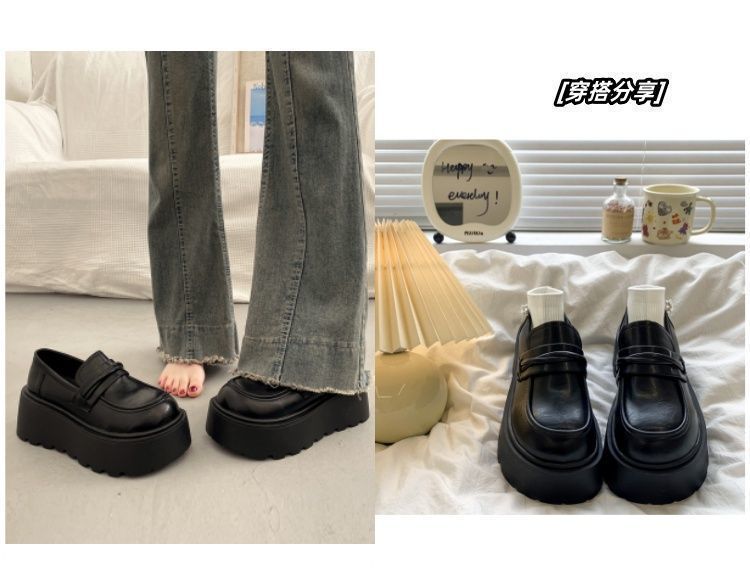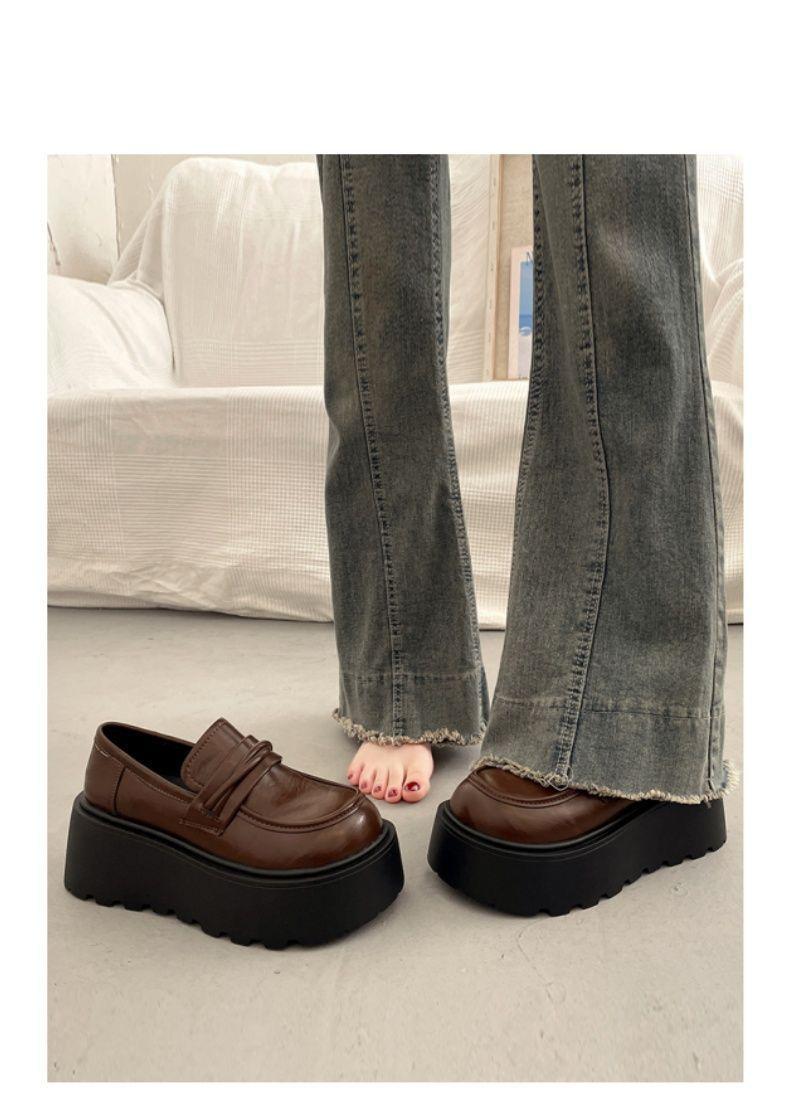Zapatos de Plataforma Cómodos de Suela Gruesa de Cuero Pequeños Mujer 2025 Verano Otoño Nuevos Retro Estilo Británico Aumento de Altura Mocasines Mary Jane