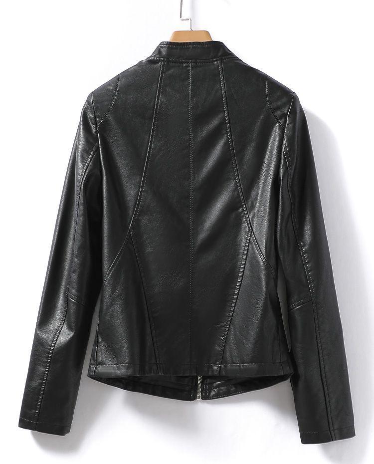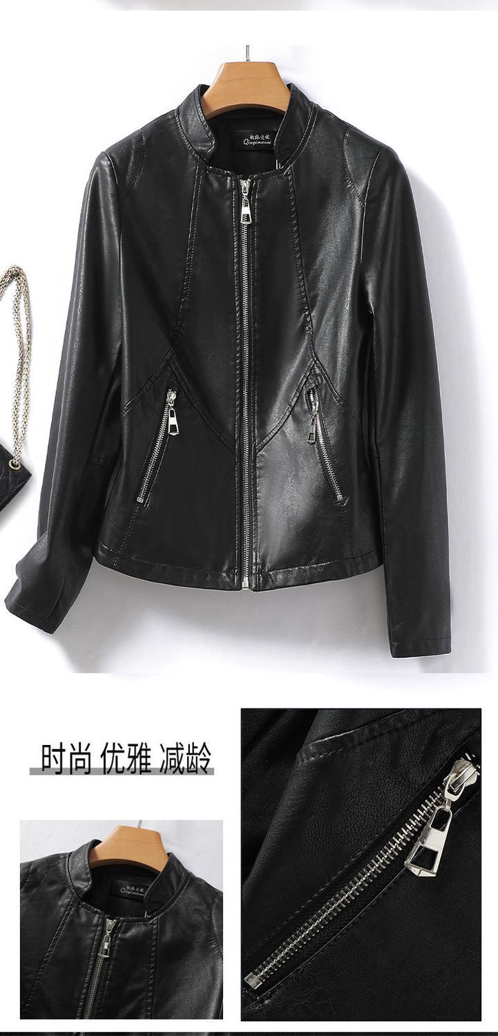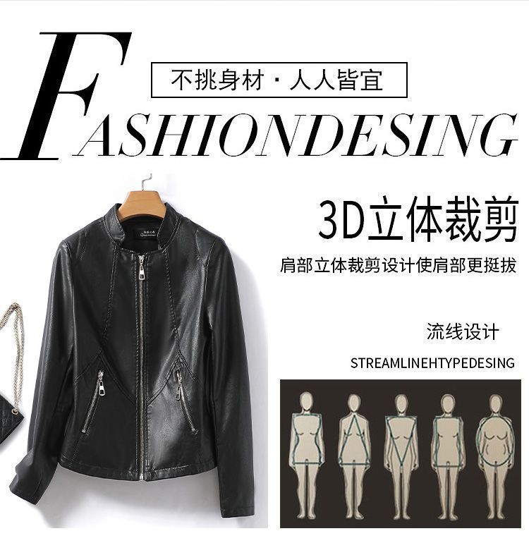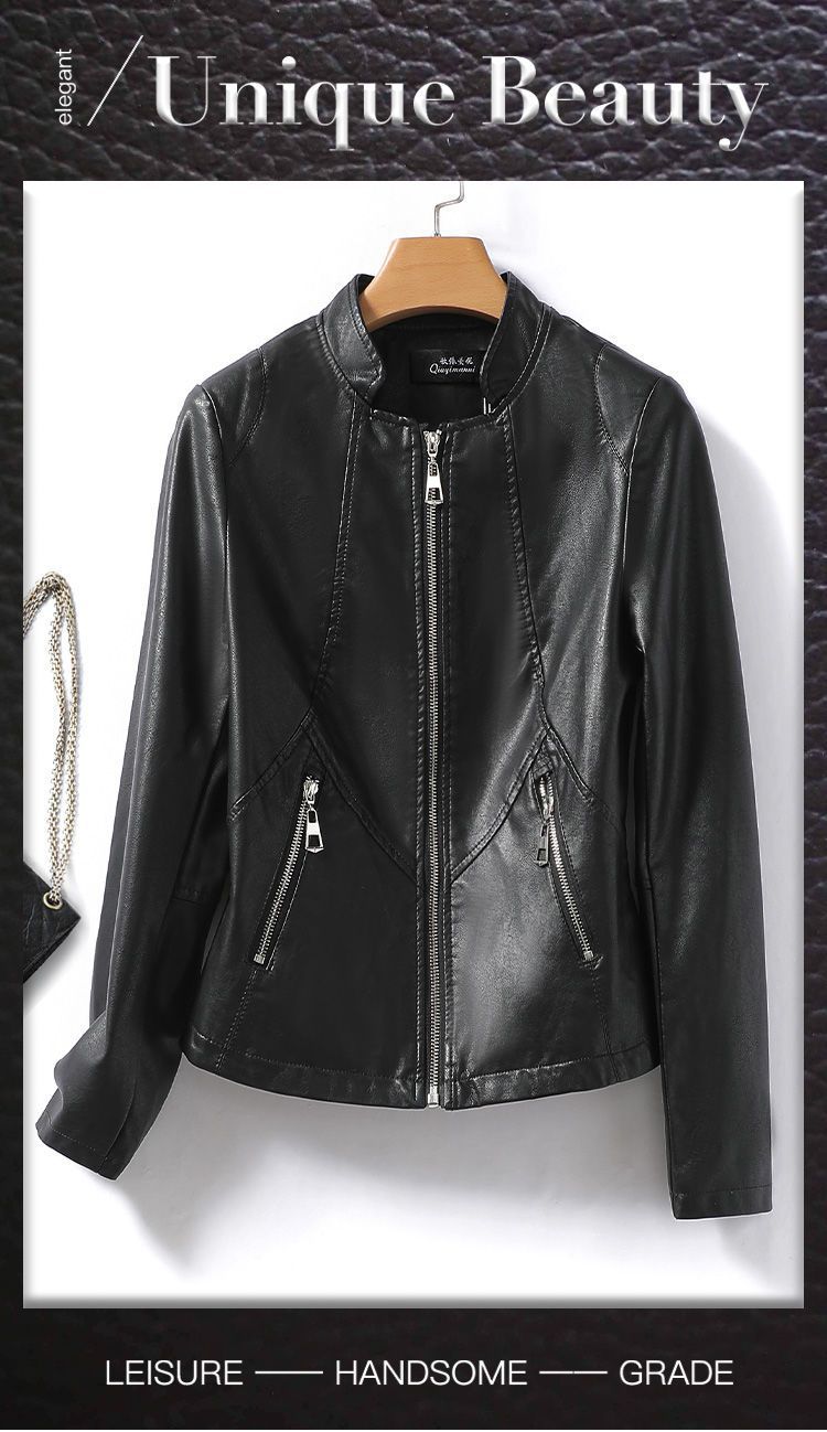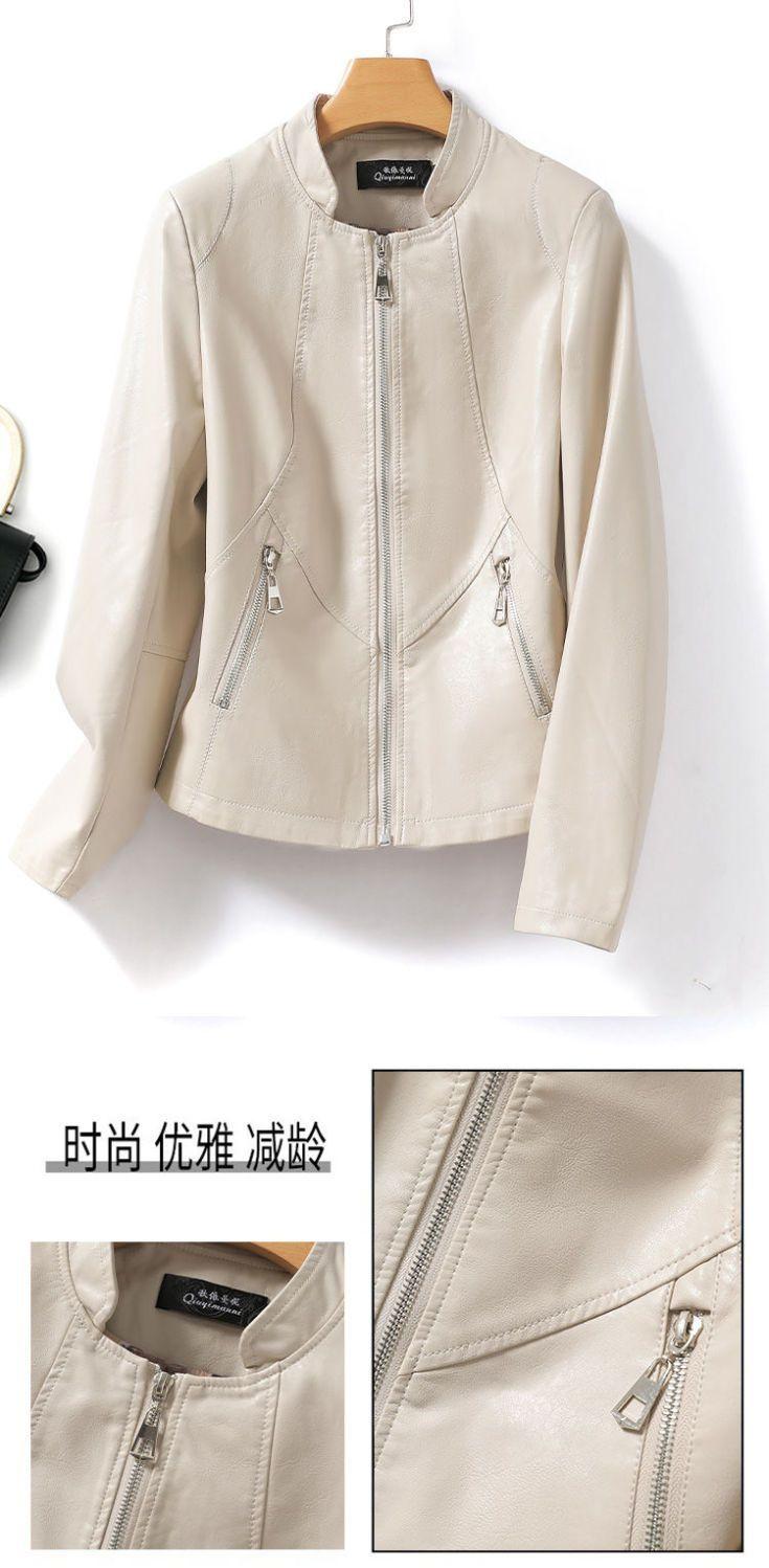 Chaqueta de Cuero Genuino Haining para Mujer, Chaqueta Corta Ajustada Adelgazante 2023 Nueva para Mujer Petite de Piel de Oveja